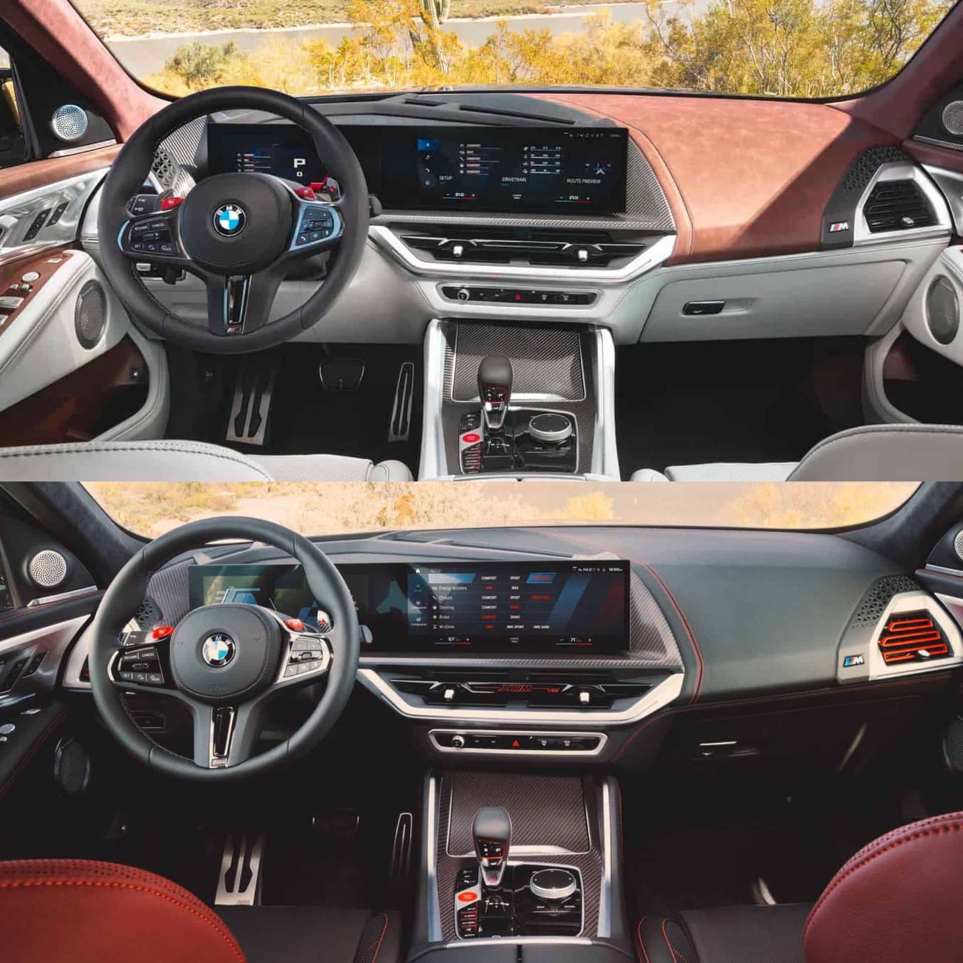 BMW is offering a few new paint options for the Label Red, such as BMW Individual Urban Green, BMW Individual Petrol Mica metallic, BMW Individual Anglesey Green metallic and BMW Individual Sepia metallic. Standard colors are Brooklyn Grey and Frozen Carbon Black. Inside, the cabin is also largely the same. The only difference is that, on the Label Red—you guessed it—gets some red stuff. So trim pieces, badges, embroideries, and loads of red contrast stitching. The red accents do make the interior pop a lot more than on the regular XM and the red stitching makes it look even more premium.