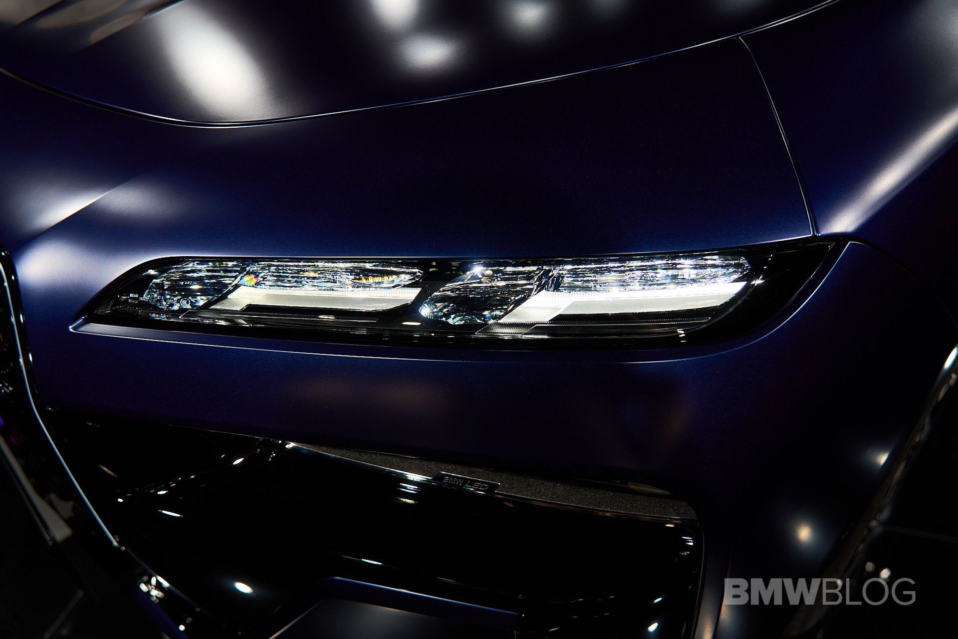 Frozen Tanzanite Blue was added to the 7 Series’s color palette at the beginning of the year, so this is our first opportunity to see the G70 with its attractive matte paint. BMW mentions these Frozen paints are chemically identical to equivalents using fossil raw materials and are in no way inferior in terms of quality compared to other paints. The German luxury brand points out that CO2 emissions associated with the production, transport, and processing of crude oil are eliminated by using renewable raw materials instead.