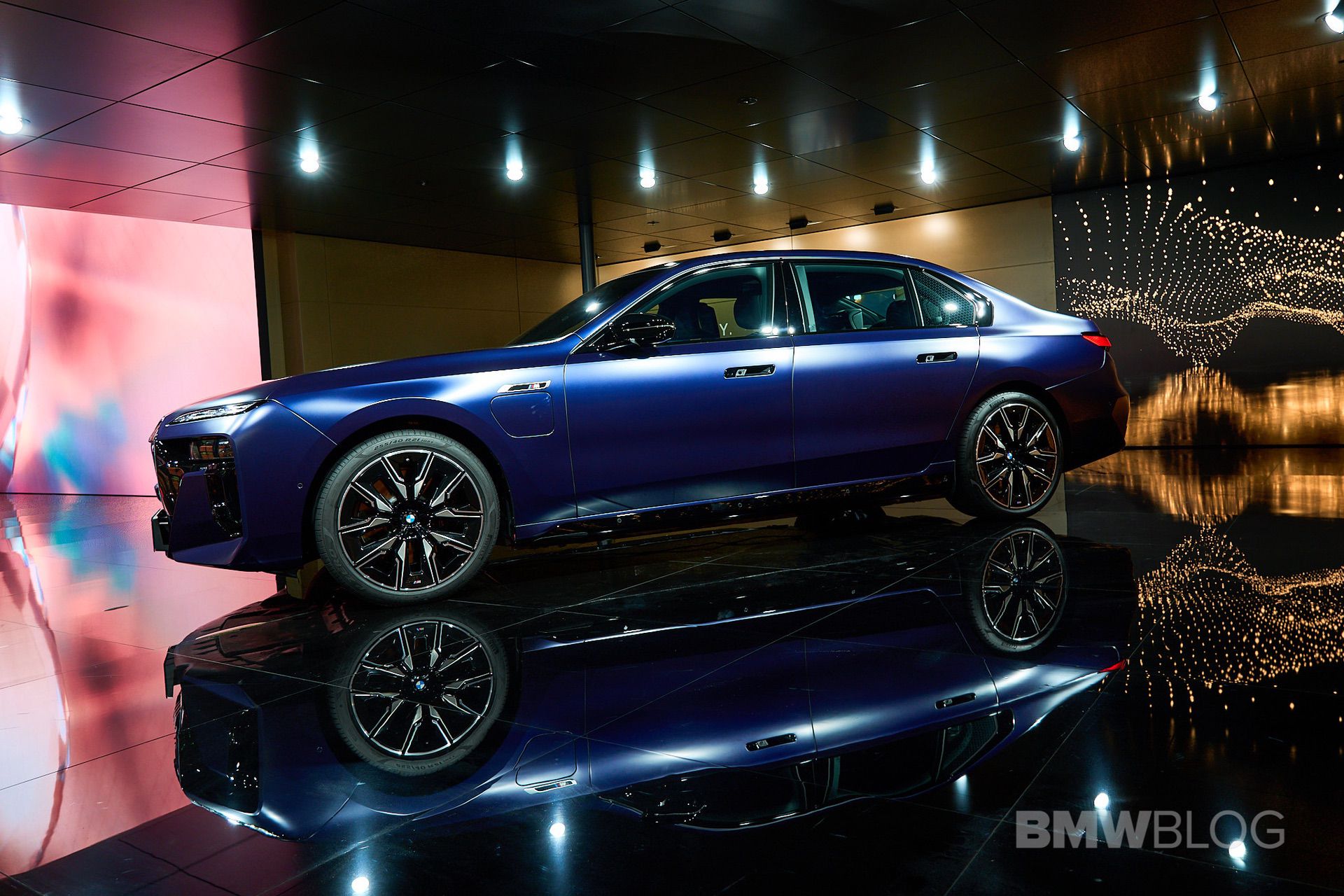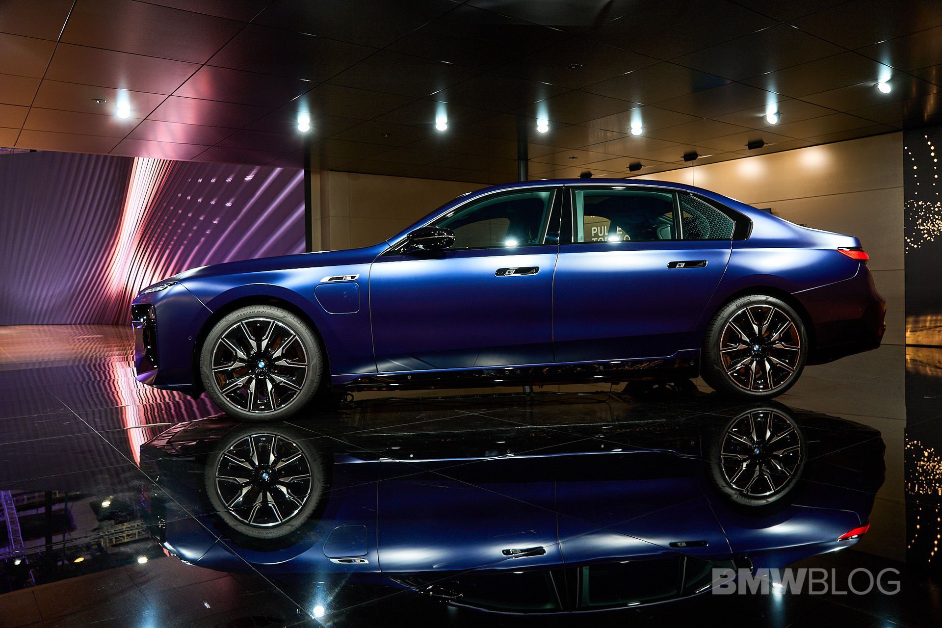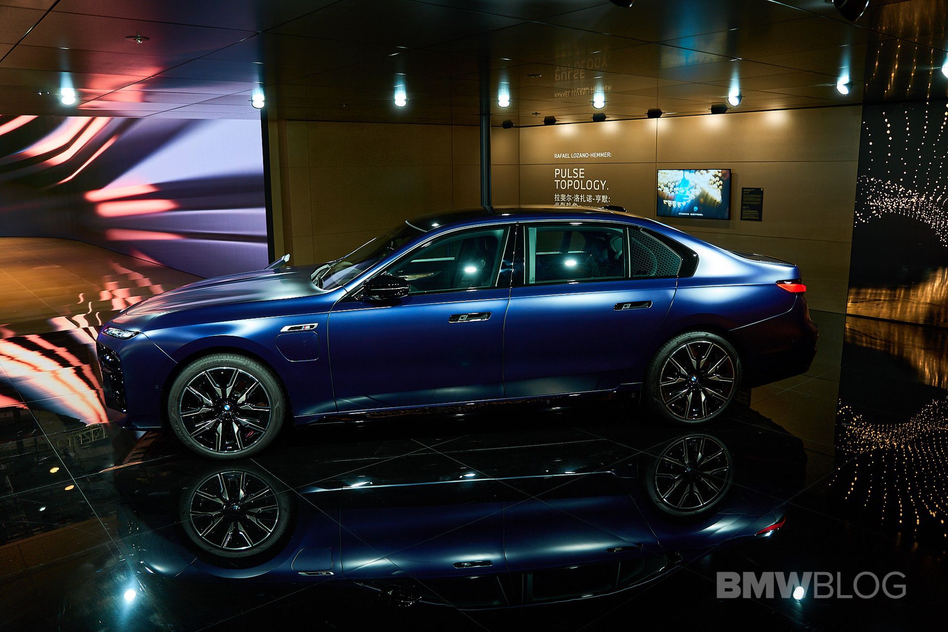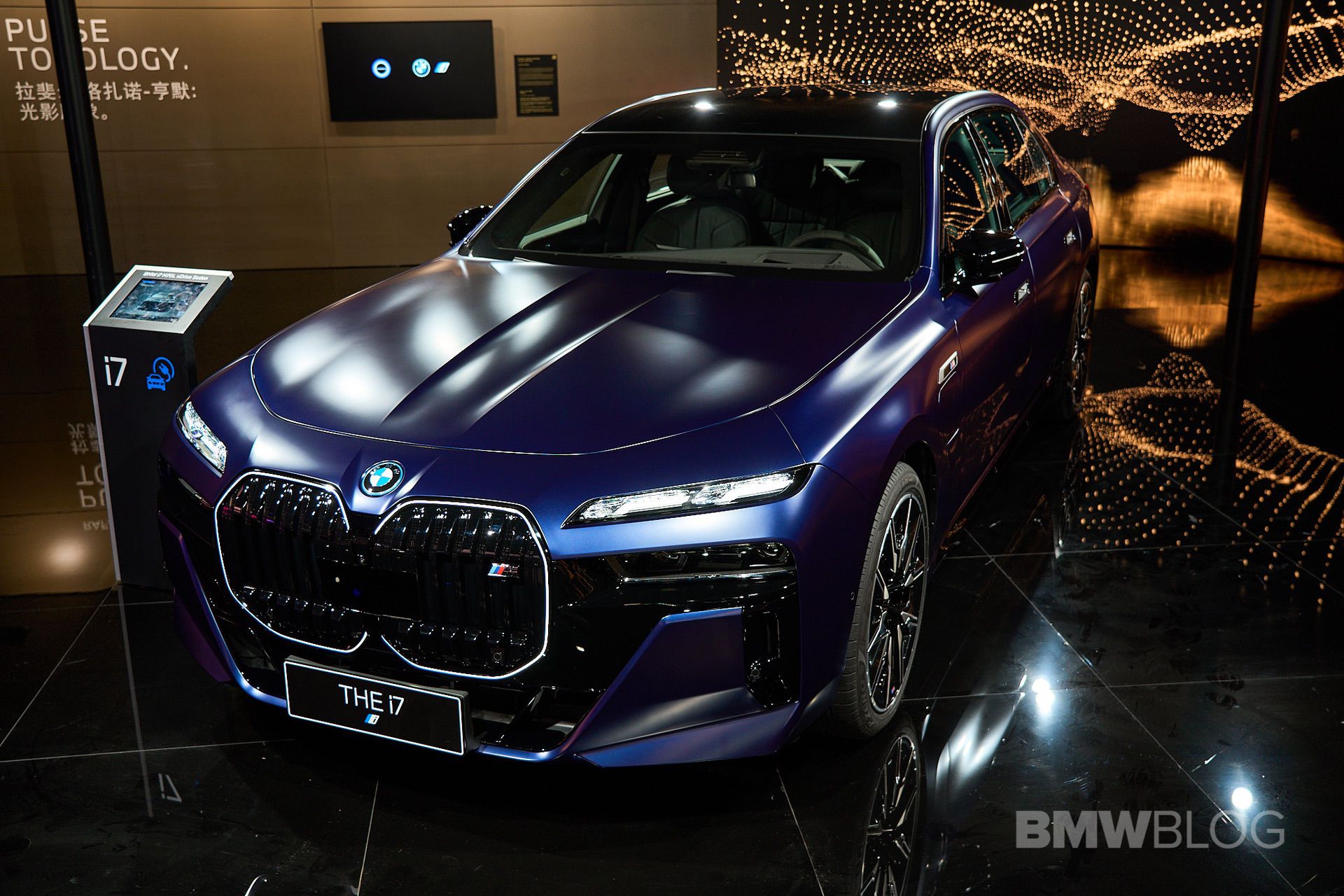 The i7 M70 is not only the first electric M Performance version of the 7 Series but also BMW’s first car to combine Liquid Copper with Sapphire Black. If you’re not a big fan of two-tone metallic paints, one of the many 7 Series models exhibited at the Auto Shanghai 2023 in China is this i7 in Frozen Tanzanite Blue. It too is an M70 version, featuring a matte paint job from the Individual catalog.