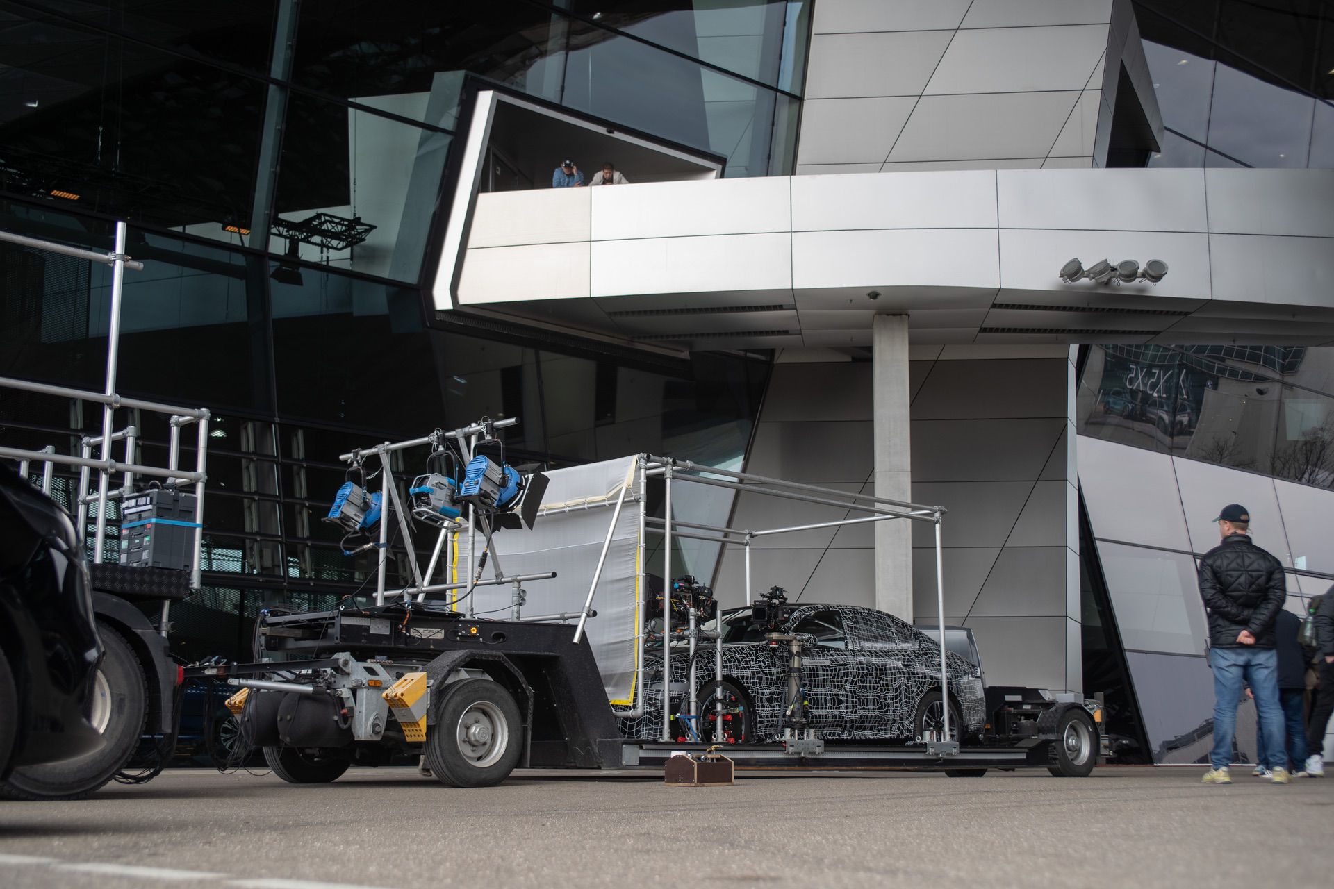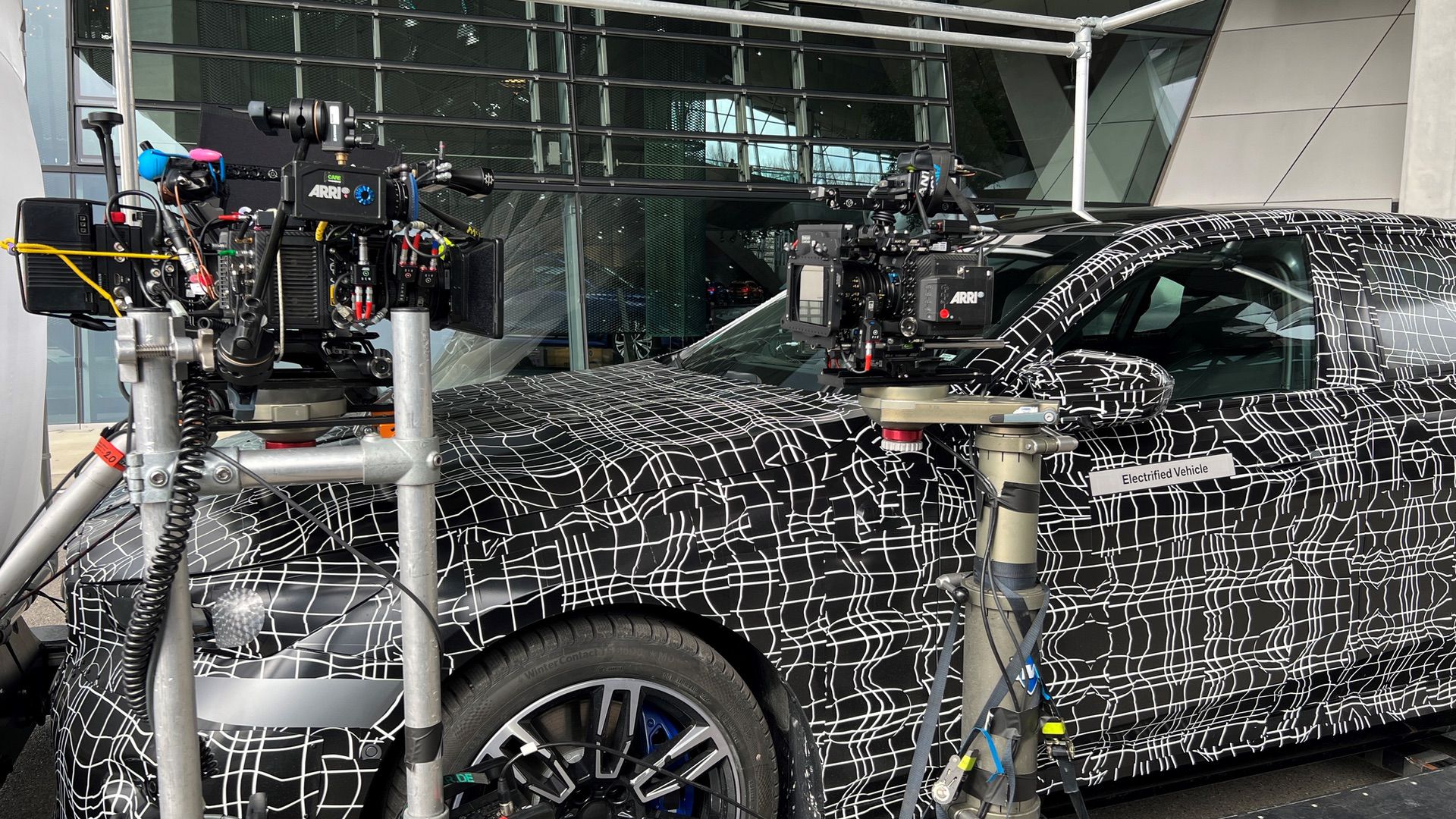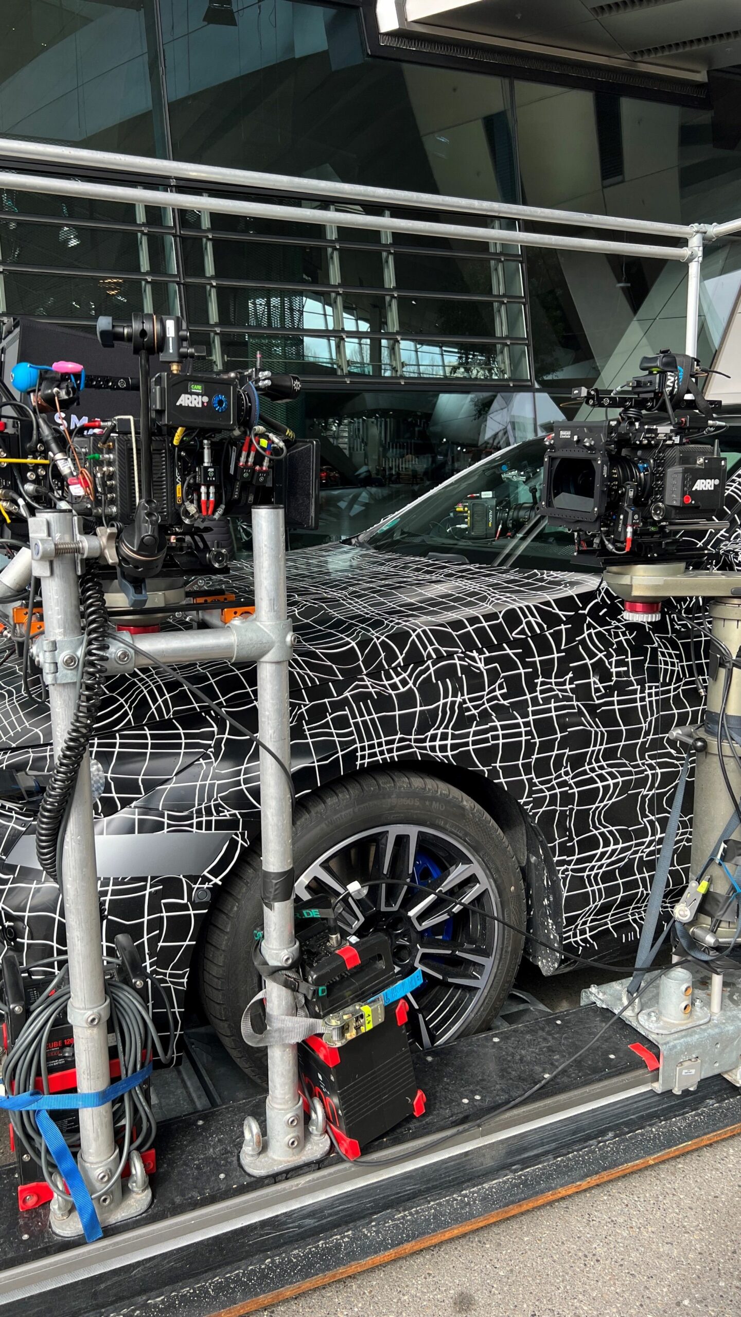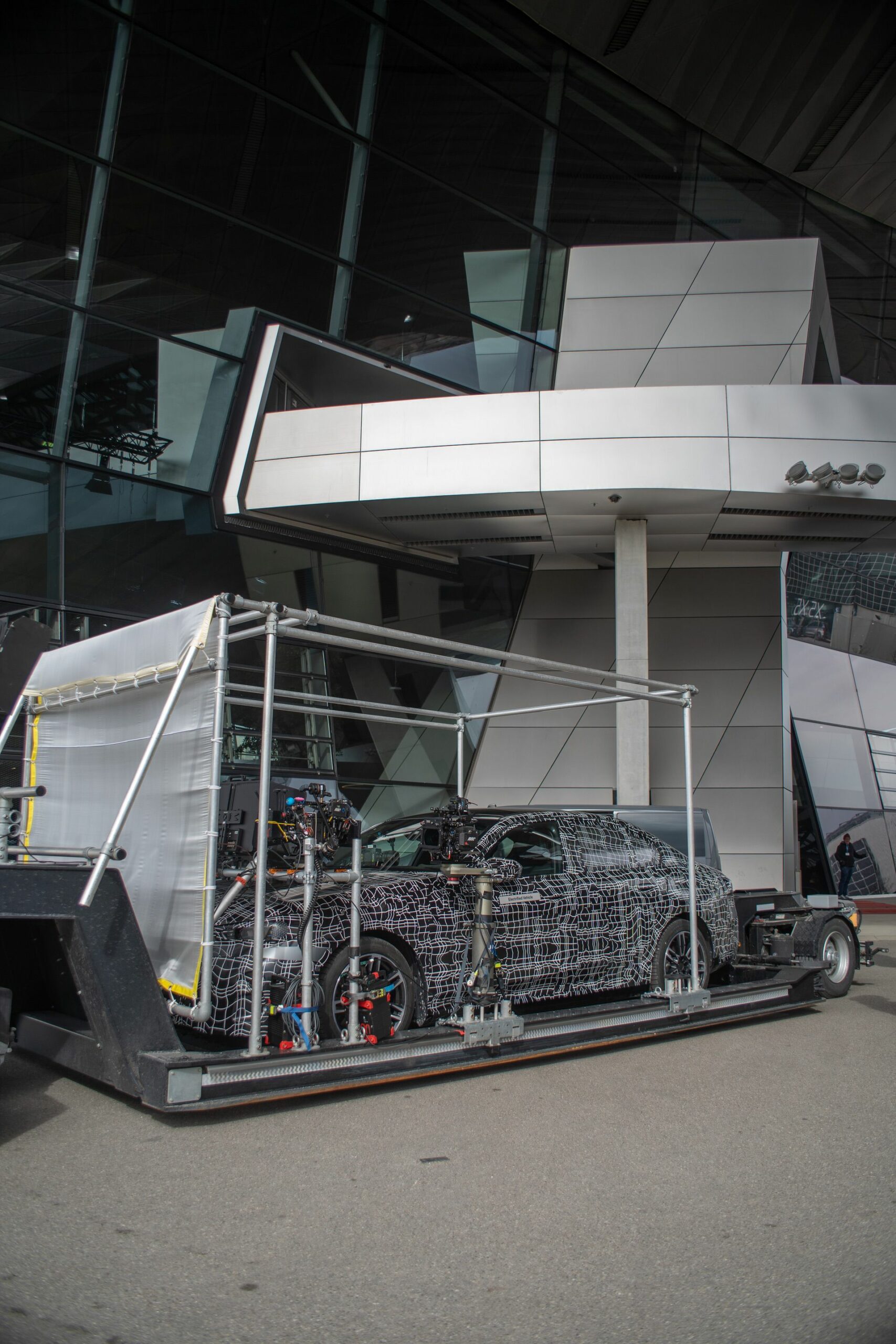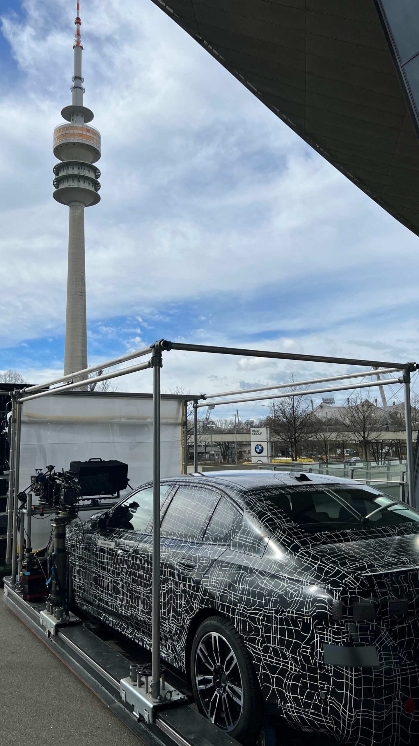In the spy photos, you can clearly see the BMW i5 sitting on some sort of platform fit with scaffolding. Attached to the scaffolding it high-tech camera equipment, suggesting that BMW is shooting the car for what we can only assume is promotional material for an upcoming teaser.