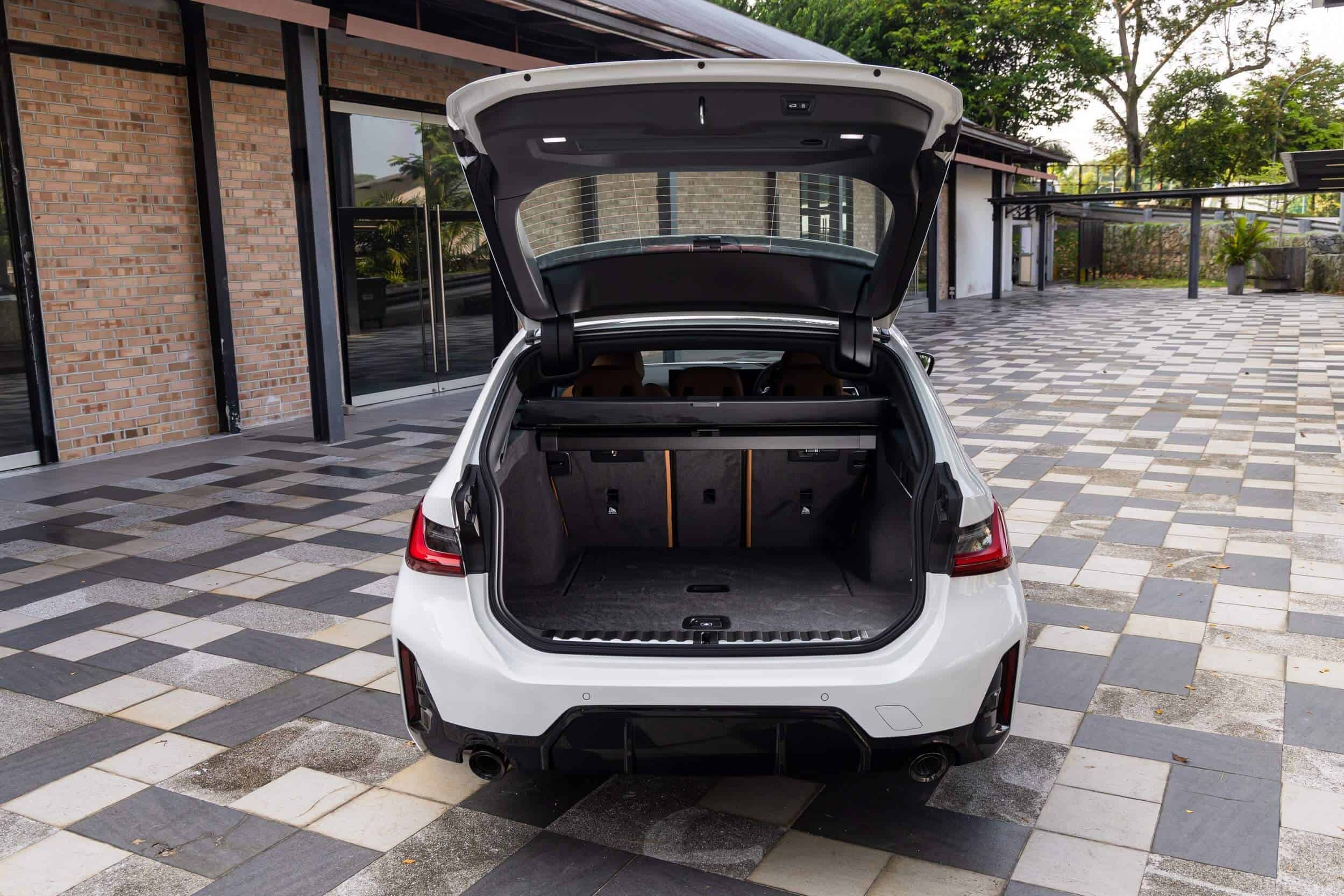 BMW is selling the 330i Touring in Singapore with the M Sport Pro package as standard equipment, meaning buyers receive a lot of goodies from the get-go. On the outside, there are several Shadowline black surfaces, 18-inch two-tone wheels with M Sport blue brake calipers, adaptive LED headlights with blue accents, glossy black roof rails, and 100-diameter dual exhaust tips with a so-called black chrome look.