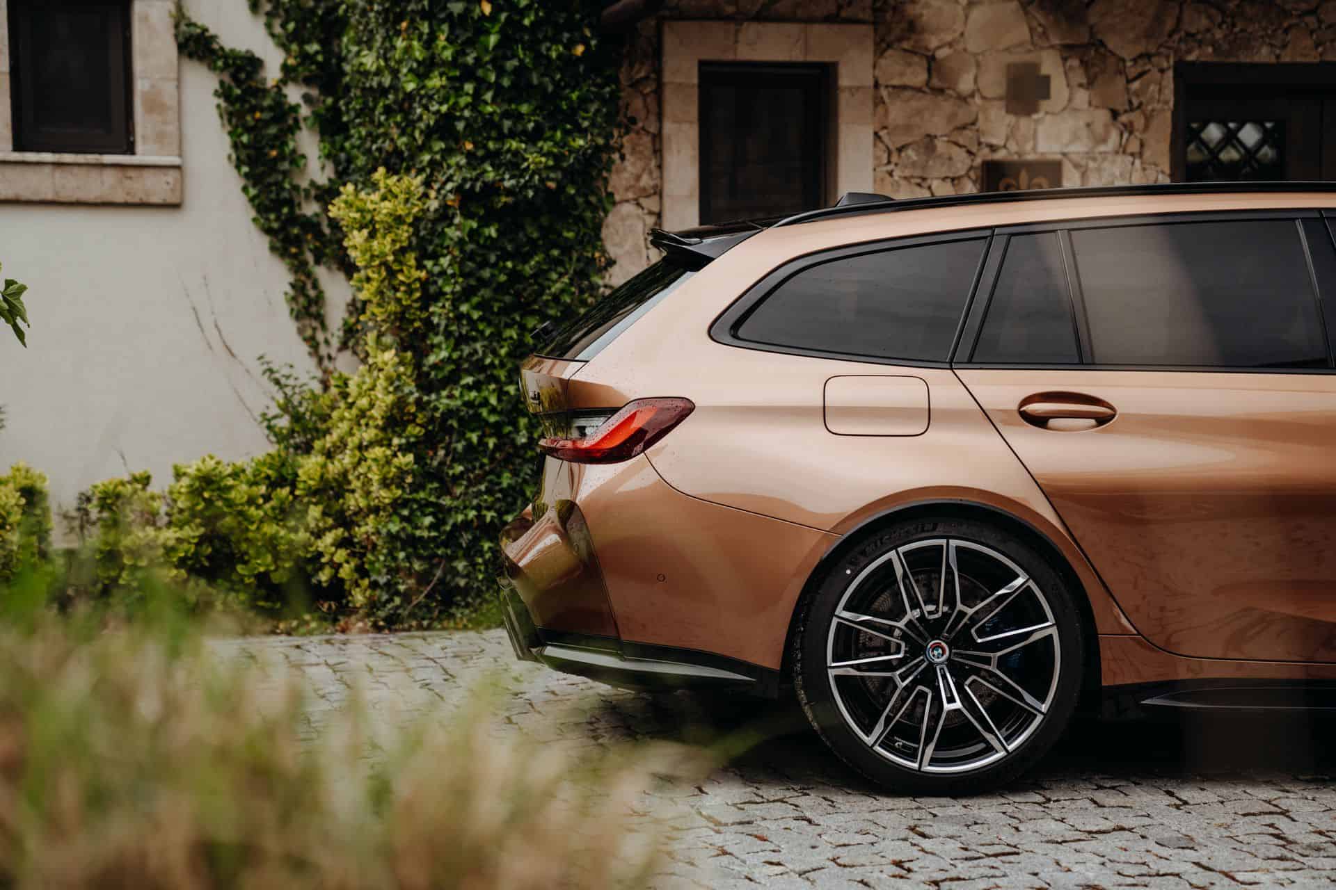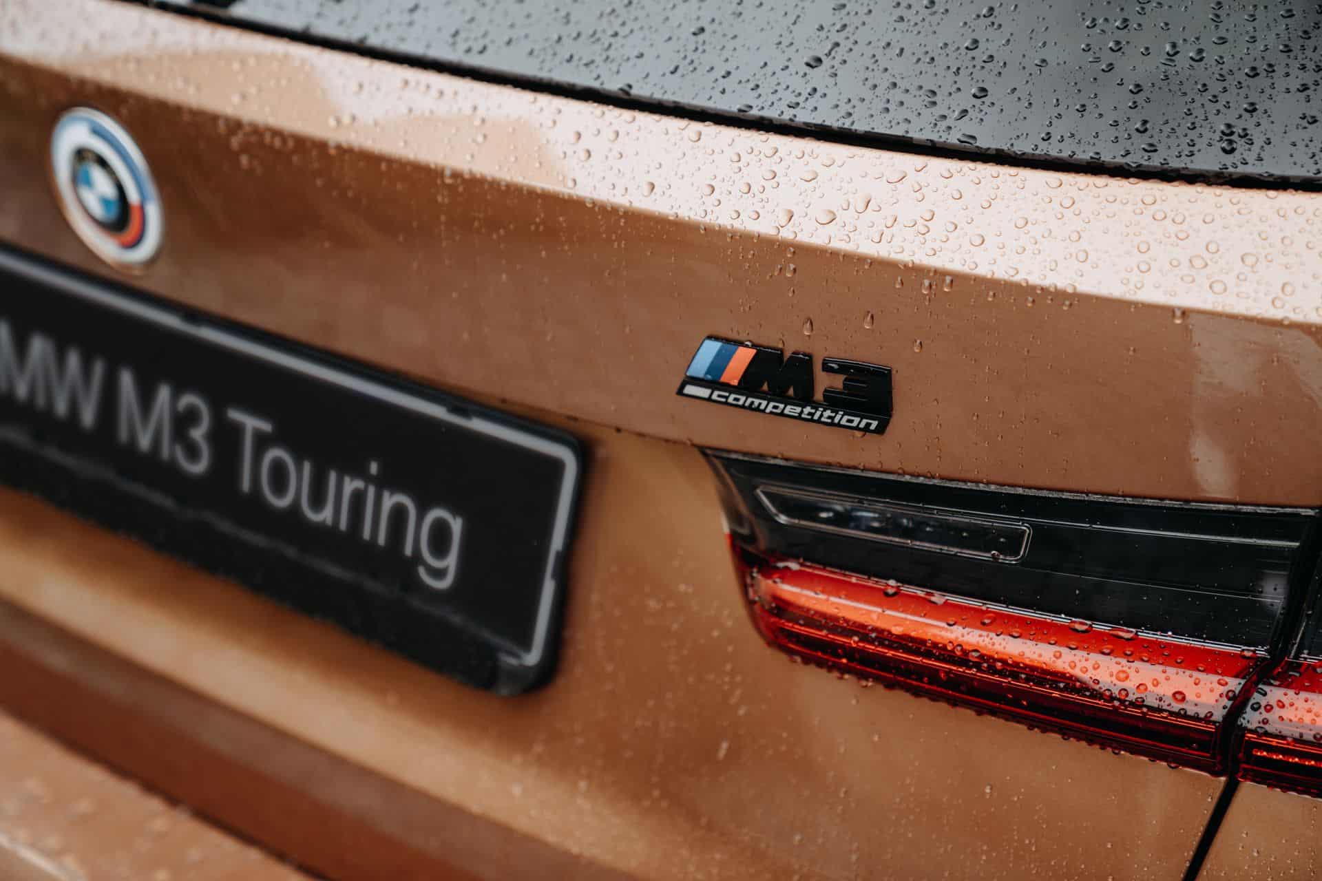 BMW sells the first-ever M3 Touring exclusively as a Competition model with xDrive, so there’s no manual gearbox available as only the eight-speed Steptronic is offered. As seen on this car, you can spruce up the speedy wagon with the retro roundel logo celebrating 50 years of M. Those willing to go a step further can opt for M Performance Parts lending the M3 Touring a racy look.
