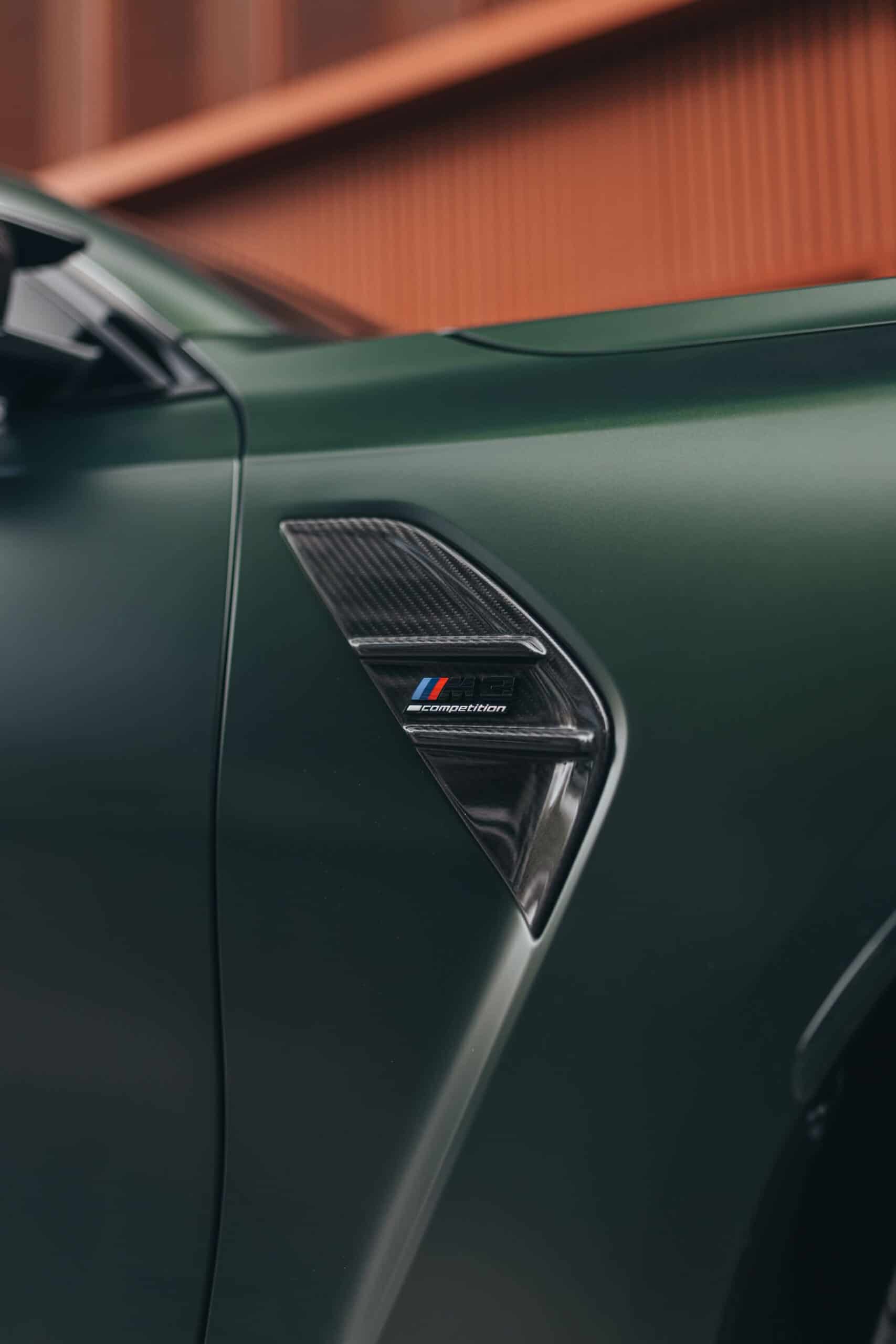 Made famous by the M5 CS, the Frozen Deep Green color suits the M3 Touring quite nicely and is contrasted by the Frozen Gold finish of the optional 1000 M wheels. There are more than a few carbon fiber add-ons, including the front canards that we’d argue, are overkill on a wagon. At the rear, the speedy estate has a different diffuser housing the center-mounted exhaust tips you can also get for the M2 and M4.