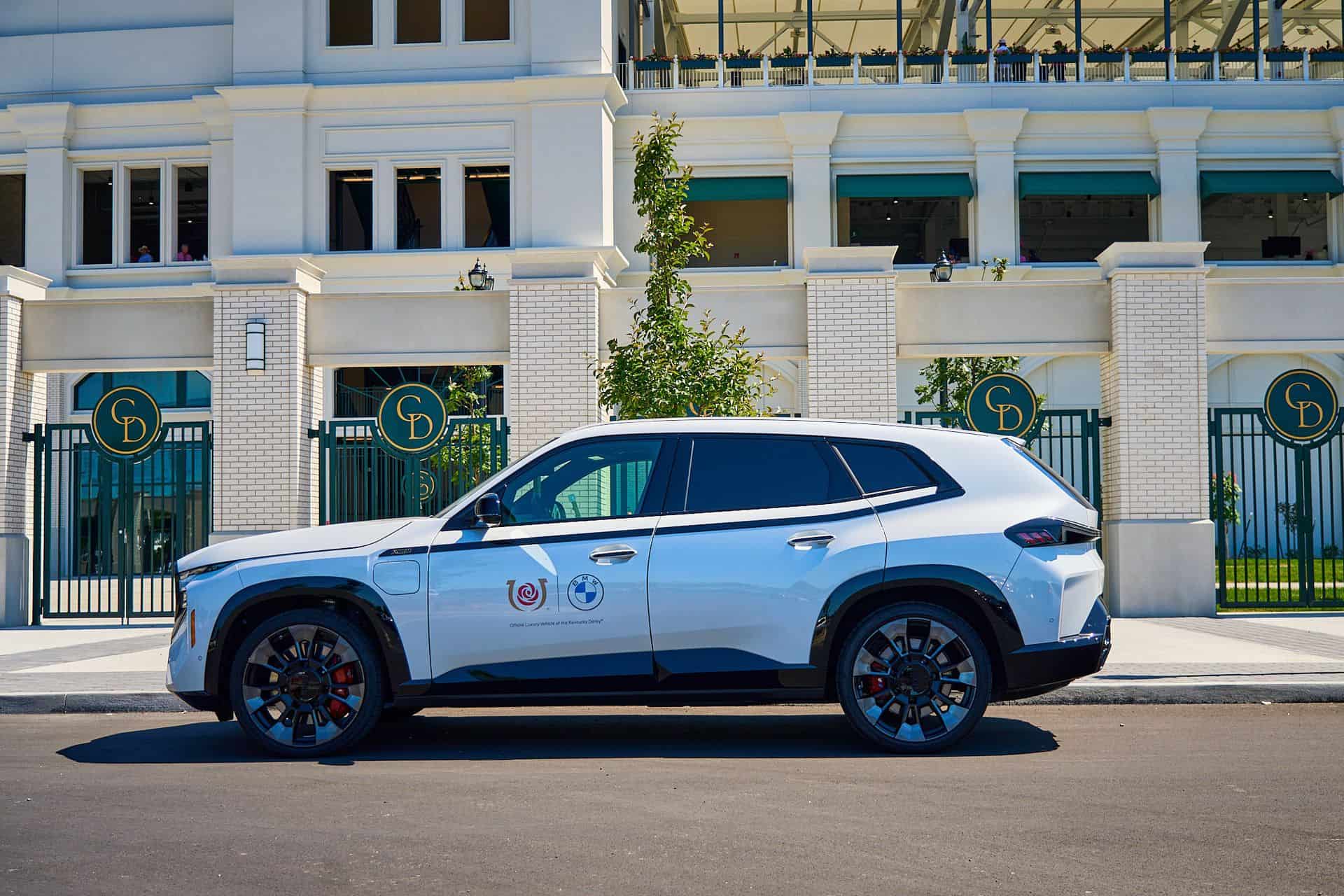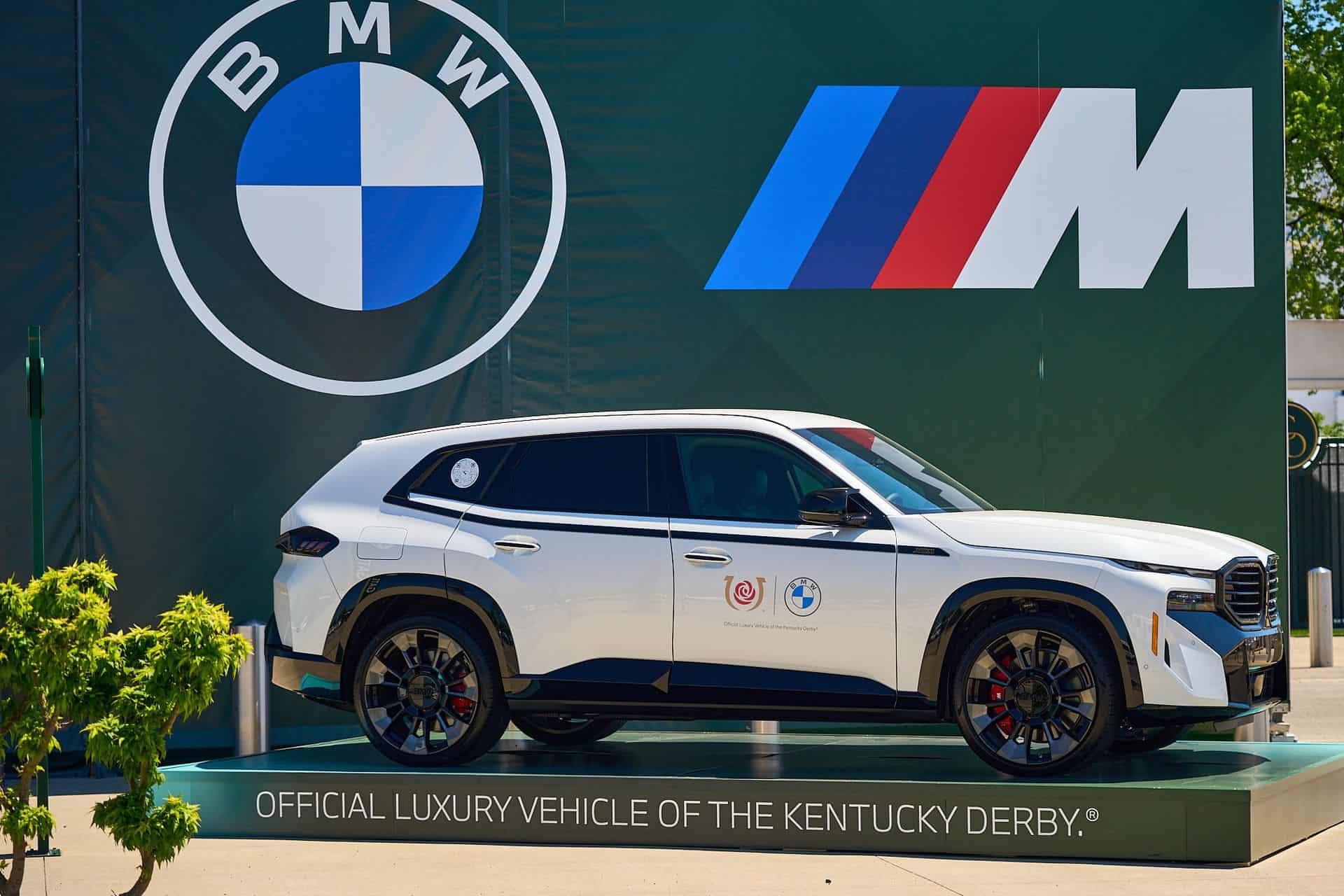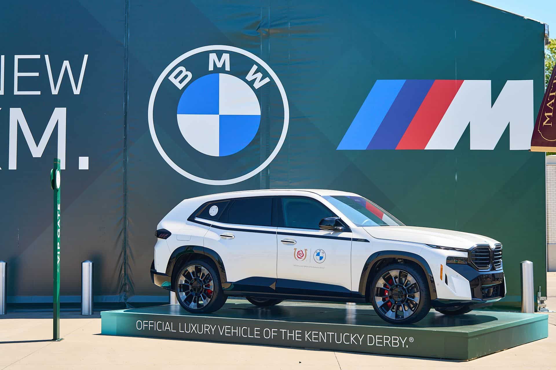 BMW’s presence at the Kentucky Derby® was impossible to ignore, thanks to a massive display of the new BMW XM at the VIP entrance. Guests, including celebrities and VIPs, were greeted by an Alpine White 653 horsepower BMW XM, which served as a luxurious and impressive welcome before walking the Derby’s famous red carpet. Another Black Sapphire XM was positioned behind the red carpet entrance, allowing visitors to experience the power and luxury of the M SUV up close. A fleet of BMW cars, including the XM, also served as shuttles for the event.