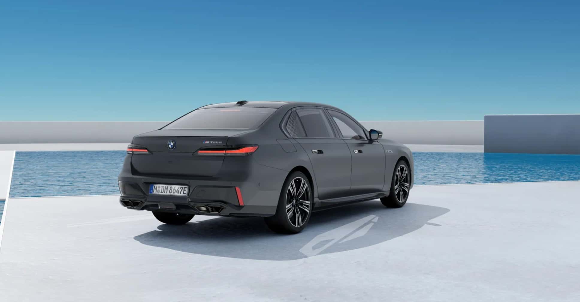 The M760e xDrive is currently being exhibited at the BMW Welt in Munich in a high-end version since it has plenty of extras and an Individual paint. Specifically, the M Performance 7 Series is finished in Frozen Pure Grey metallic color and rides on two-tone, 21-inch wheels (908 M style). With this car, the German luxury brand is introducing a fresh take on the quad exhaust tip design, housed here within a glossy black rear apron.