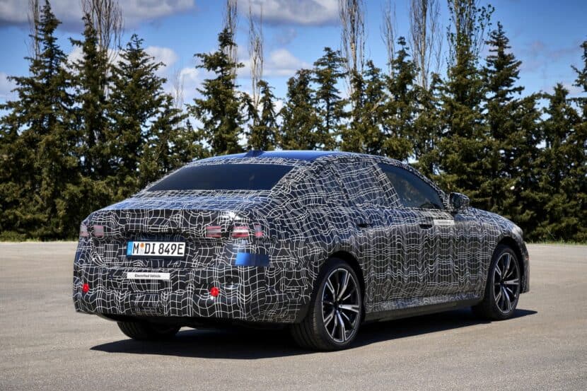 As seen in numerous spy shots as well as BMW’s own teaser images of the i5, the kidney grille isn’t huge, at least not by 2023 standards. Even from this angle, we can see the back of the iDrive 8 with its dual-screen arrangement, and this particular 5 Series appears to have the optional head-up display, along with the obvious sunroof.