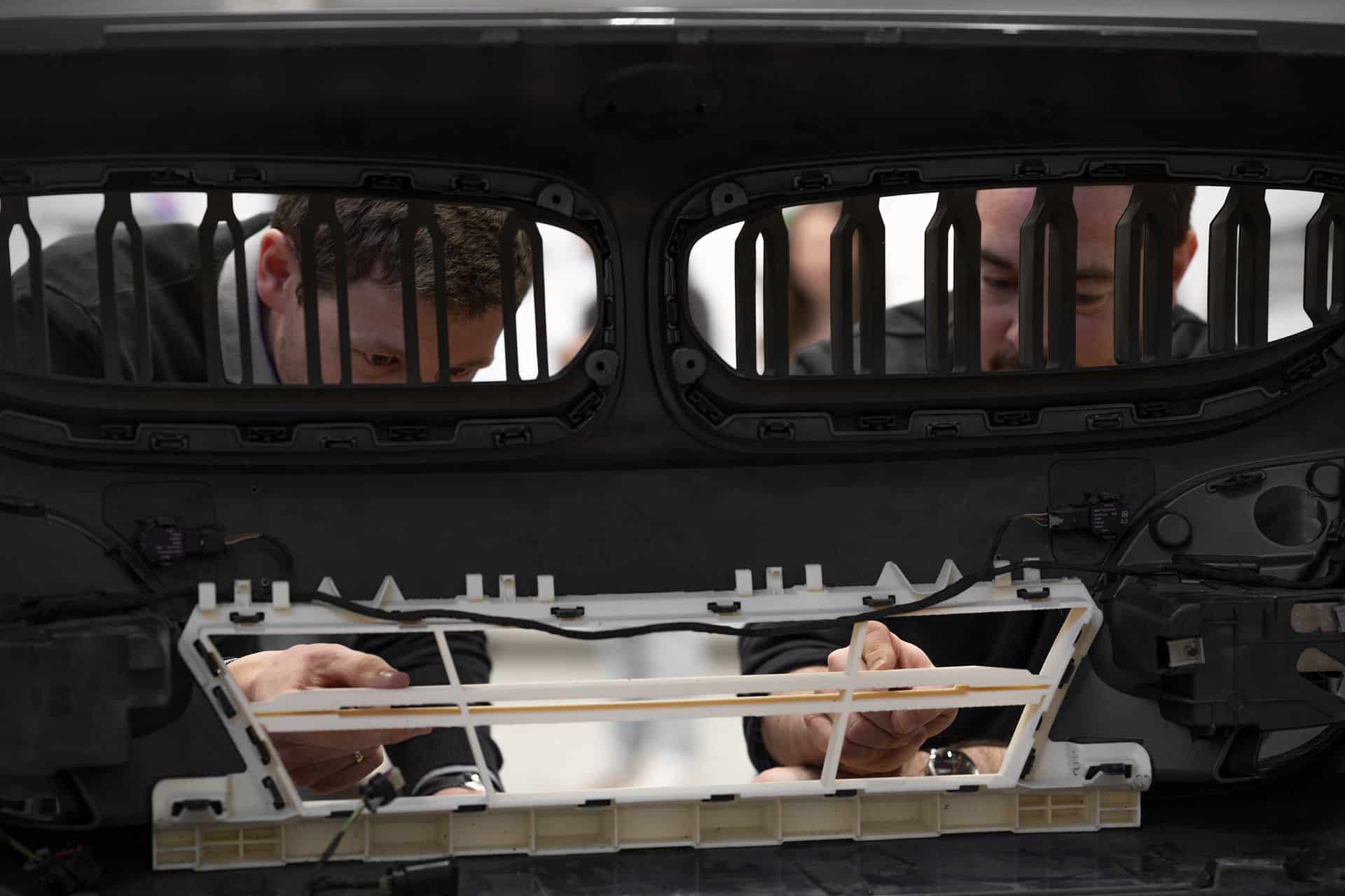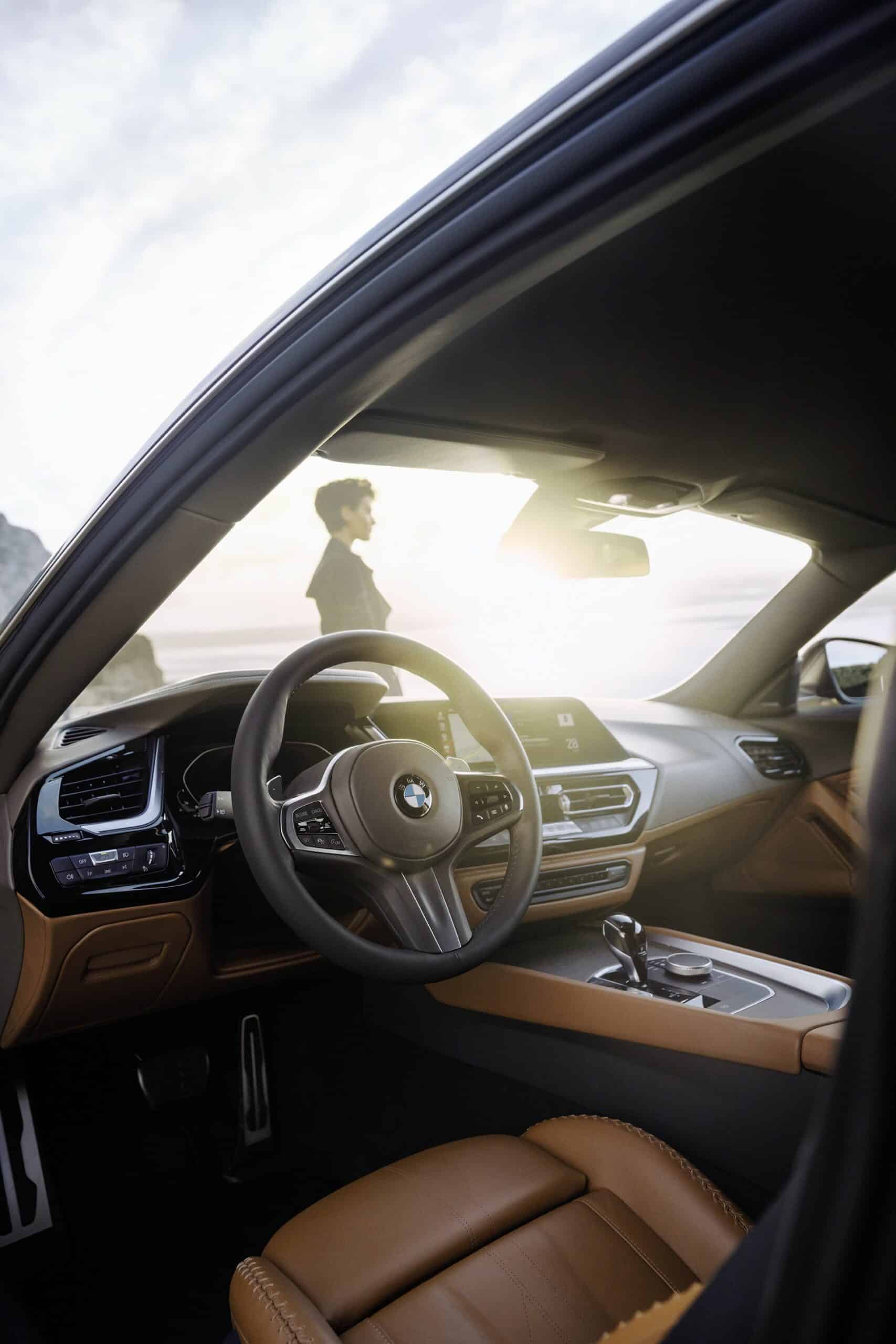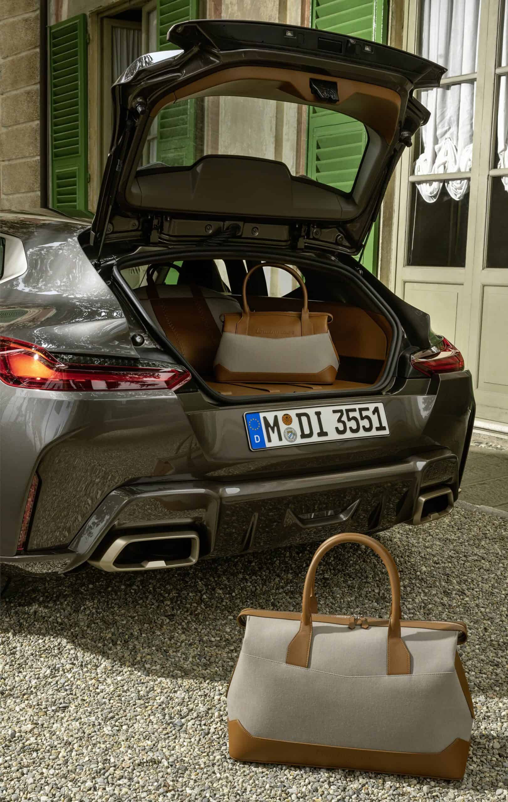 The BMW Z4 is only offered as a two-seat roadster with a fabric folding roof and a traditional trunk. So BMW obviously had an opportunity to create an entirely new hatchback trunk. It features a beautifully sculpted cargo area with gorgeous leather, hold-down straps, backlighting, and even custom luggage made by the Italian leather workshop Schedoni, in Modena. It comes with two large and one small weekender bags, and one garment bag. The very same leather shop makes the bags for Rolls-Royce.