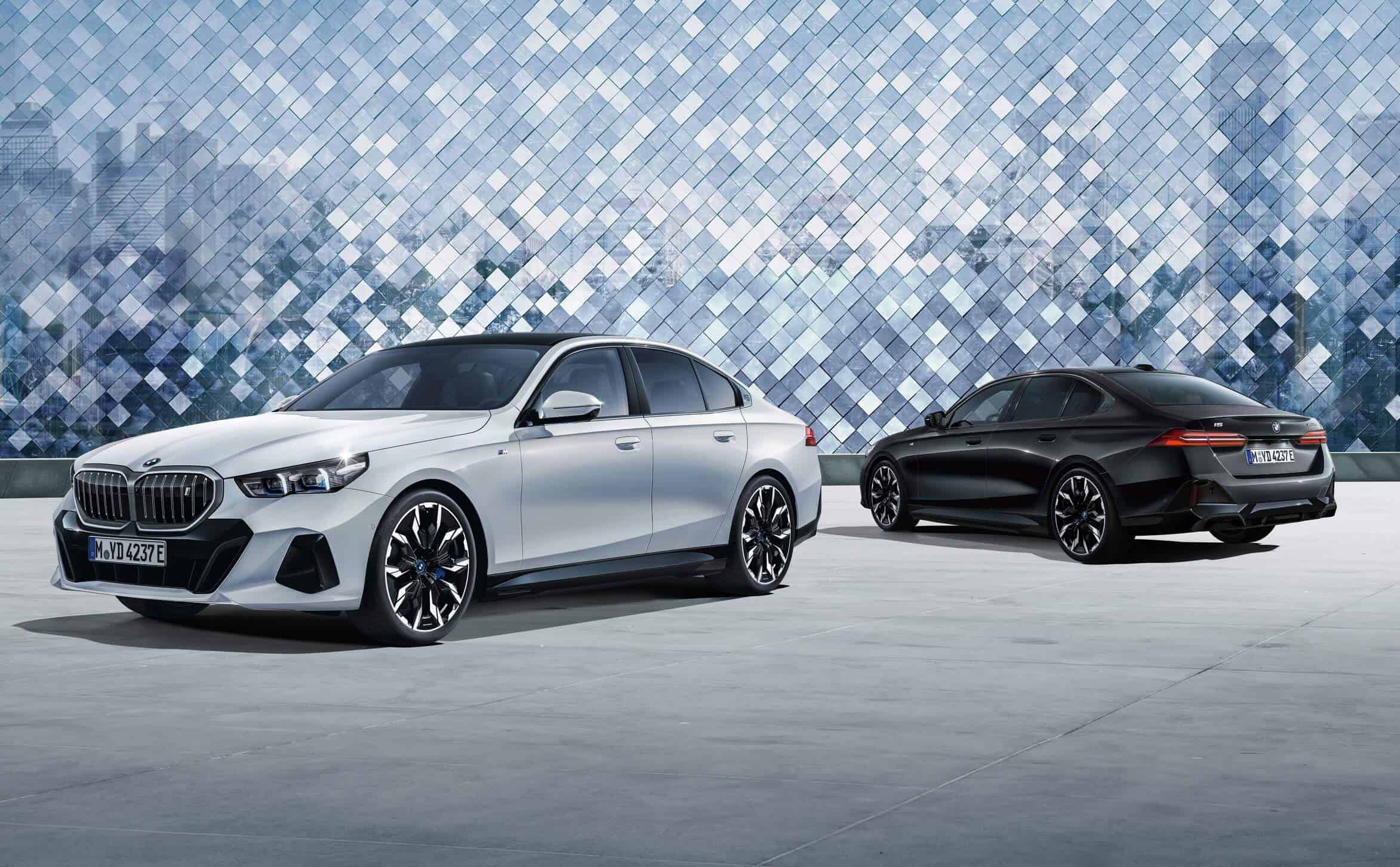 The wheel size depends on the model as the 523i gets a 20-inch set (938 M style) while the i5 eDrive40 boasts larger 21-inch alloys (954 style), with both featuring a two-tone look.