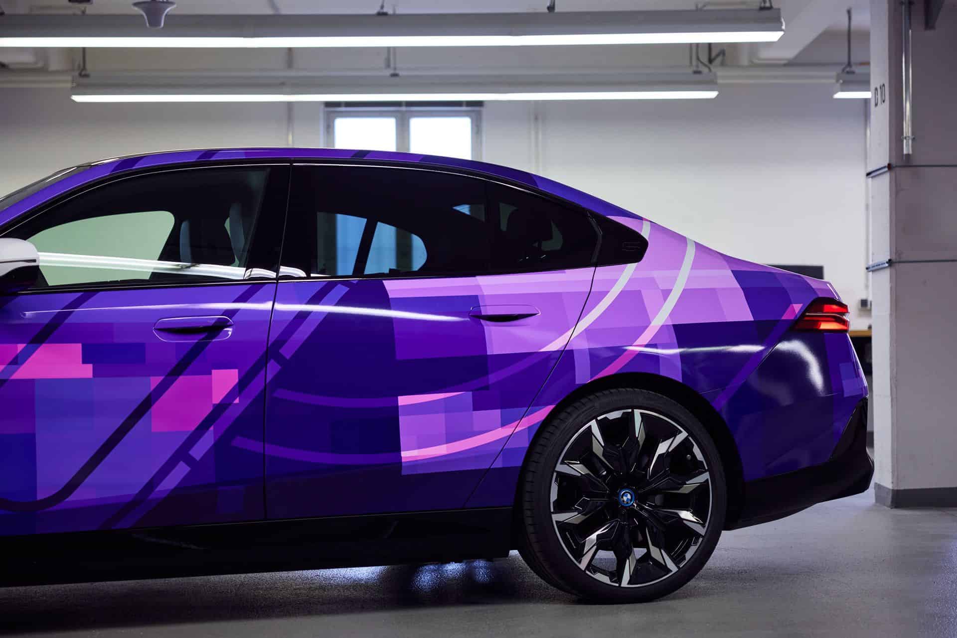 We had the chance to actually test the new gaming mode out in a BMW i5. In honor of the introduction of in-car gaming, BMW unveiled a special edition BMW i5 adorned with a distinctive gaming wrap. The design represents an immersive journey into the world of gaming, capturing the essence of individual pixels. Paying tribute to the beloved 8-bit era of computer games, the design prominently features large pixels. The chosen color palette draws inspiration from the diverse array of games offered on the AirConsole platform. The wrap also cleverly incorporates elements of video game controllers, wrapping them around the i5’s exterior.