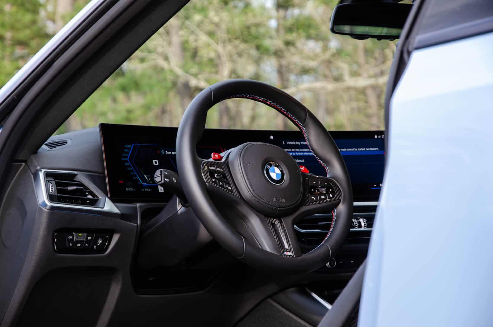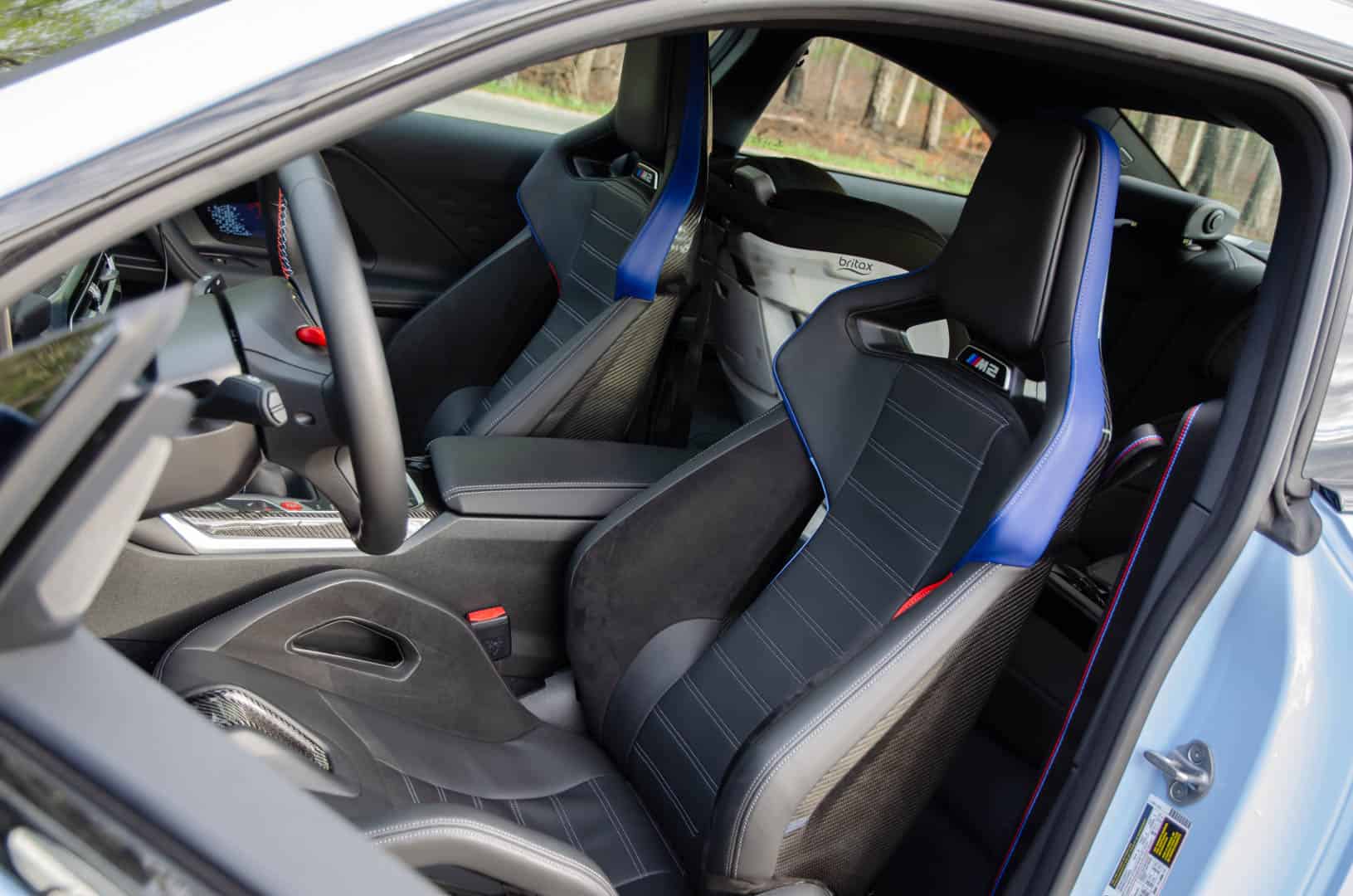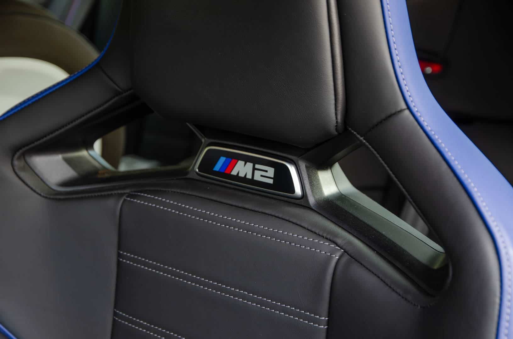 Inside, there’s nothing to complain about. My test car was fitted with BMW’s new carbon-backed buckets, which are either loved or hated. I love them but I understand why some people hate them. Aside from those cool M-colored seats, there really isn’t too much different from the standard 2 Series. It does get an M version of BMW’s new iDrive 8, which is fine but it’s a bit too gimmicky, with all of the M colored icons and graphics. Functionally, though, it’s fine and complaint with it isn’t M2-specific.