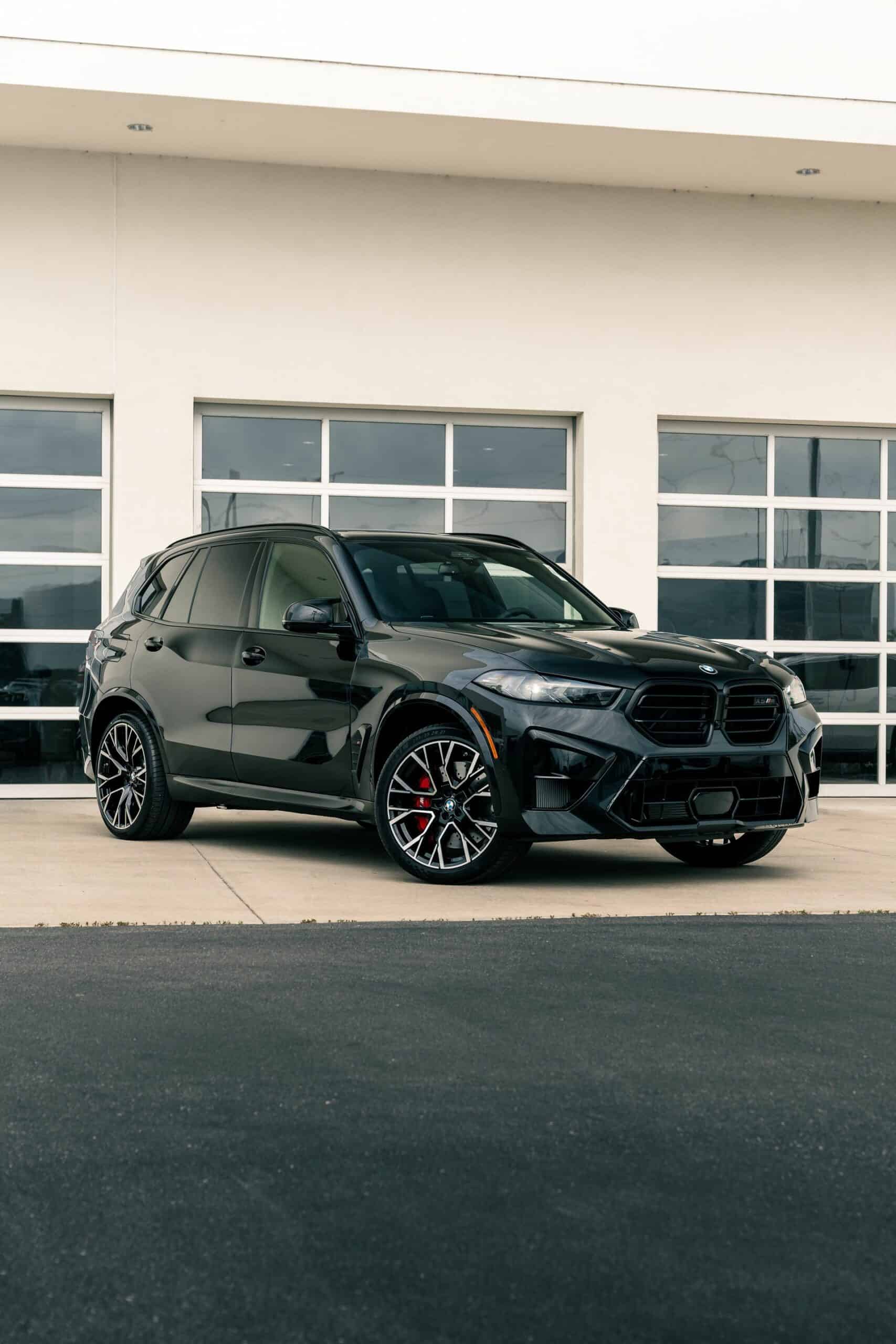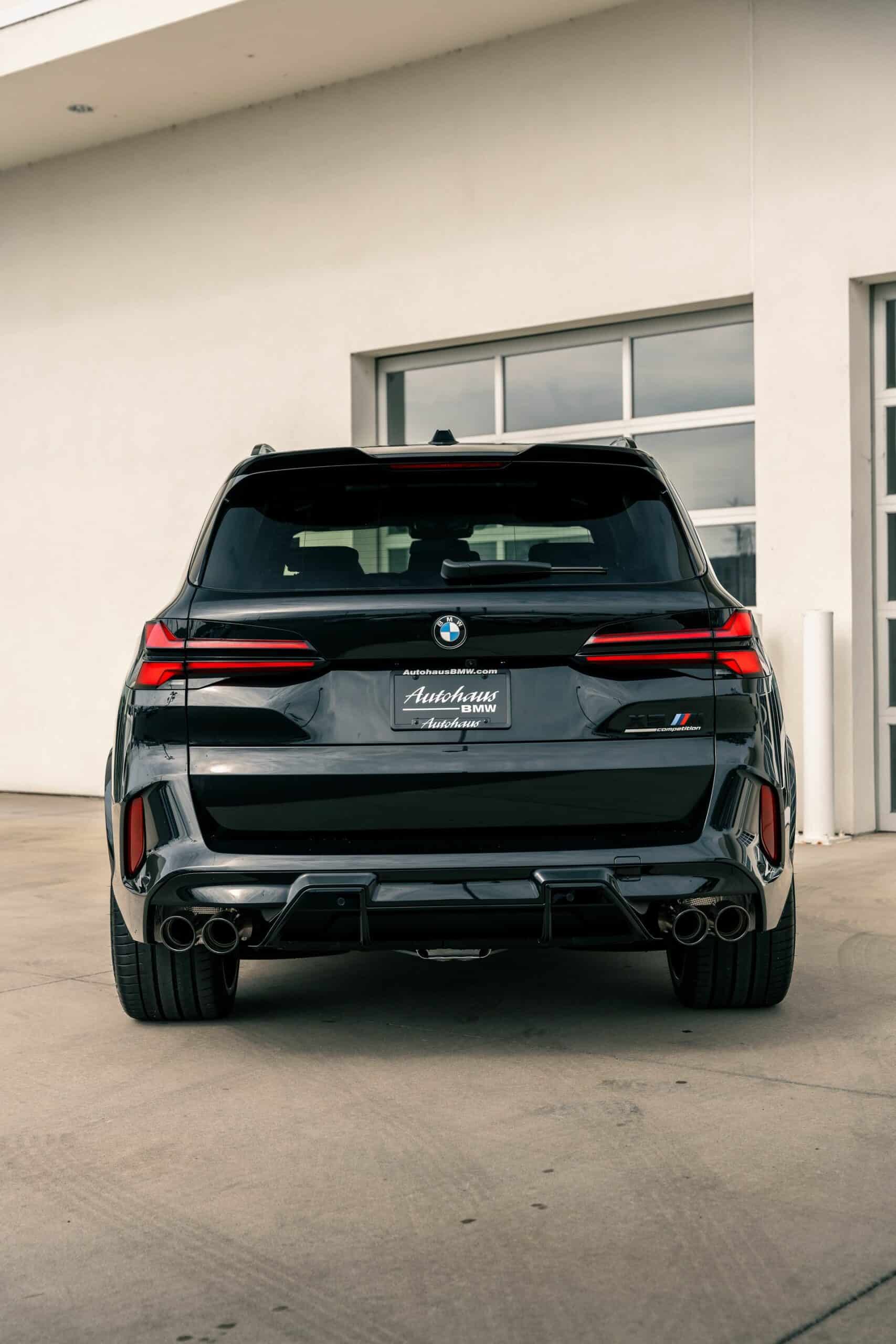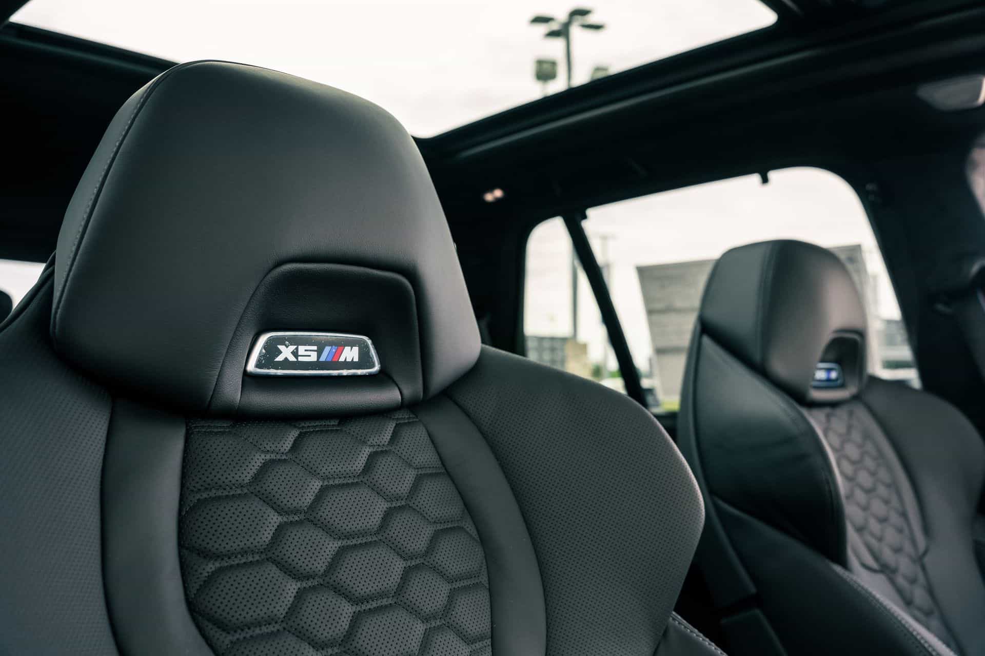 The only splash of color is provided by the brakes with their optional $650 red calipers as opposed to the standard blue. You can also have them in black for a true murdered-out look. With this being a 2024MY X5 M Competition, it has the redesigned kidney grille with horizontal slats flanked by slimmer headlights with arrow-shaped turn signals pointing outward. At the back, the updated LED graphics of the taillights now feature an “X” motif.