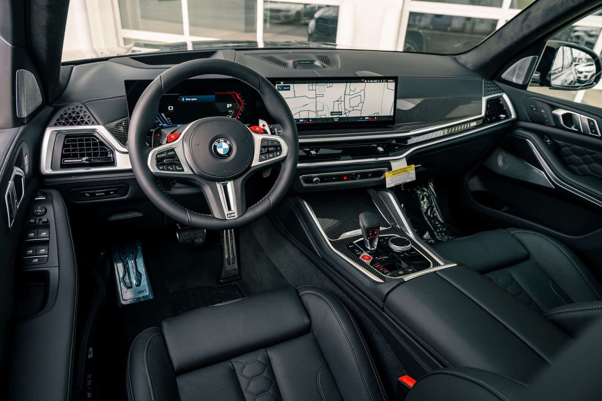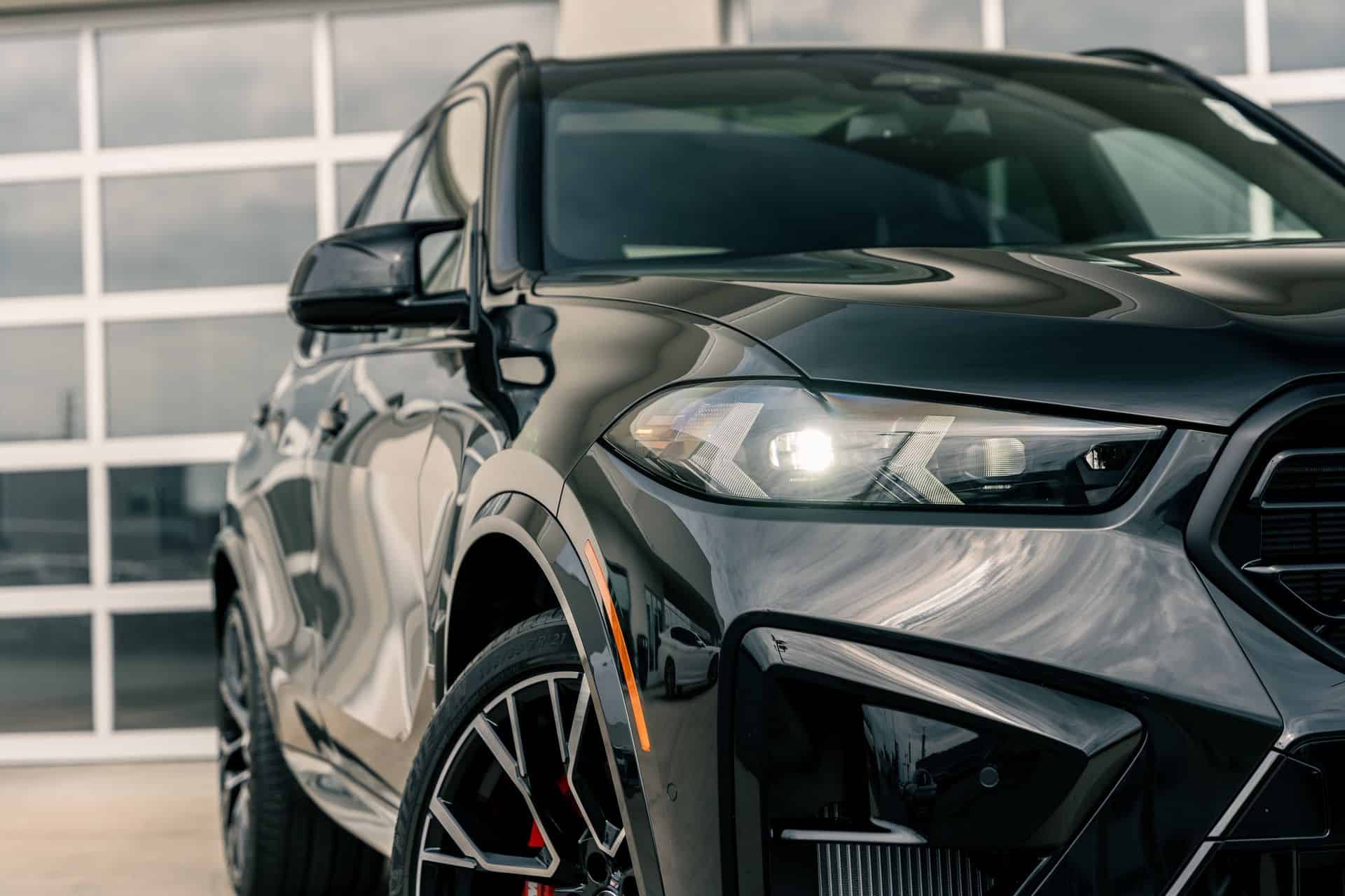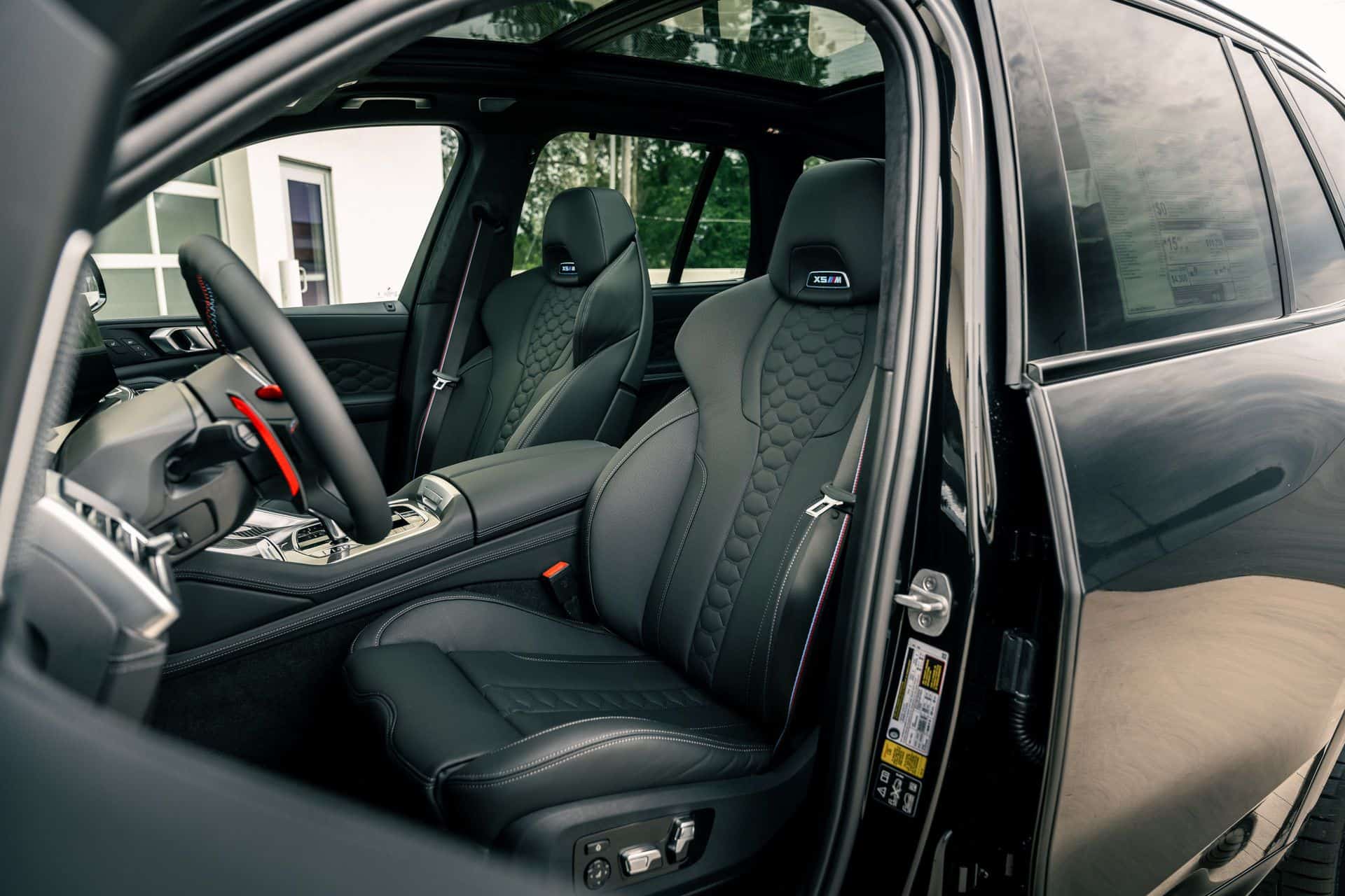 The only splash of color is provided by the brakes with their optional $650 red calipers as opposed to the standard blue. You can also have them in black for a true murdered-out look. With this being a 2024MY X5 M Competition, it has the redesigned kidney grille with horizontal slats flanked by slimmer headlights with arrow-shaped turn signals pointing outward. At the back, the updated LED graphics of the taillights now feature an “X” motif.