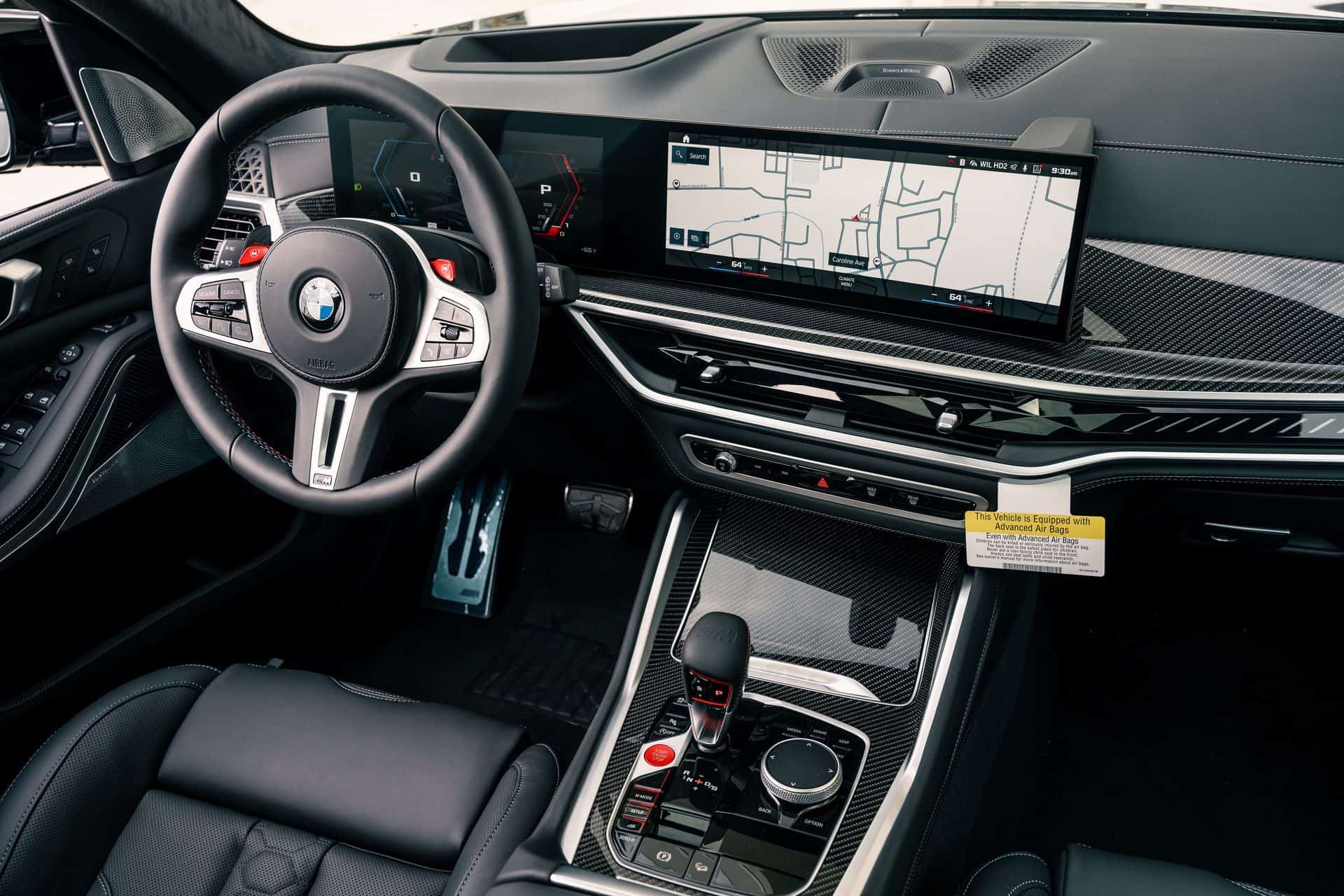 The monochrome look continues inside where the high-performance SUV has a predominantly dark cabin with full Merino leather in black – a $3,500 option in the US. Aside from the obvious switch to iDrive 8 that has eliminated most physical controls, the mid-cycle update has brought an illuminated graphic on the passenger side of the dashboard where an “M” logo now calls home. You’ll also find it on the X5 M60i whereas the lesser versions have an “X” instead.