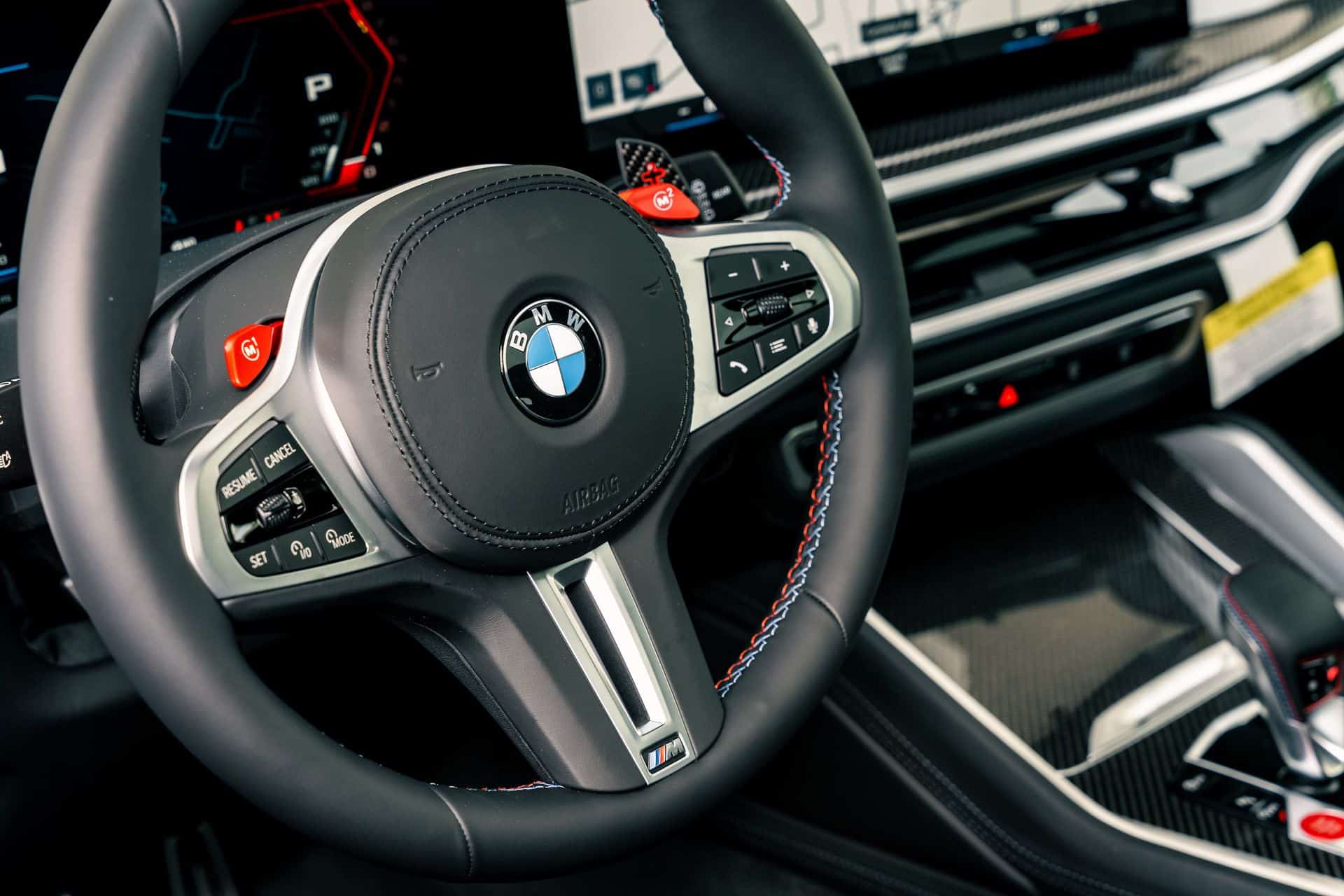One of the images provides a look underneath the hood where the newly developed S68 calls home. It has a unique engine cover with prominent “M Power” lettering and an M badge, along with red accents denoting it’s an eight-cylinder mill. This is still a twin-turbo 4.4-liter V8 making 617 horsepower and 553 pound-feet (750 Newton-meters) of torque but it uses a mild-hybrid setup (48V) for better efficiency. The ICE works with a small electric motor built into the eight-speed automatic transmission, providing a temporary boost of 12 hp and 147 lb-ft (200 Nm).