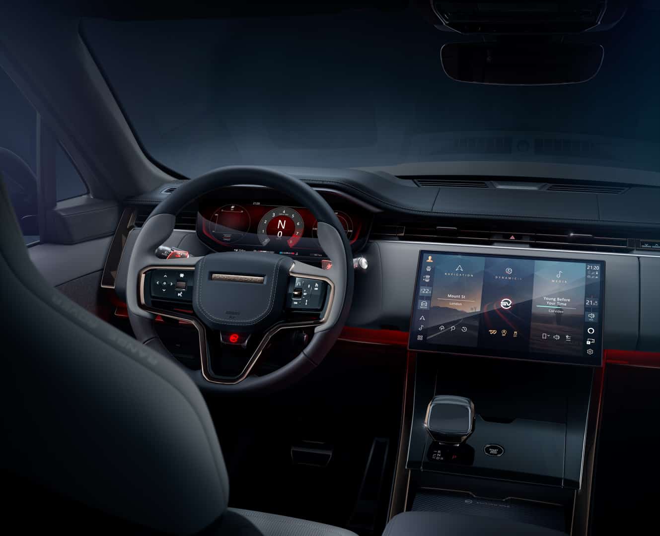 It also gets a lowered ride height, to not only handle better but look awesome. This is one of the very best looking SUVs on the market now, as it’s just gorgeous. The low ride height and wheels perfectly compliment its already stunning looks. Inside, it gets a sportier version of the already very pretty Range Rover Sport cabin, with an edgier steering wheel and some red bits.