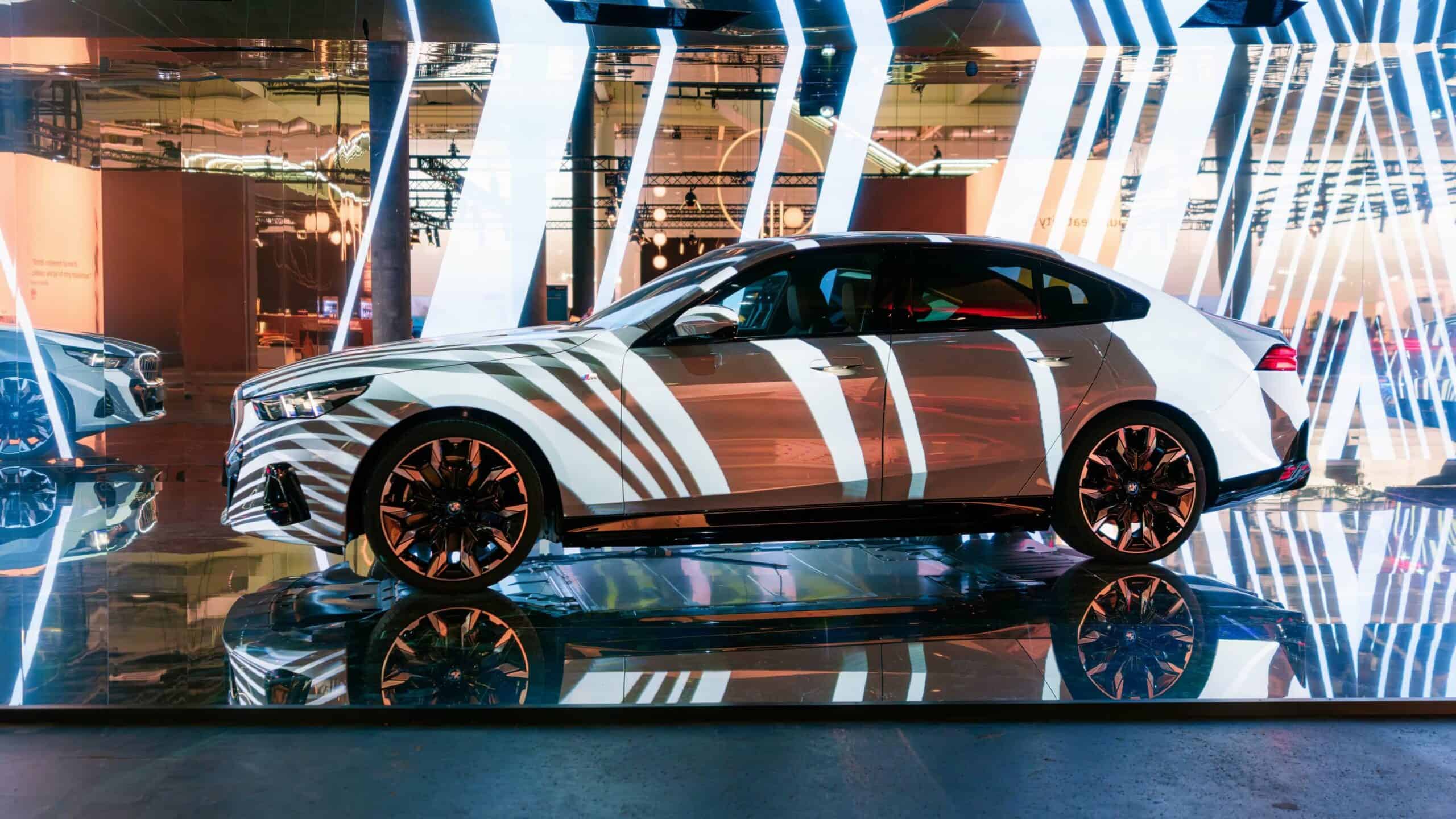 Instead, “The Electric AI Canvas” as the i5 has been described has morphed into a canvas on which designs created by artificial intelligence algorithms have been projected. The abstract liveries are the result of combining more than 50,000 photos spanning 900 years of art history. The outcome is a mélange of classical and contemporary art exhibited onto the G60, which is the largest 5 Series ever made, stretching at 5060 millimeters (199.2 inches) long.