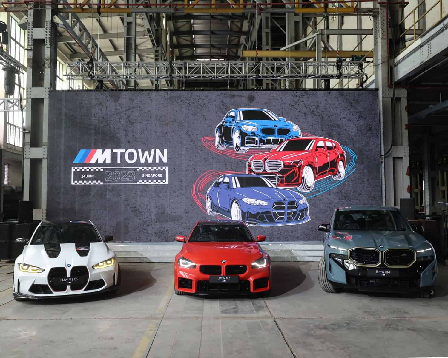 The fictional ///M Town was set up by BMW Asia for the first time as an invite-only event organized at the decommissioned Pasir Panjang Power Station. More than 600 guests had the opportunity to see exciting new M products such as the M2 G87, M3 CS, and XM, alongside some of the greatest hits. Veritable automotive icons included the original 3.0 CSL (E9), a superb M635CSi (E24), and an M3 CSL (E46).
