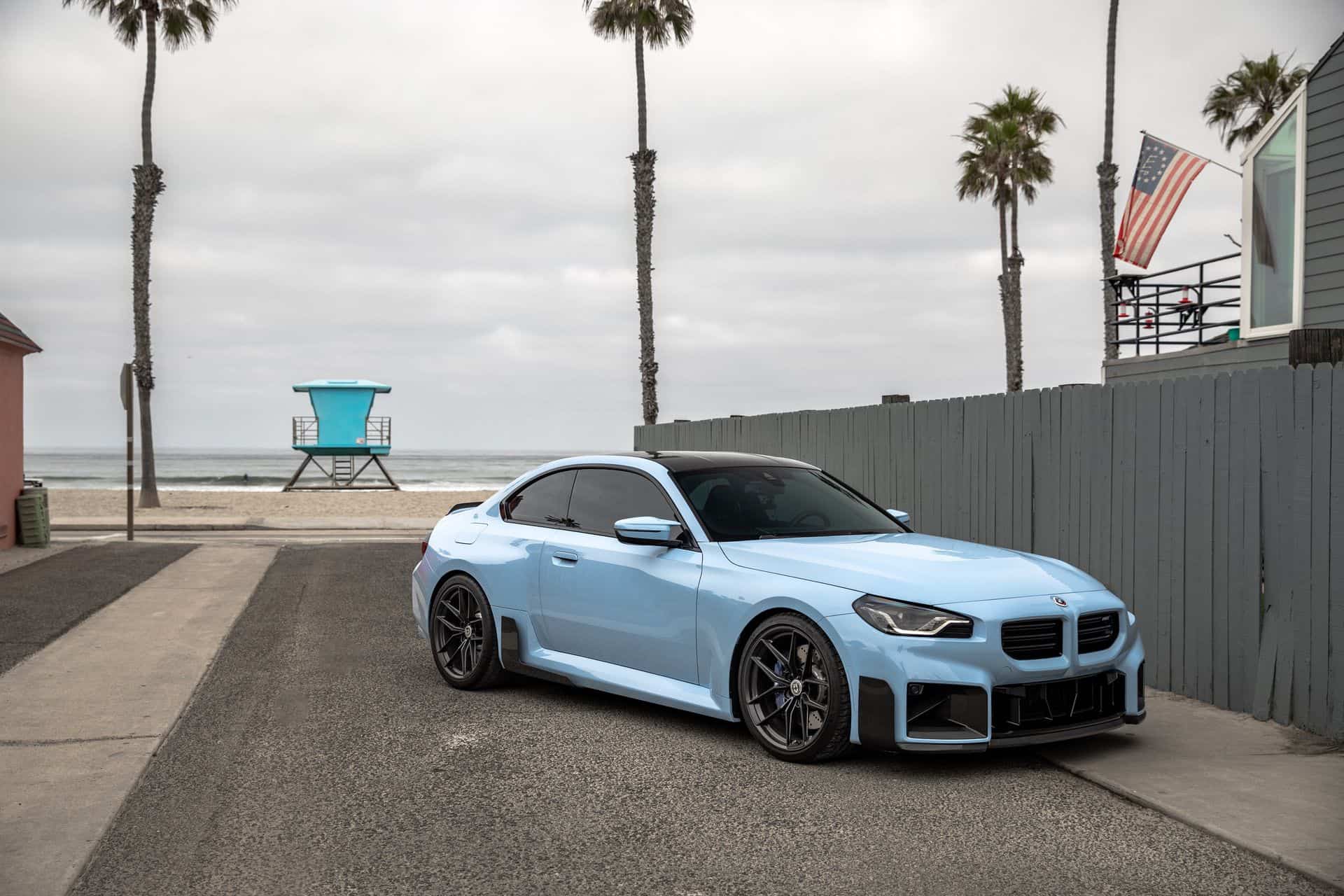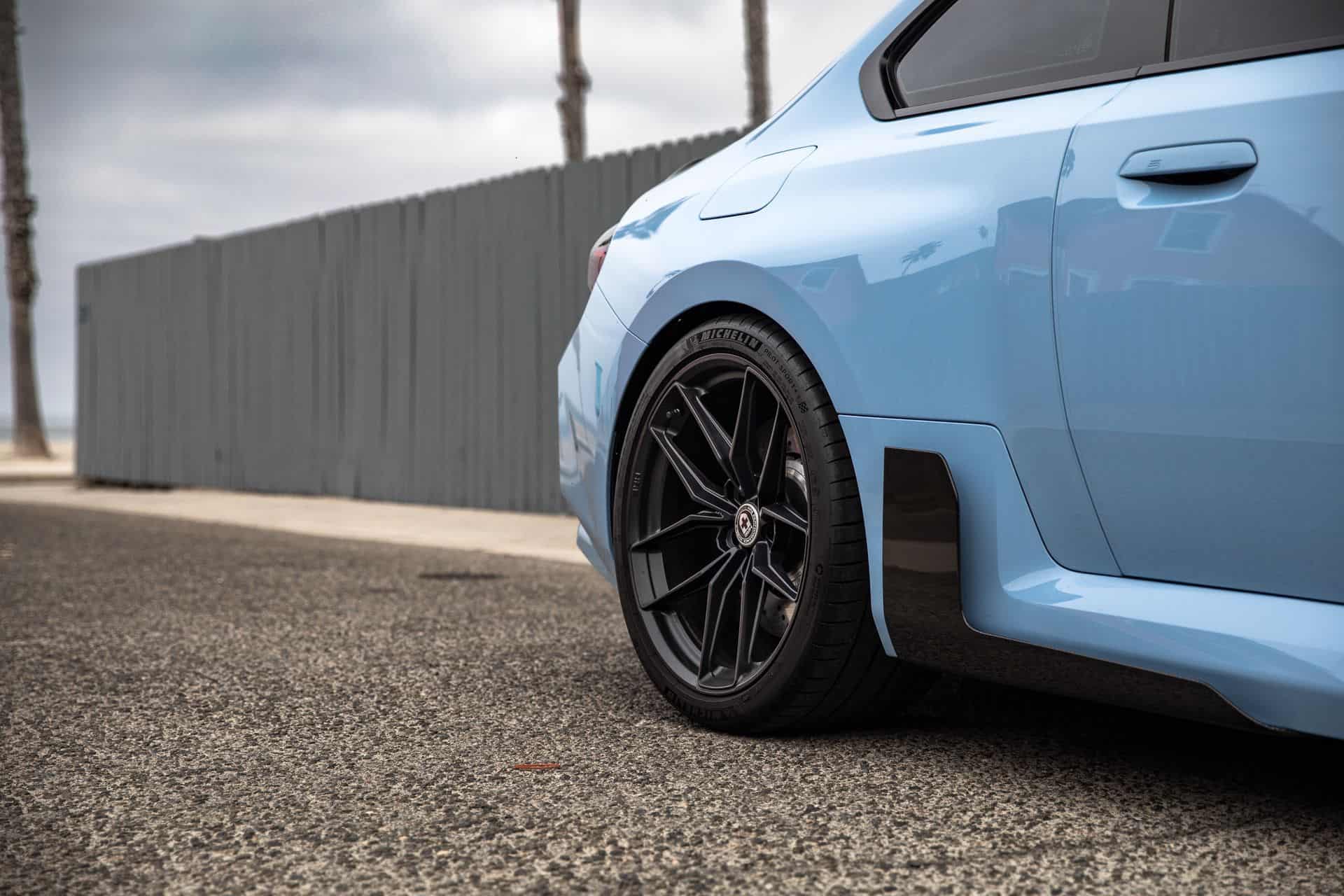 Your options are quite limited when it comes to choosing OEM wheels for the new M2 as BMW has only a few sets of alloys available for the G87. If none of them tickle your fancy, there are already plenty of aftermarket alternatives. Case in point, HRE Wheels is showing off its FlowForm FF21 set on the sports coupe finished in the exclusive Zandvoort Blue. The rear-wheel-drive machine also happens to have some add-ons like the chunky trunk lid spoiler, the side spats on the front bumper, side skirt winglets, and the 50 years of M roundels.