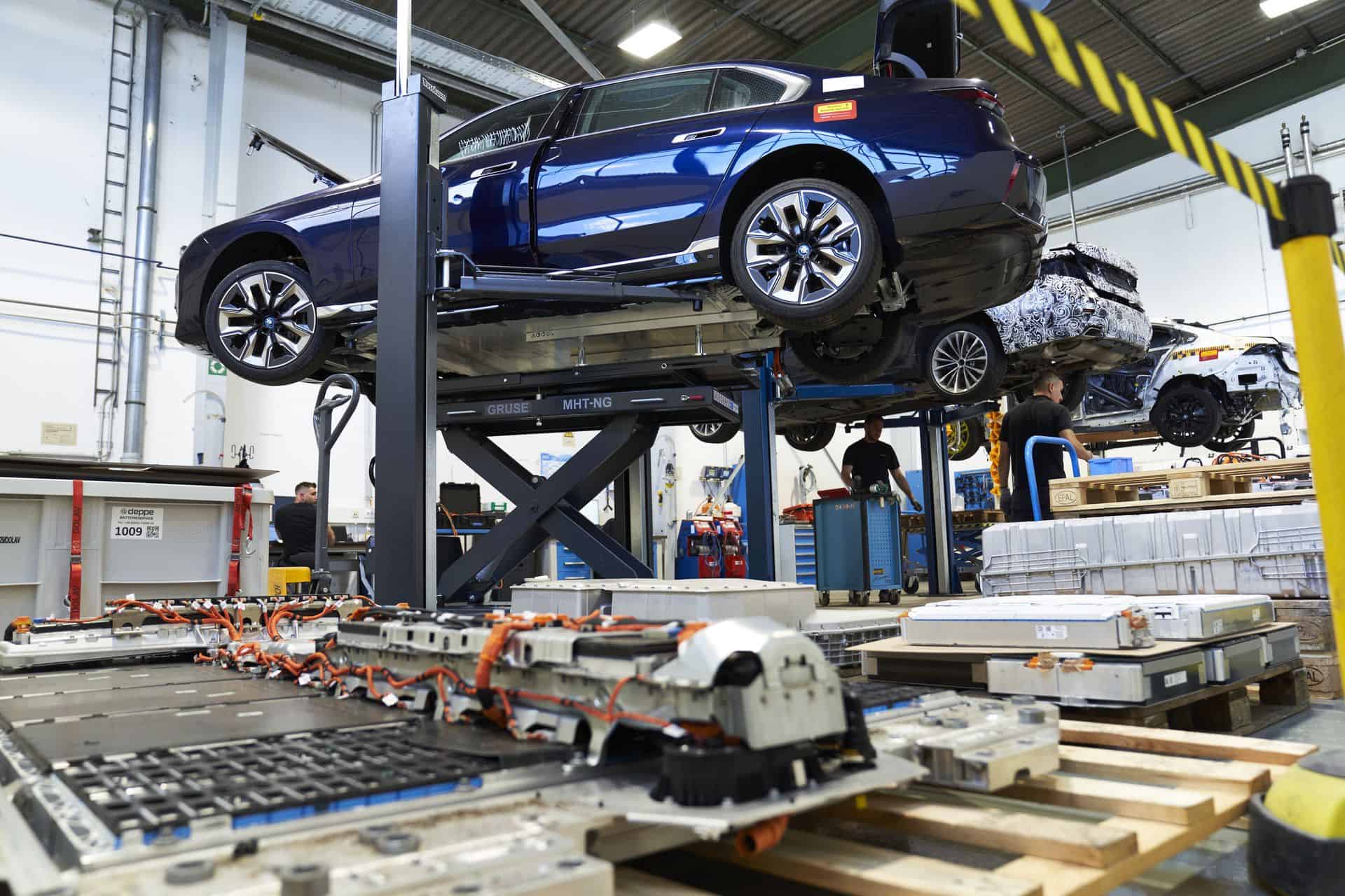 EV batteries and components were manufactured from the beginning to be reusable. That’s a major reason you’ll find everything from the original ActiveE to early i4 models in the Center. Cell by cell, batteries are tested, and useable modules are removed and sent to a plant that recycles batteries. Since EU regulations require 50% of the weight of the battery to be recycled, it’s simply the cost of doing business. There are one-off cases where the batteries are used to power up equipment in the dismantling center.