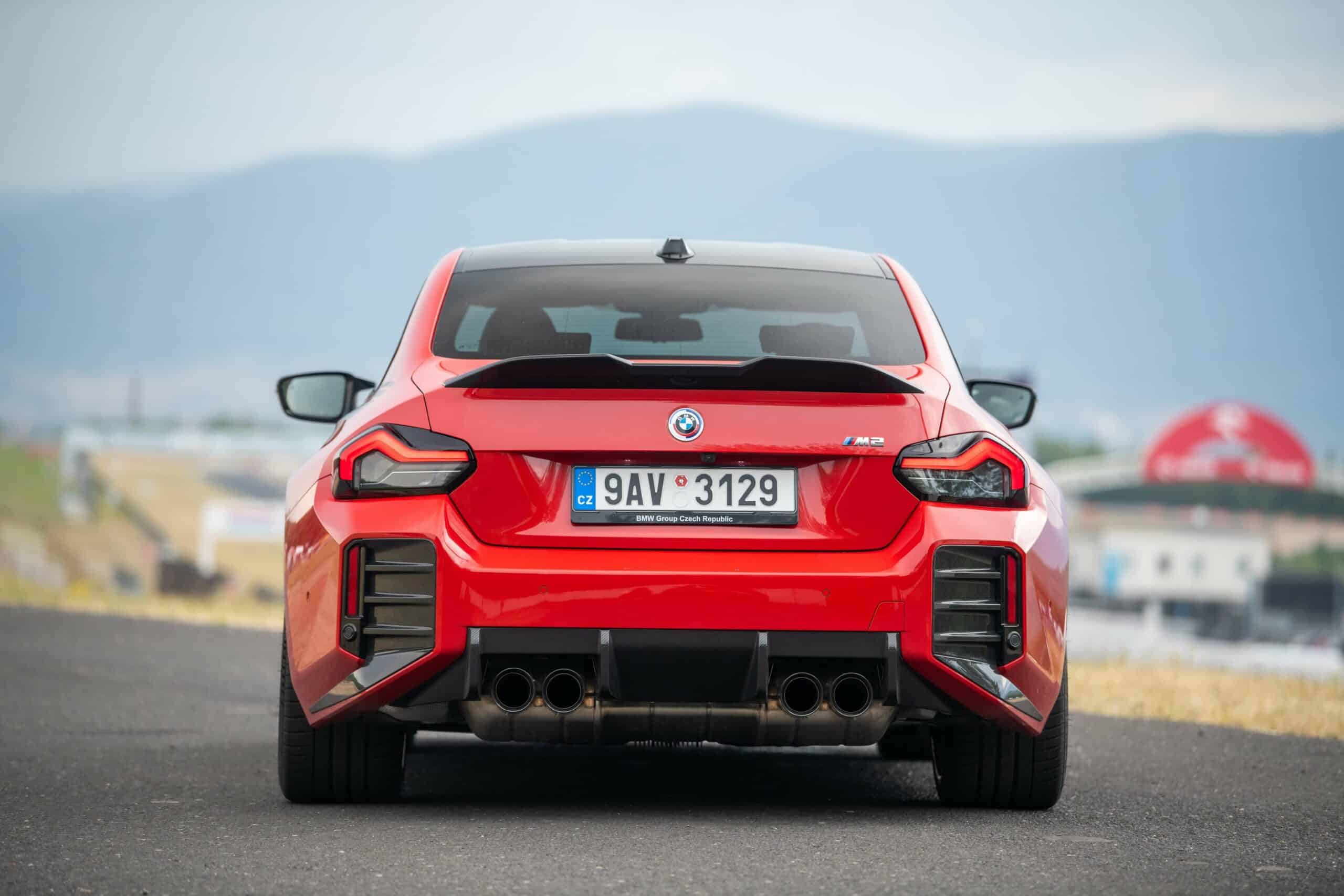Photographed going sideways in the Czech Republic at the Autodrom Most, the new M2 is chock-full of MPP goodies. Save for the center-mounted exhaust tips and the roof spoiler, it has nearly all the other items. It boasts carbon fiber side spats along with a chunky trunk lid spoiler made from the same material. The front air intakes and spoiler lip are also from carbon fiber to complement the carbon roof and side mirror caps.