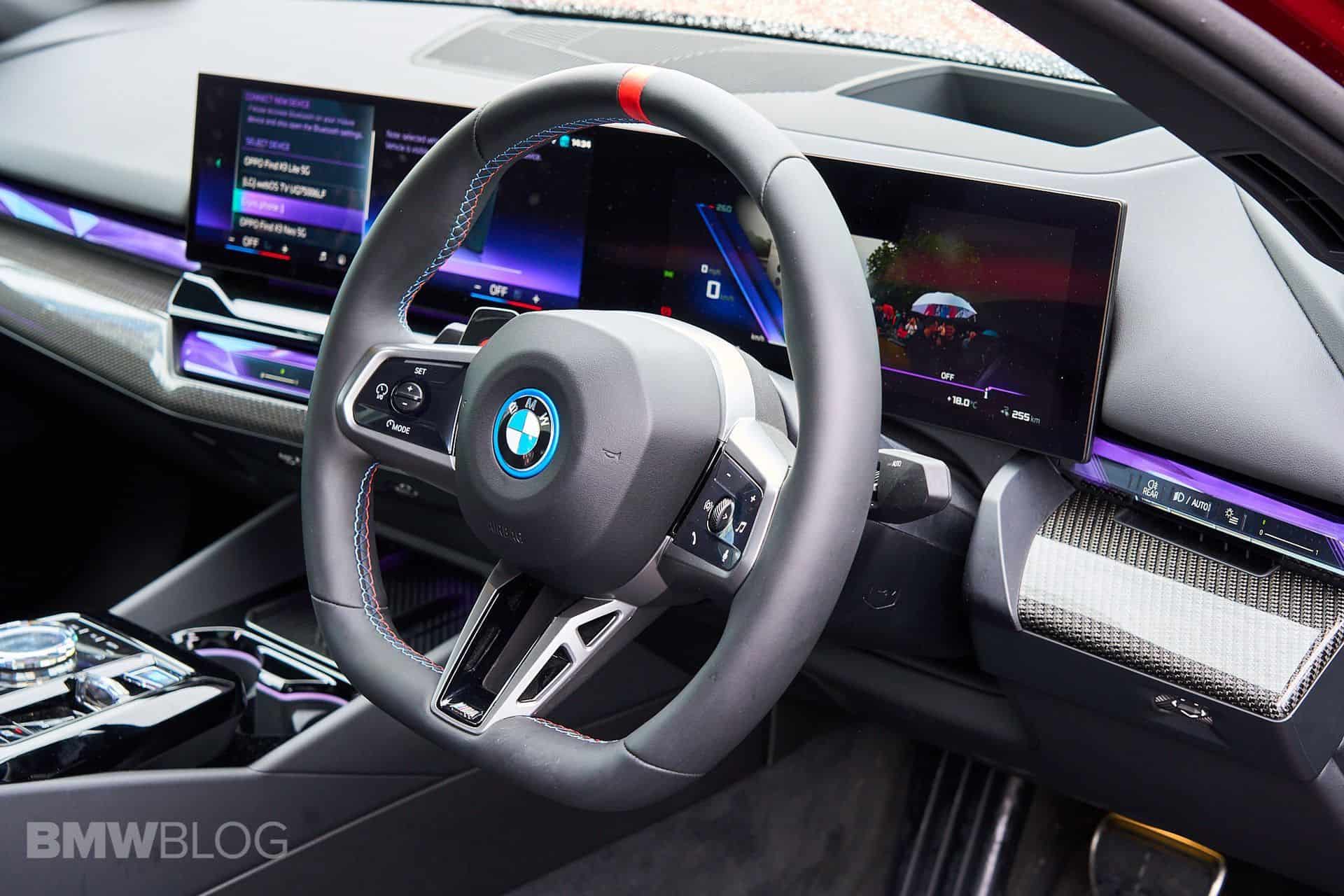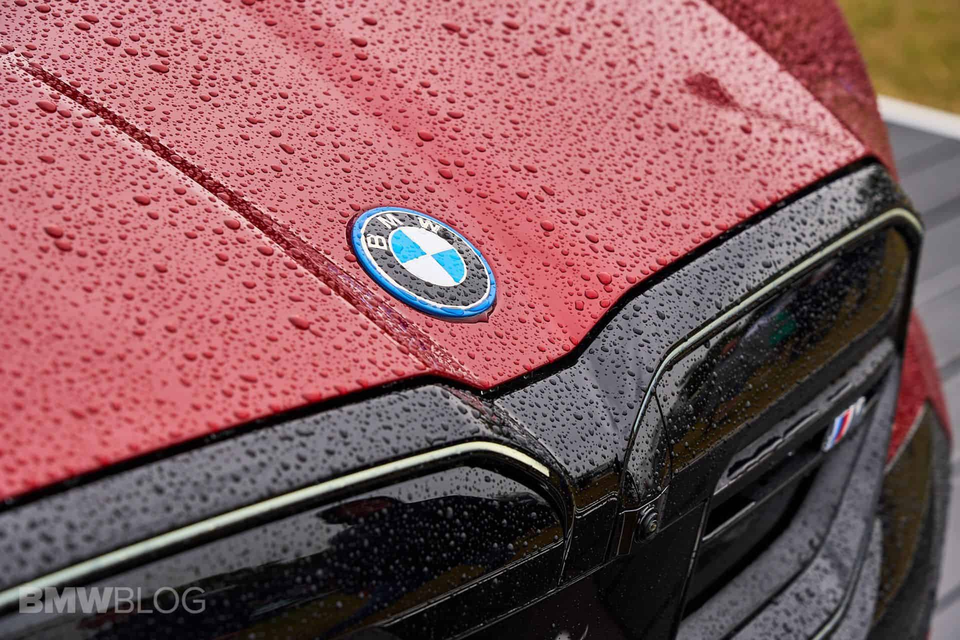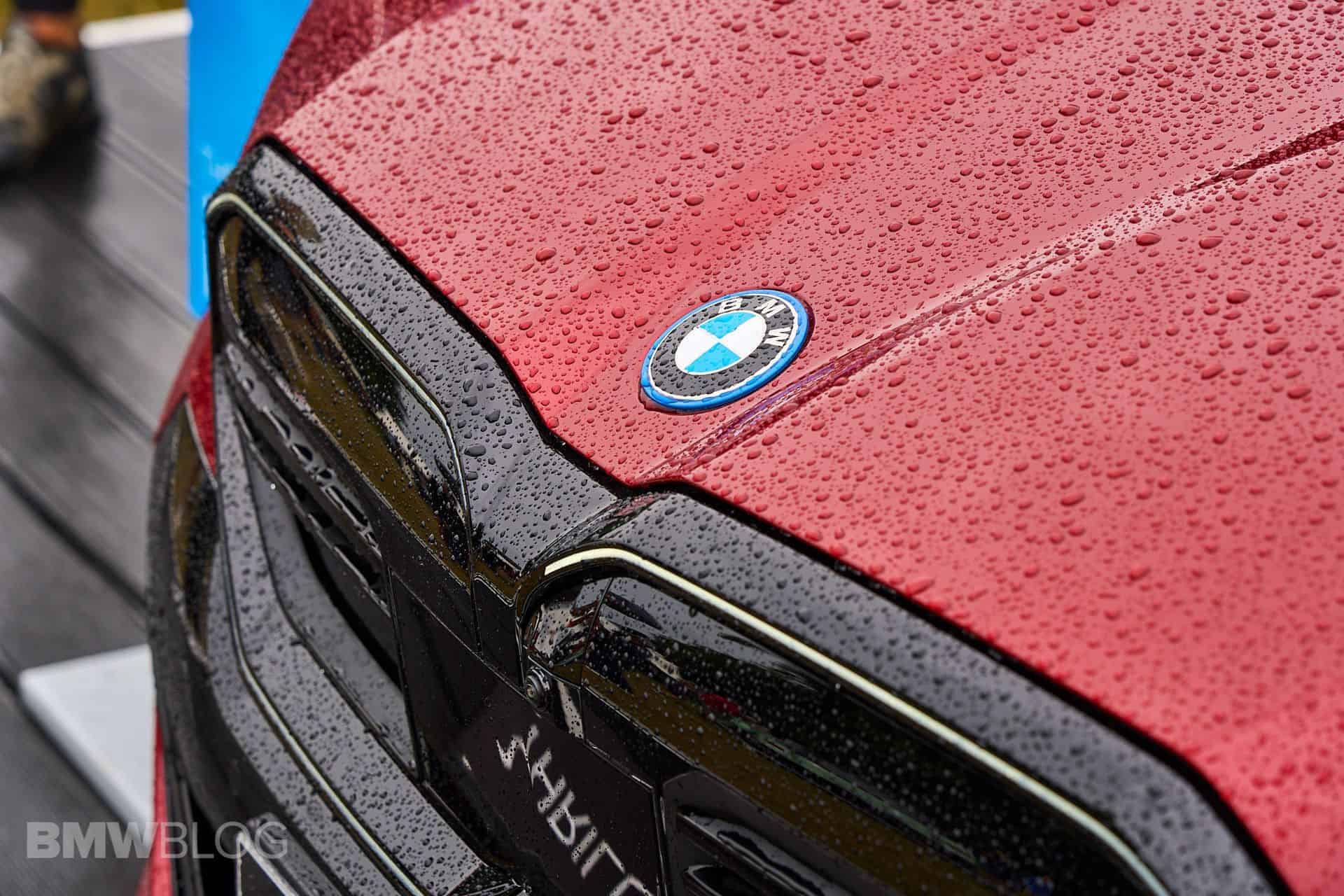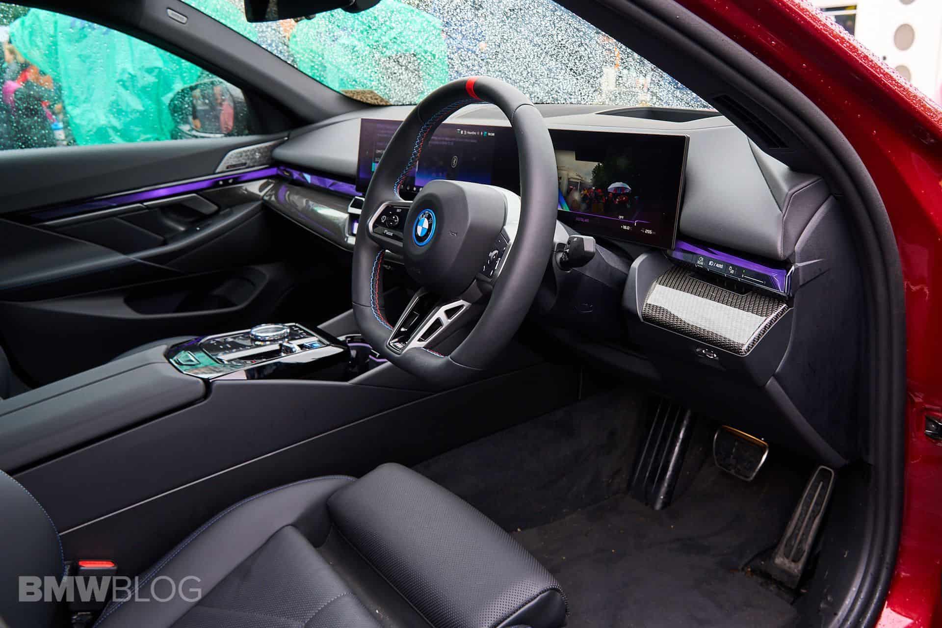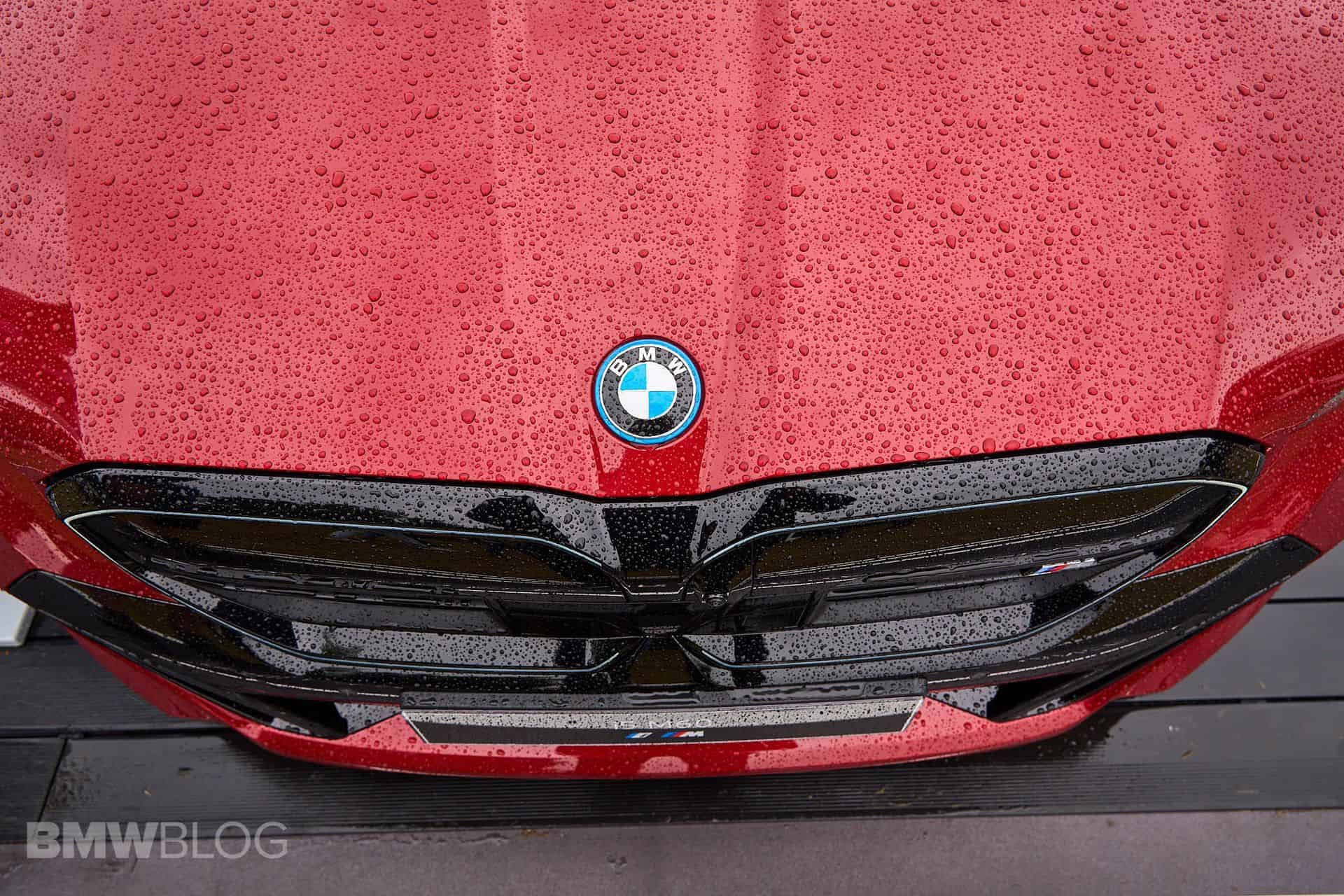 BMWBLOG is on location and we were able to take these images on a rainy Friday. The bad weather couldn’t stop us from getting up close and personal with the first-ever i5 M60, the temporary range topper until the M5 arrives in 2024 in both sedan and wagon flavors. The M Lite model stands out with its sportier kidney grille design featuring a thick horizontal bar proudly carrying the M logo. BMW has already said the next-gen M5 will use a variation of this front grille.