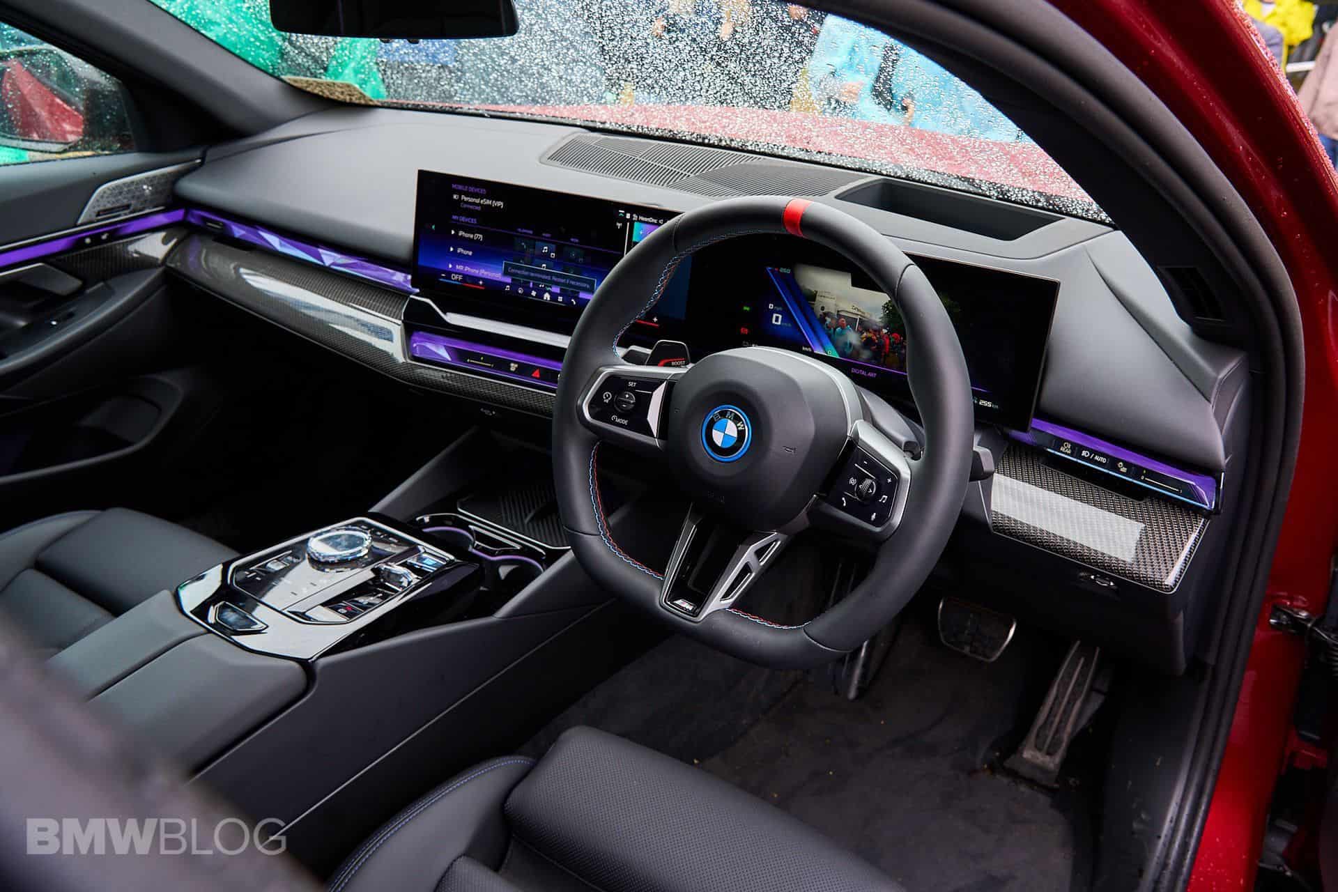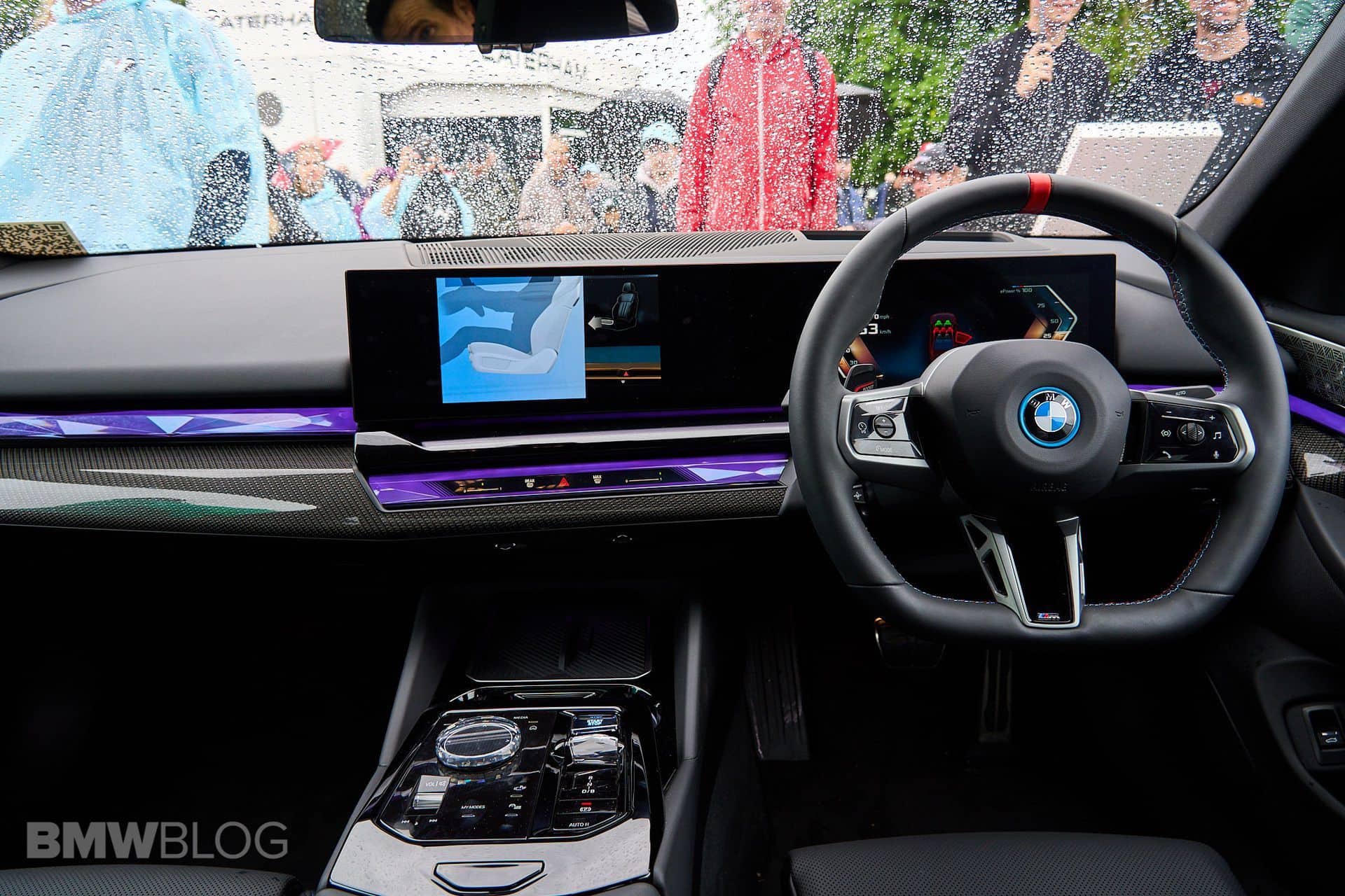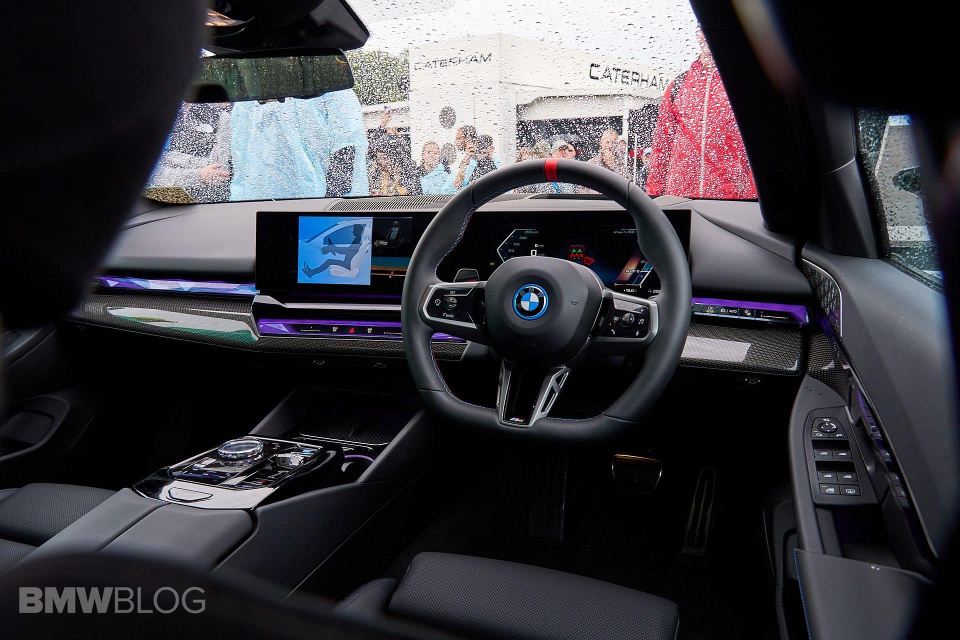 While this i5 M60 is a standard version, there’s an upgraded configuration of the electric sports sedan in Munich at the BMW Welt with M Performance Parts. Naturally, BMW brought a right-hand-drive car to Goodwood since the event takes place in the UK. While those wheels with body-colored brake calipers measure 20 inches, you can go a size higher or lower when configuring your ideal i5 M60 spec.