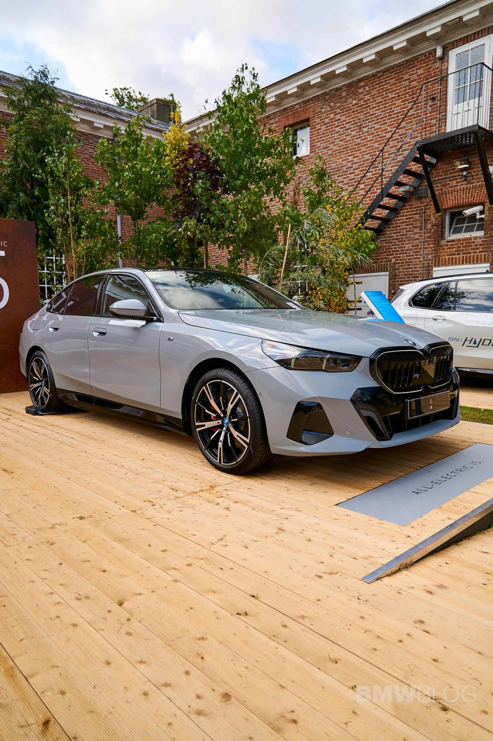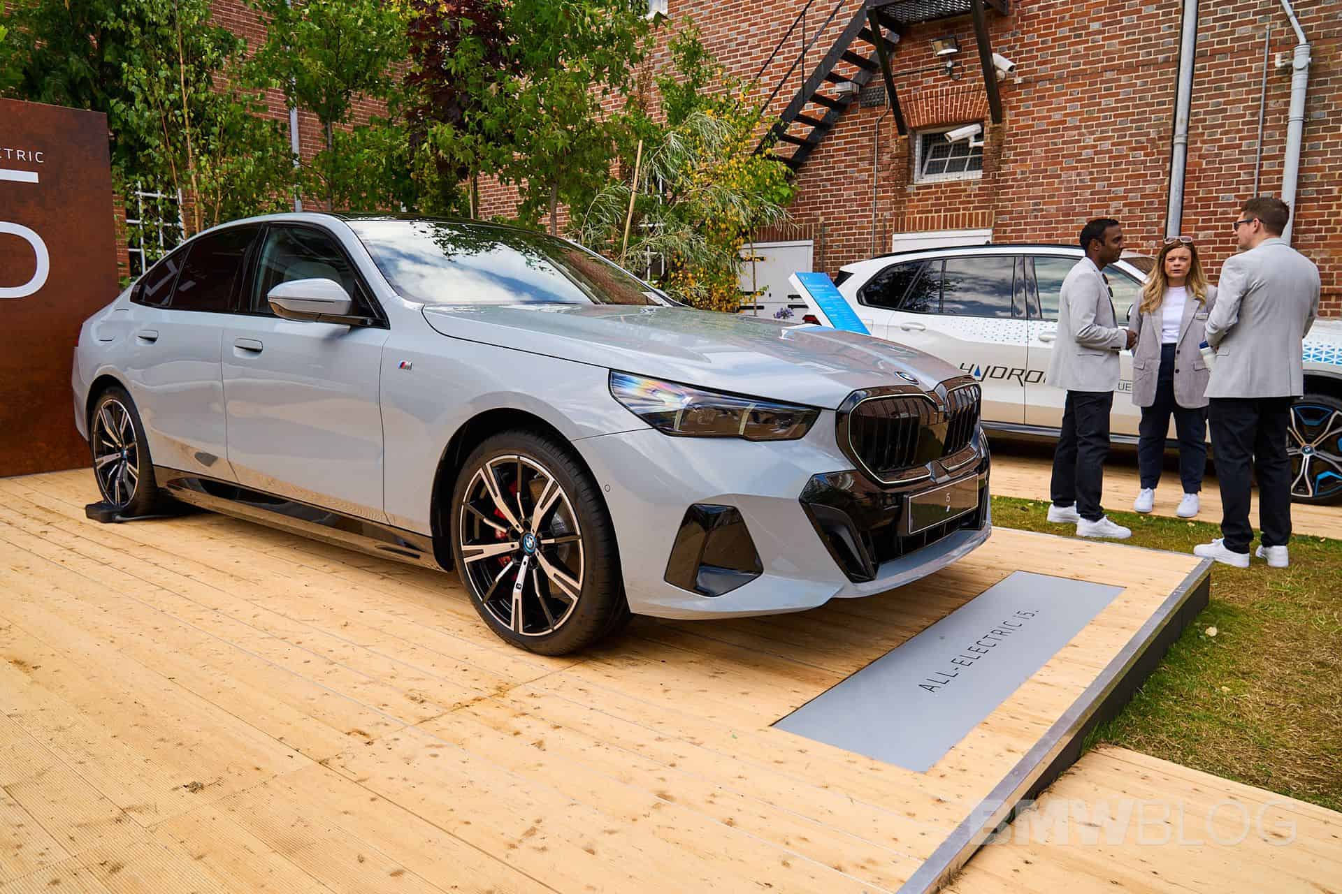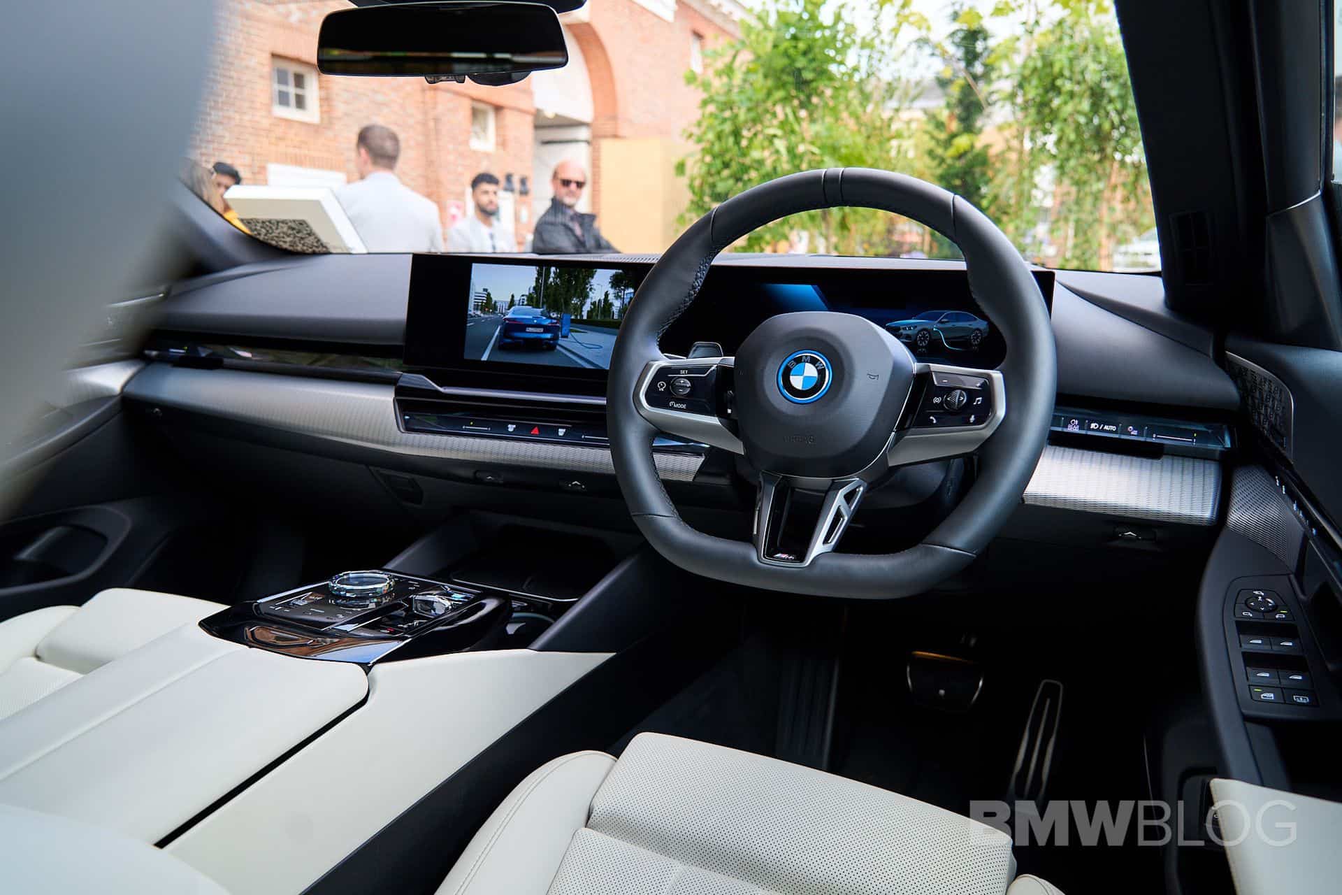 This i5 is not completely standard since it has a few upgrades to make it look better at the event. For starters, it’s dressed in M Sport attire – a $3,000 option in the US – with a Brooklyn Grey paint, 20-inch two-tone wheels, and red brake calipers. Naturally, BMW brought a right-hand-drive car to the event, featuring Smoke White upholstery. That’s actually Veganza, which is marketing speak for vegan leather. In fact, the 5 Series G60 is the company’s first production car to offer a truly vegan interior.