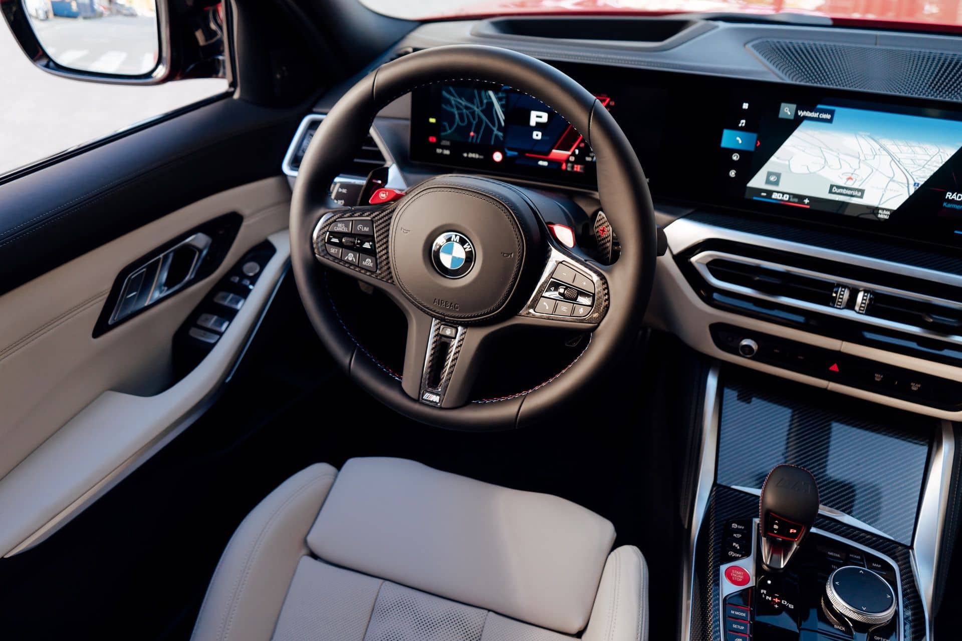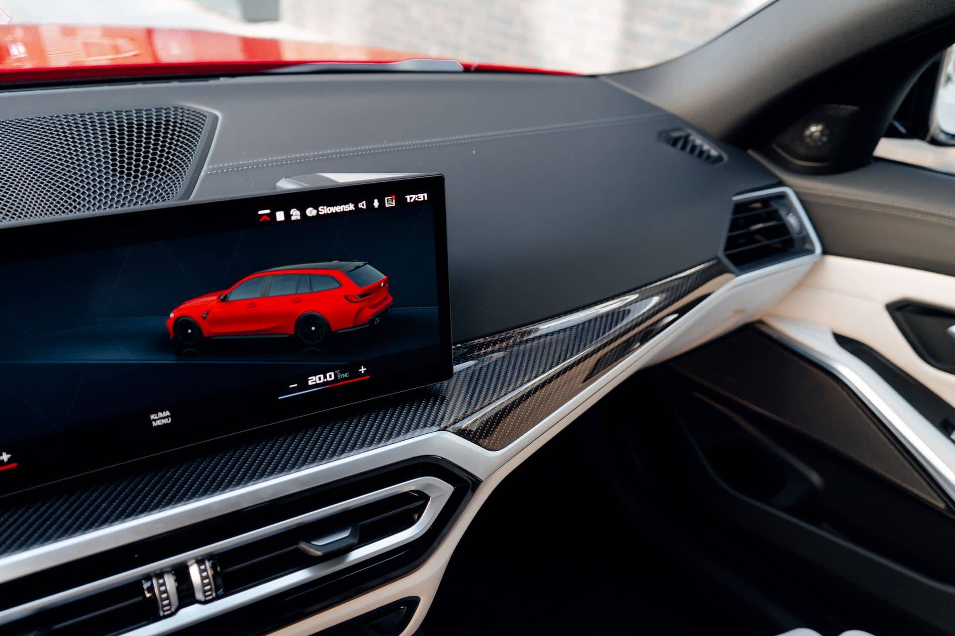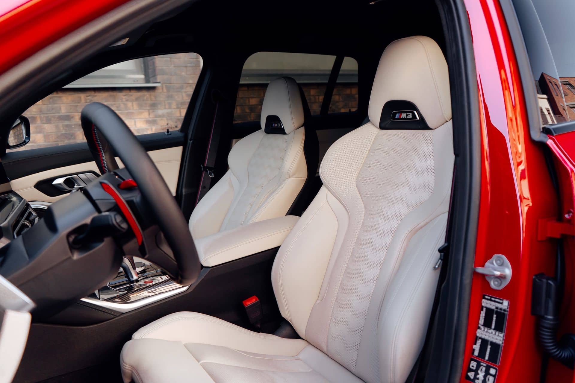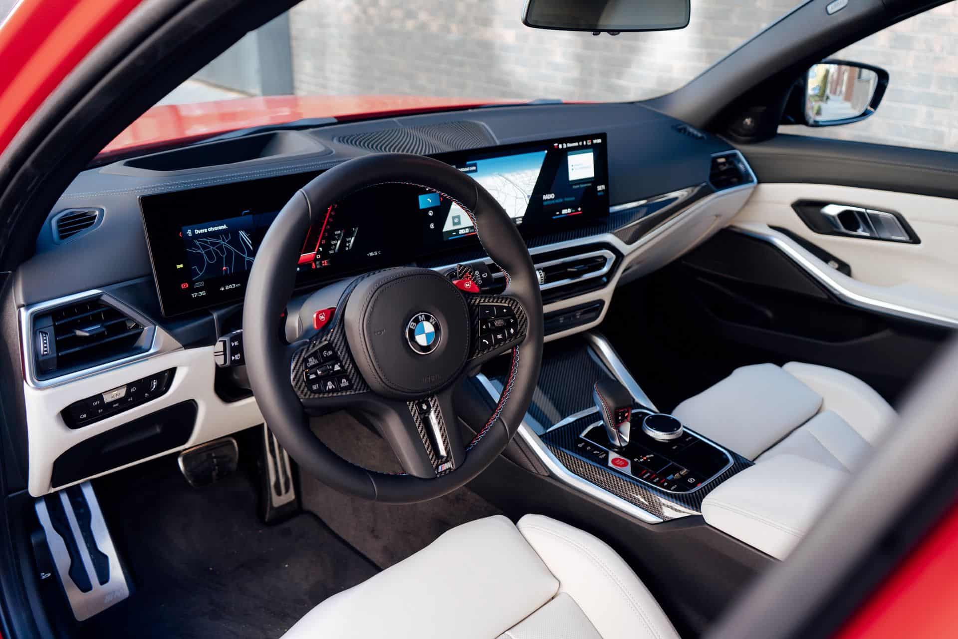 Whoever configured this car had impeccable taste as the G81 has an Individual interior with full Merino White leather and carbon fiber trim on the dashboard. While body-hugging bucket seats are available, this M3 Touring has the standard seats delivering greater comfort, especially on long trips a wagon owner typically does more than someone who has a sedan or a coupe.