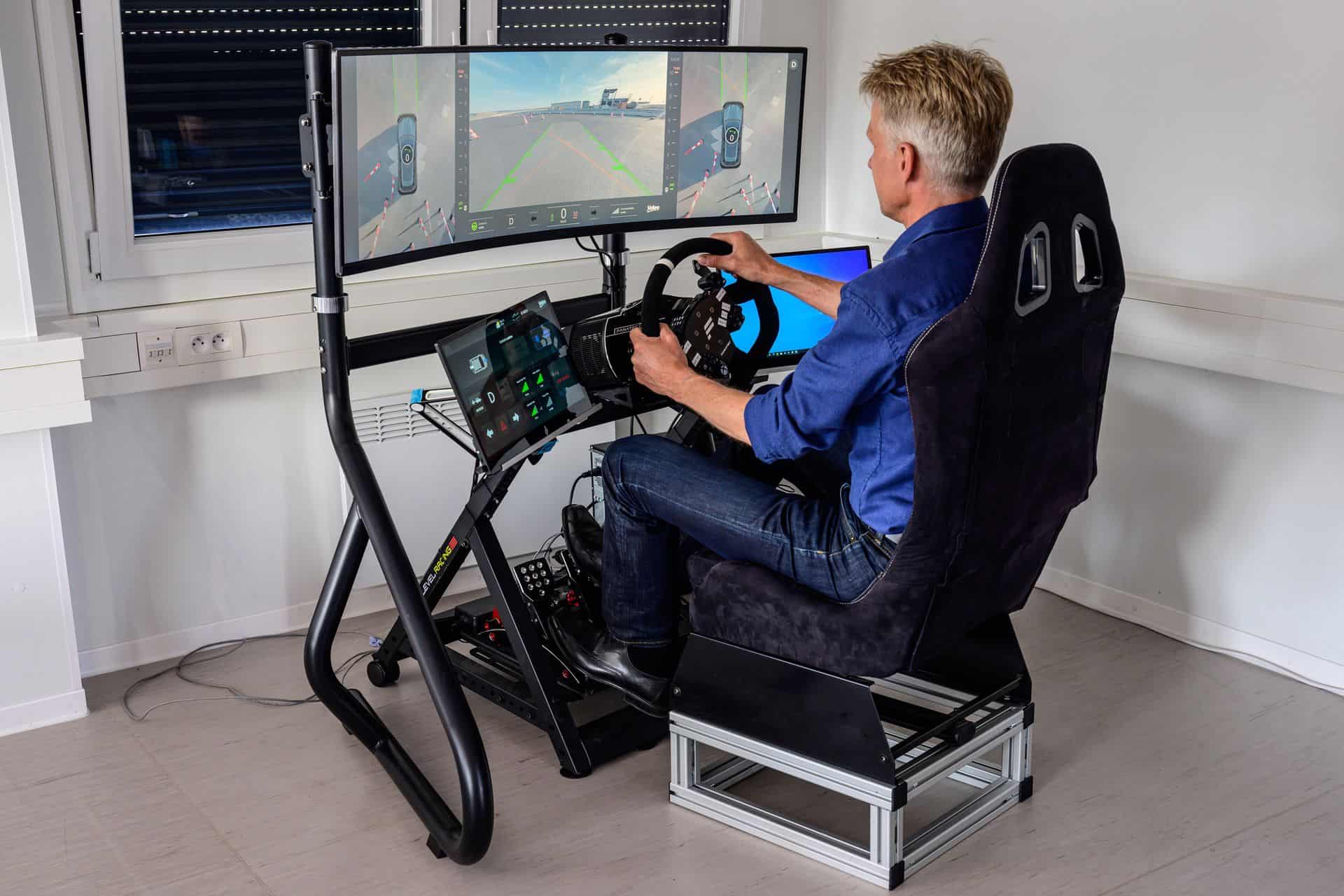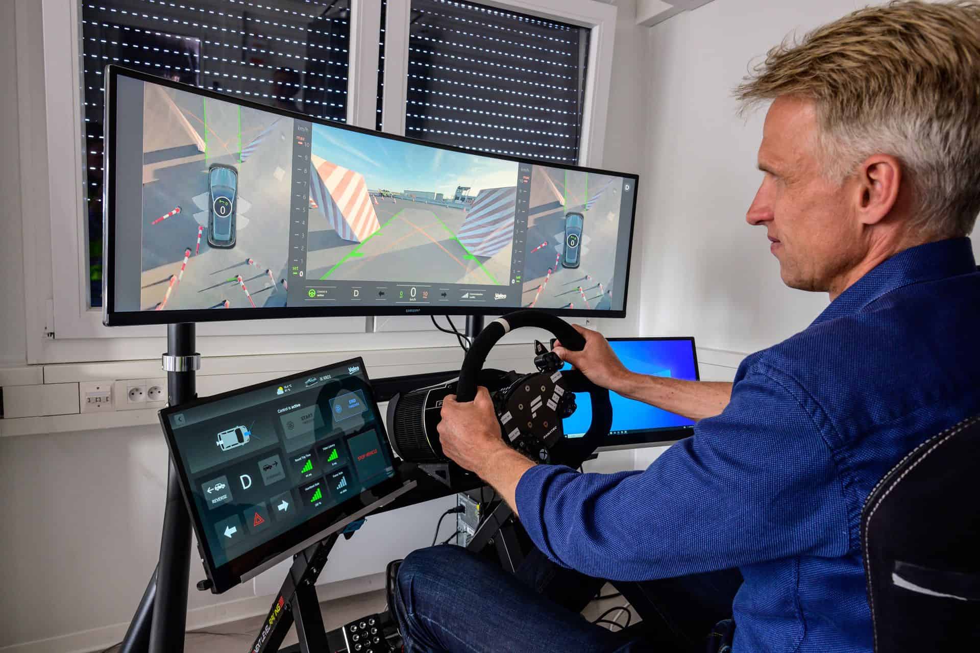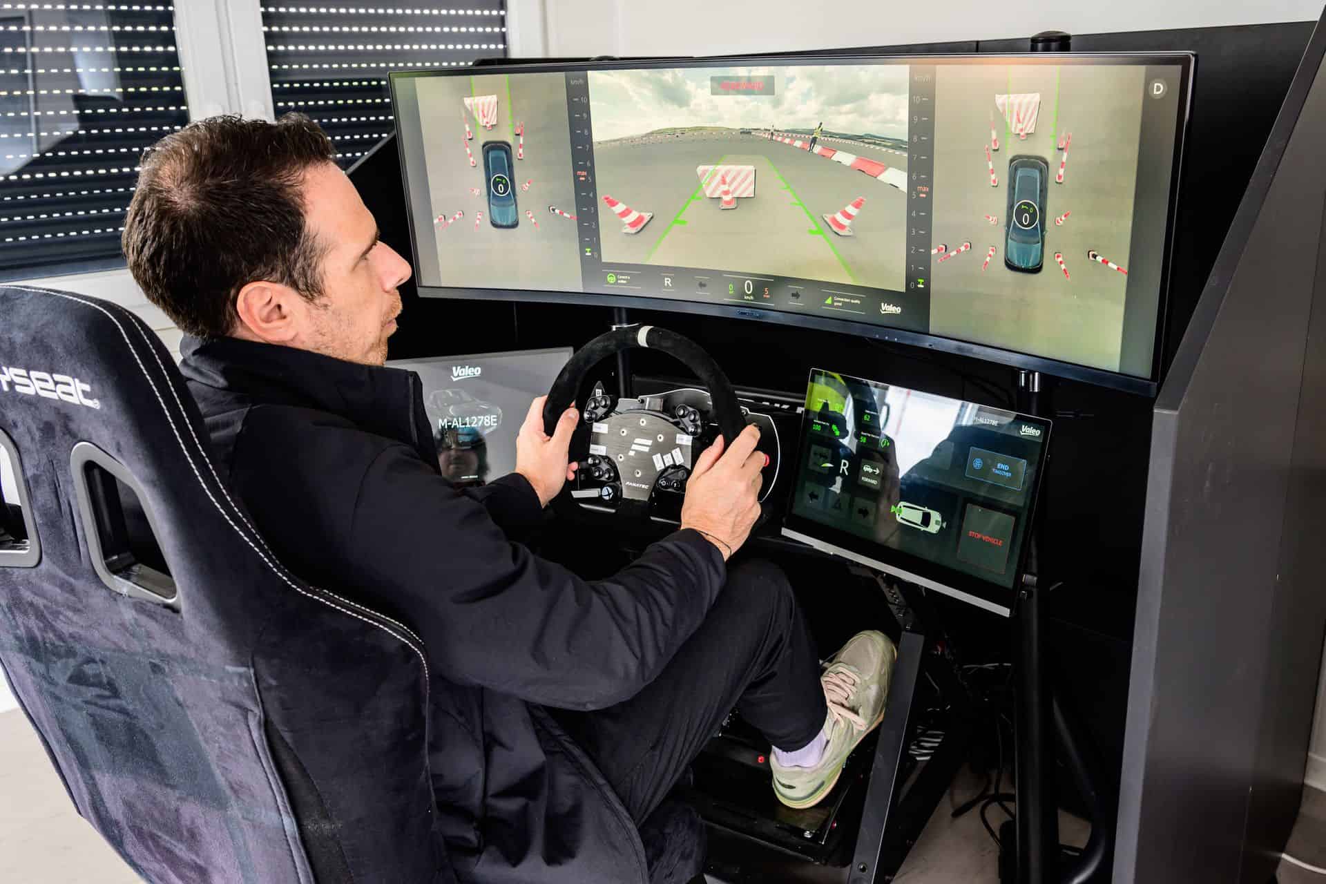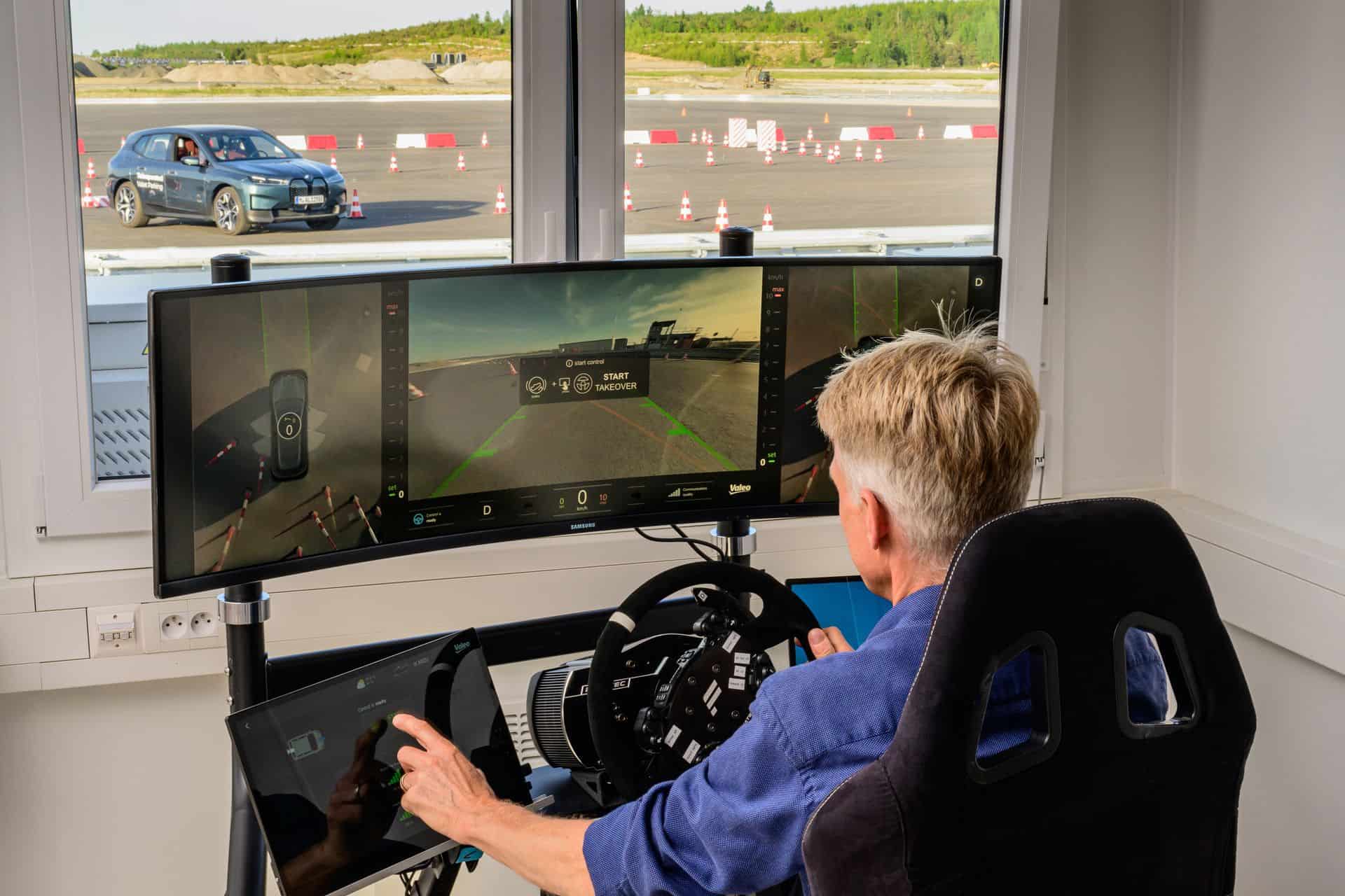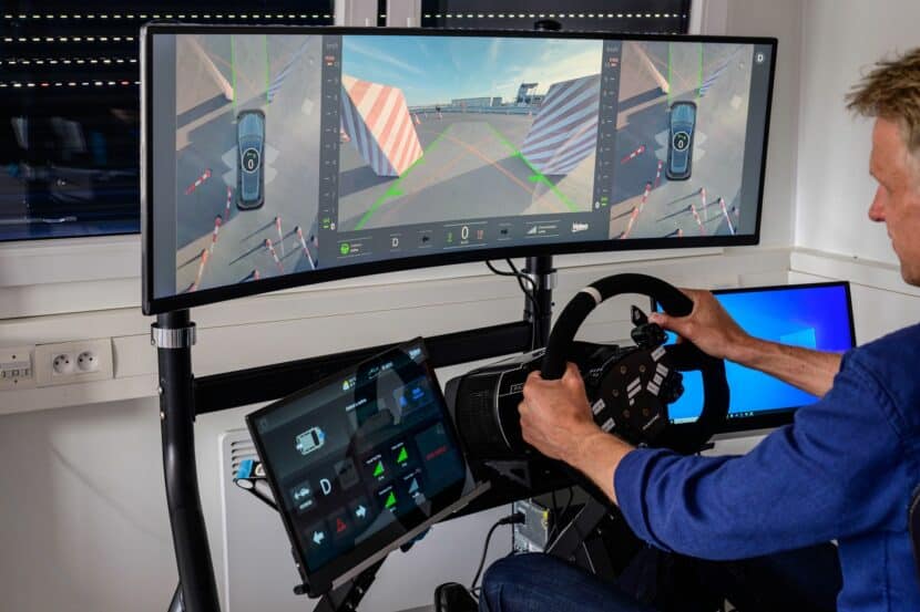 Instead, Automated Valet Parking works by handing over control of your vehicle to a trusted third party. This particular use case is an R&D project for now. Customers will initially get the Automated Valet Parking Type 1 and Type 2. In this teleoperation use case, the driver authorize the order and all that’s needed is a 4G connection. Then, an operator takes control and parks the vehicle. Pretty simple and works great for things like event parking or older parking garages. The car travels with a speed up to 10 km/h. The functionality is as simple as you can imagine: sit down in a SIM Racing type of kit, use the brake and acceleration pedals to move or stop the car, and slowly steer around objects. There is no lag from what we can tell and the experience is as “live” as possible. The acceleration is also very smooth and progressive, so even if you try to floor the “gas pedal”, the car won’t quickly move. This a safety measure implemented to avoid any driving mistakes.