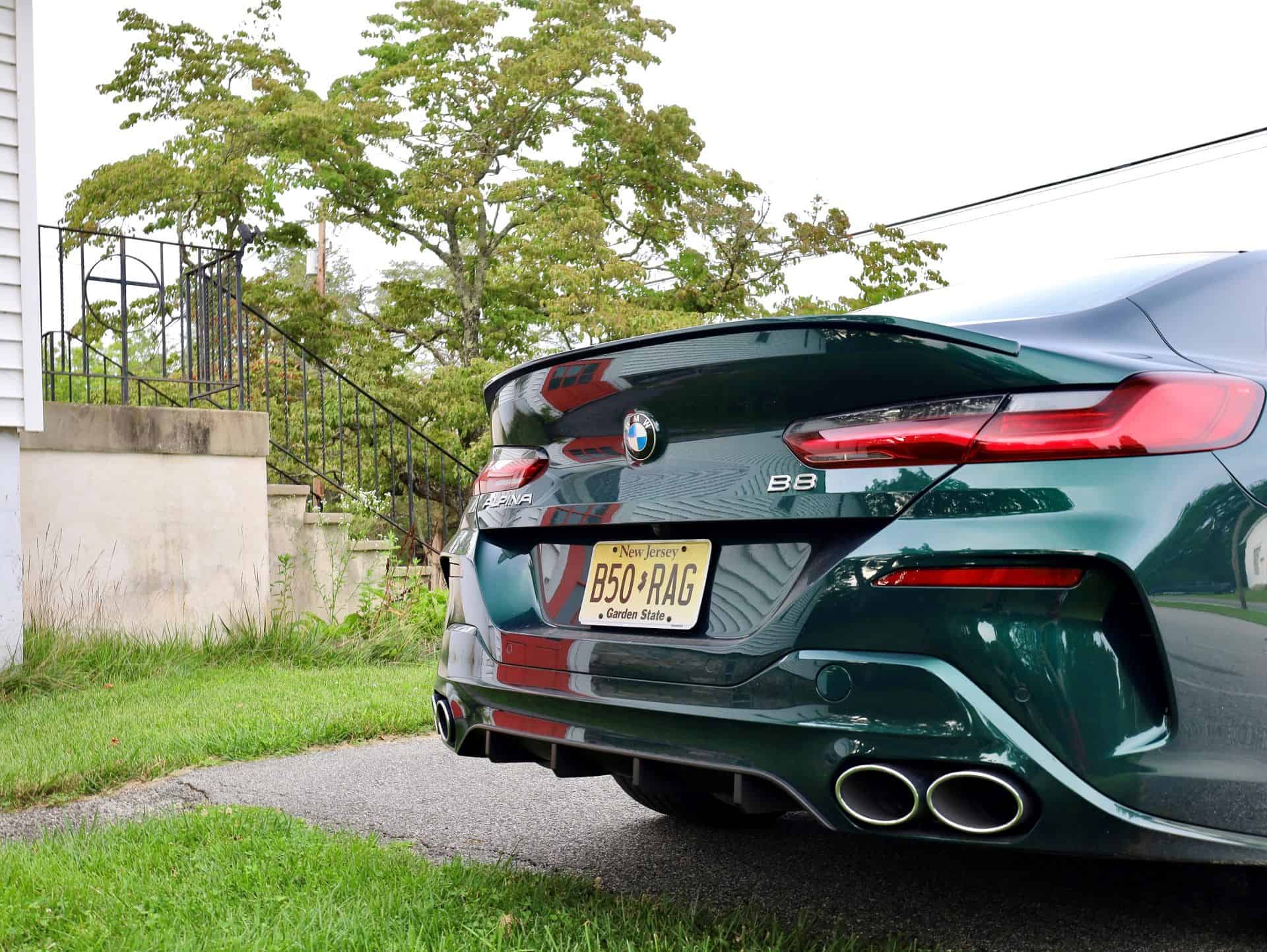 Front and rear, the BMW ALPINA B8 Gran Coupe receives unique badging and touches that separate it from standard and M-tuned 8 Series variants. The model-specific front air dam features bold ALPINA lettering across it, and in the back, not-subtle “B8” and “ALPINA” badges appear alongside the typical roundel on the trunk. These unique touches join some choice but subtle ALPINA exterior touches.
