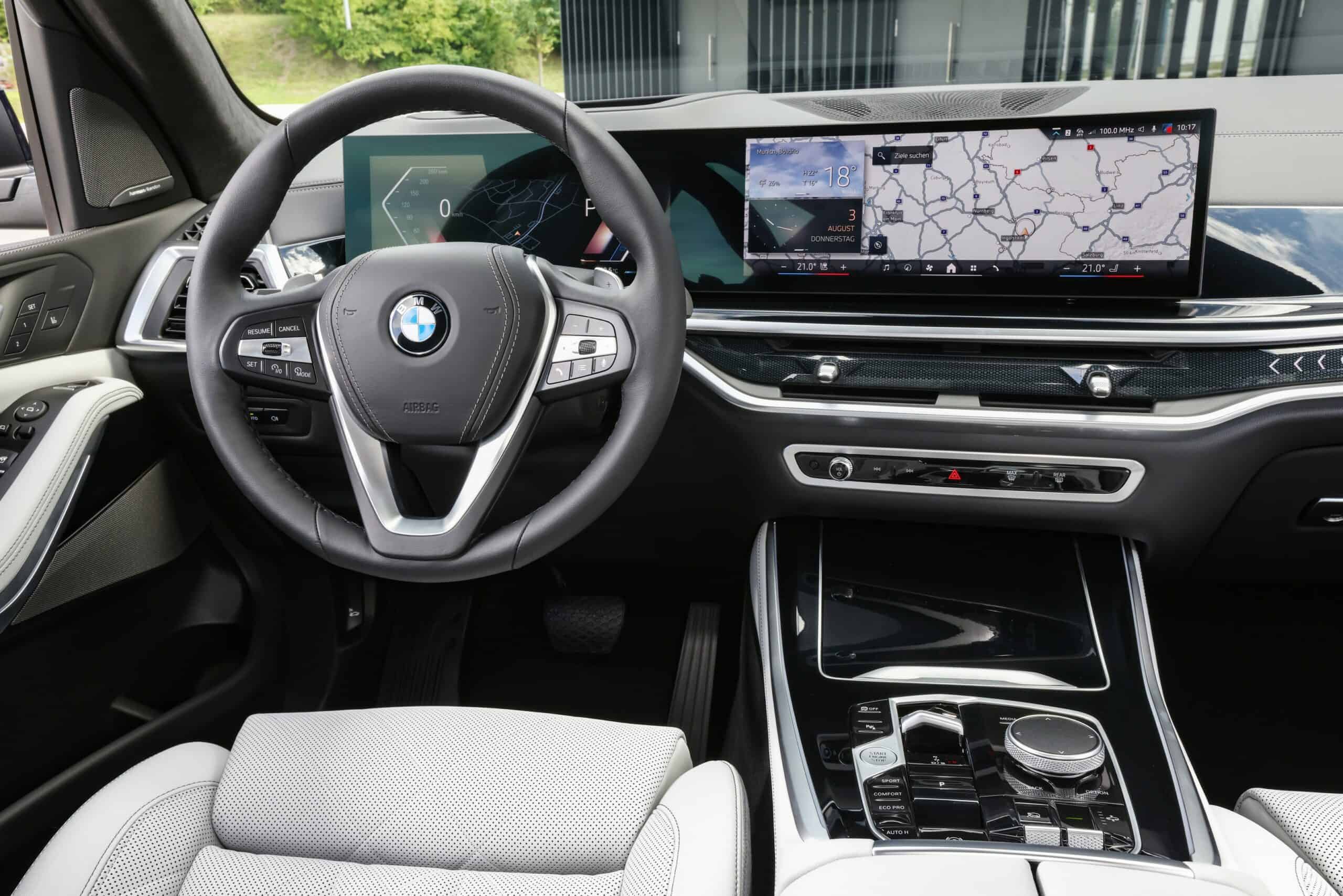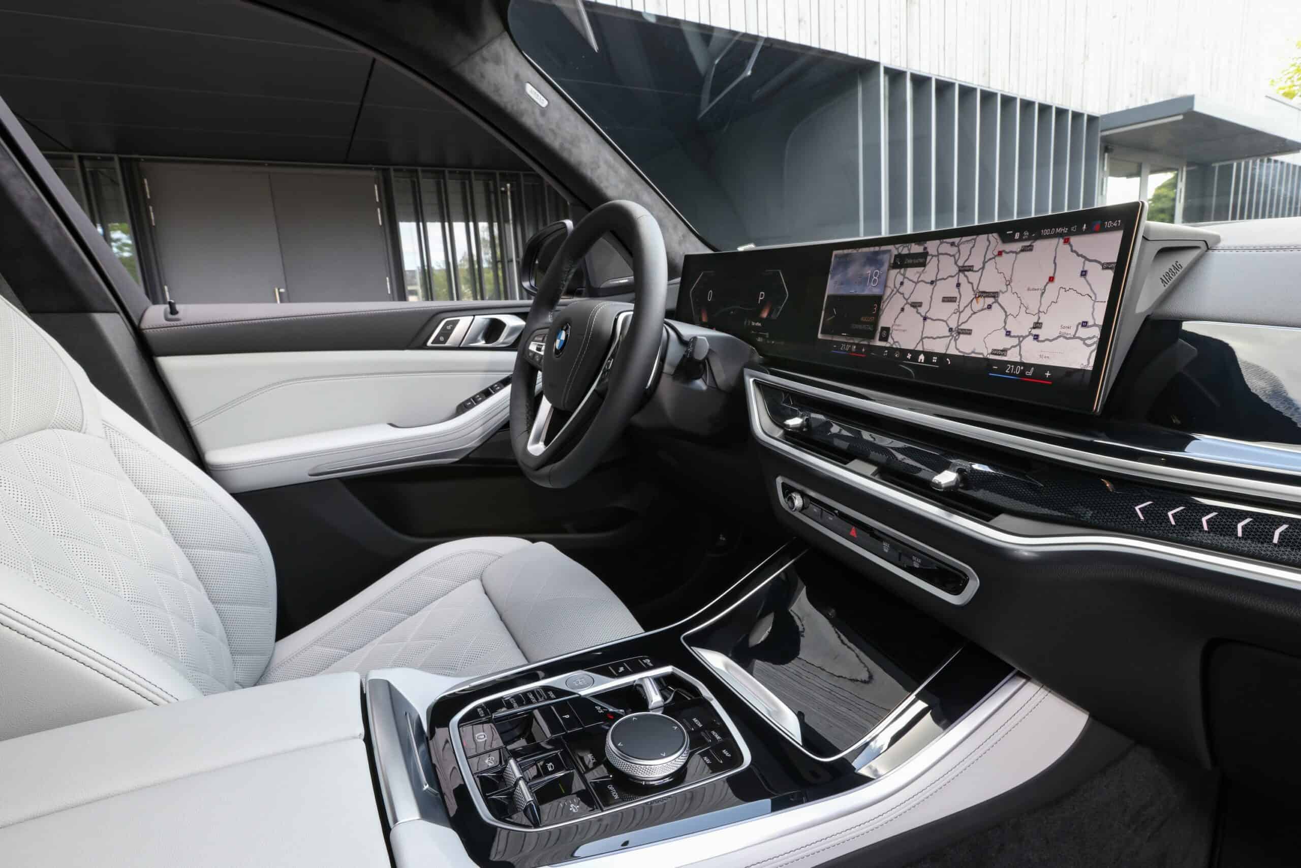 It’s a good opportunity to see the Mercedes GLE competitor without the M Sport Package / M Sport Package Pro since BMW has the tendency to promote only the sportier-looking versions. The diesel X5 featured here has 21-inch wheels but you can go a size higher and opt for a 22-inch set. The interior is also fairly simple since it retains the standard Sensafin (artificial leather) upholstery.