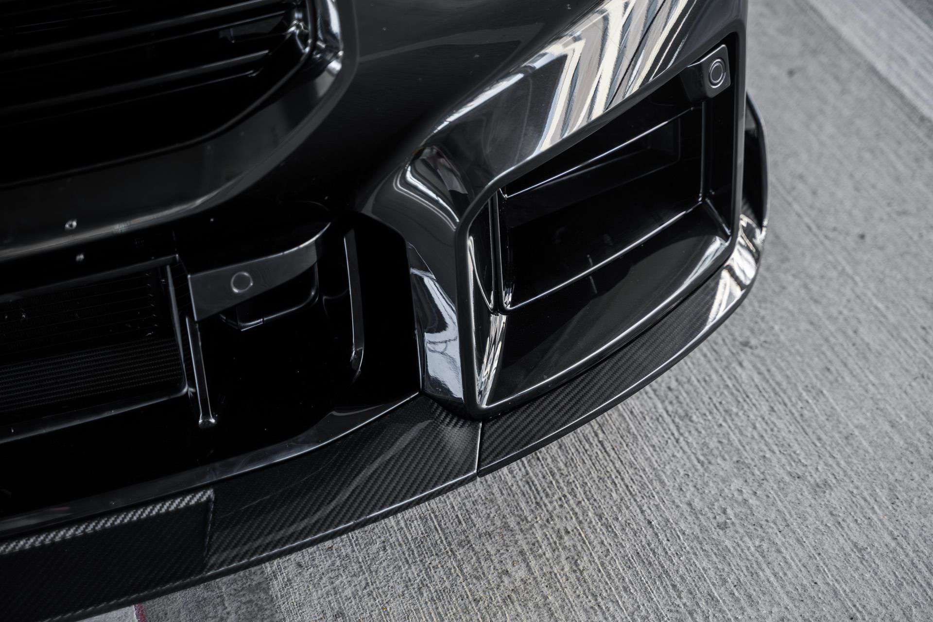 This aero enhancement concept not only aims to give the new M2 with a motorsport-inspired aesthetic but also serves the dual purpose of shedding excess weight from the vehicle. One standout feature of the TR87 kit is the wing, which plays a pivotal role in enhancing the car’s visual appeal. and performance. Another particularly notable element is the carbon fiber front splitter which enhances the aerodynamics of the G87 M2. This component streamlines the airflow, consequently minimizing drag, heightening downforce, and effectively channeling supplementary air into the front brake ducts.