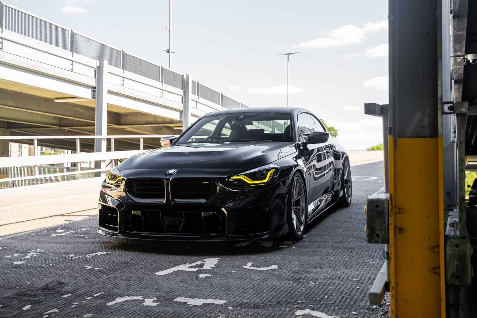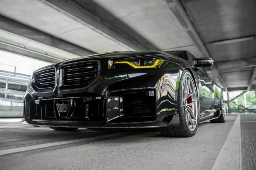 To craft these lightweight components, the engineers at TRE harnessed the capabilities of advanced computer-aided design (CAD) techniques, complemented by 3D-scanned data extracted from the real G87 M2 model. Consequently, the company assures unmatched fitment precision and a cohesive design that seamlessly merges with the distinctive style of the M2. But it’s not all about aero parts. The AUTOID’s BMW M2 comes with CSL-inspired yellow racing lights and lightweight HRE wheels. Judging by these images, the M2 was also lowered for a better stance and improved driving dynamics.