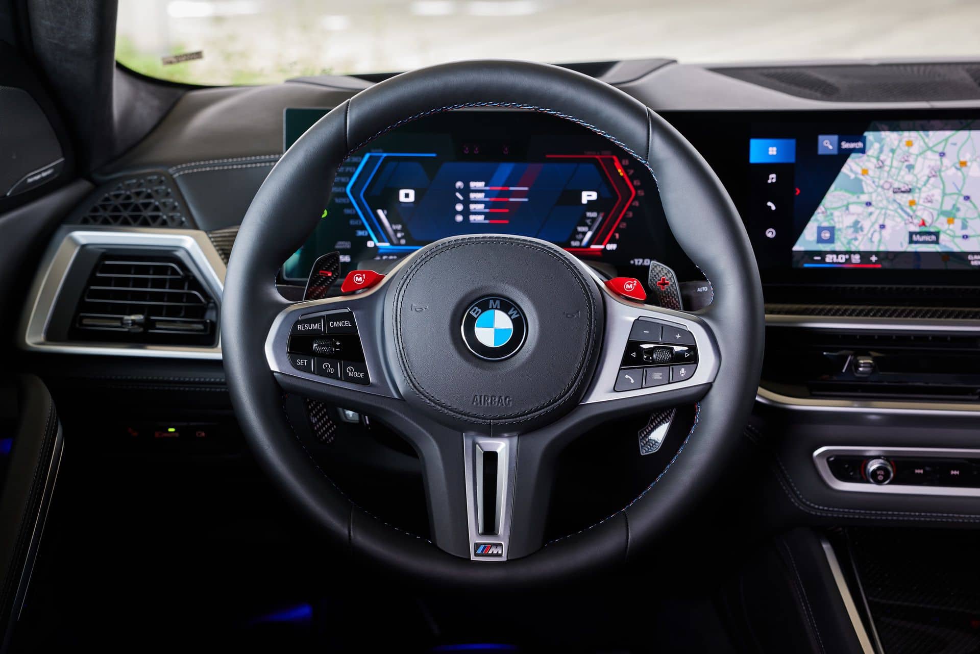 The LCI has been rather subtle on the outside but bigger changes have occurred in the cabin where the iDrive 8 now calls home. BMW has reworked the dashboard to accommodate the two large screens and remove most of the switchgear on the center console. The X6 M keeps the bulky gear lever whereas the M60i and the lesser models now have a small selector. A nifty illuminated graphic with the “M” letter adorns the passenger side of the dashboard.
