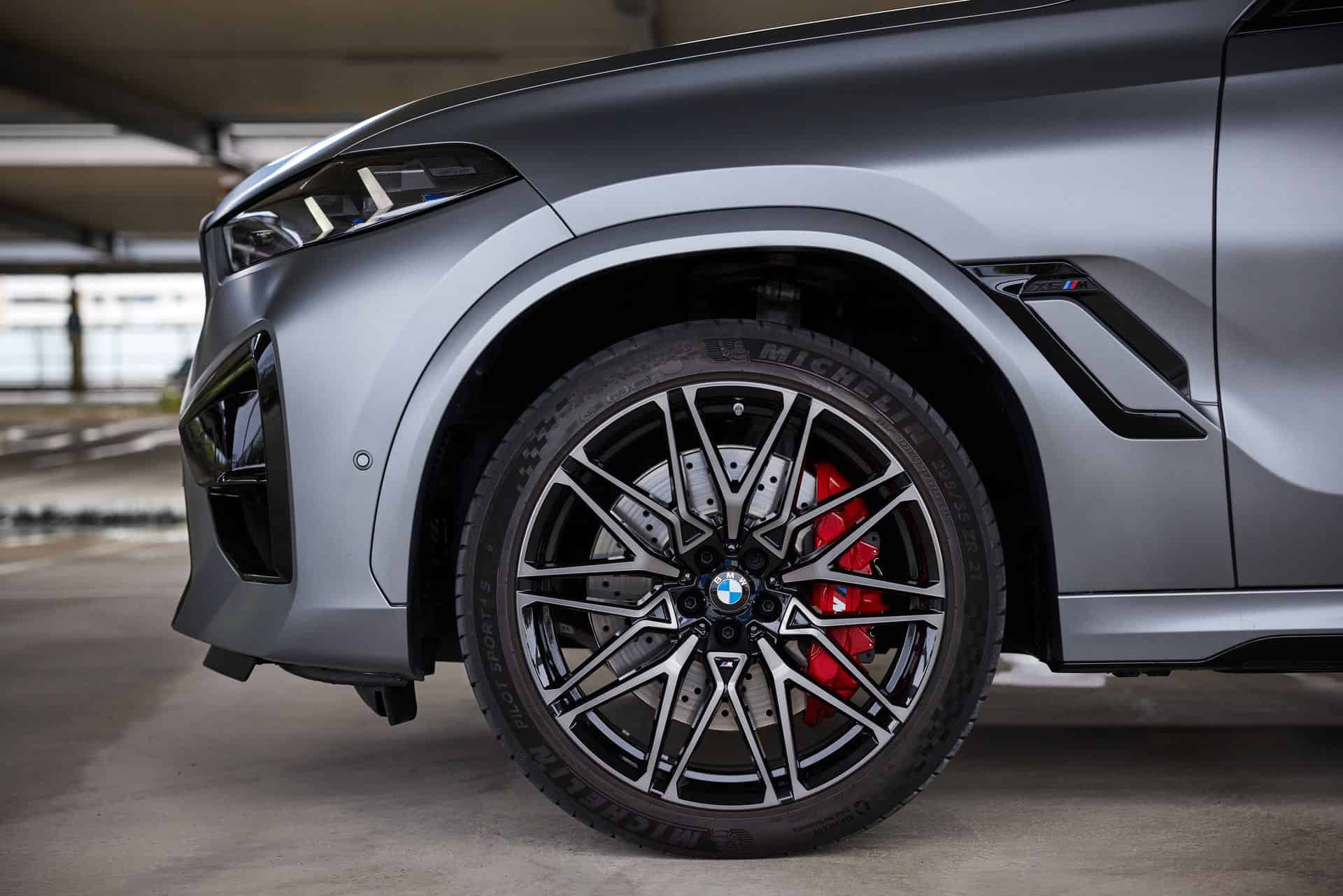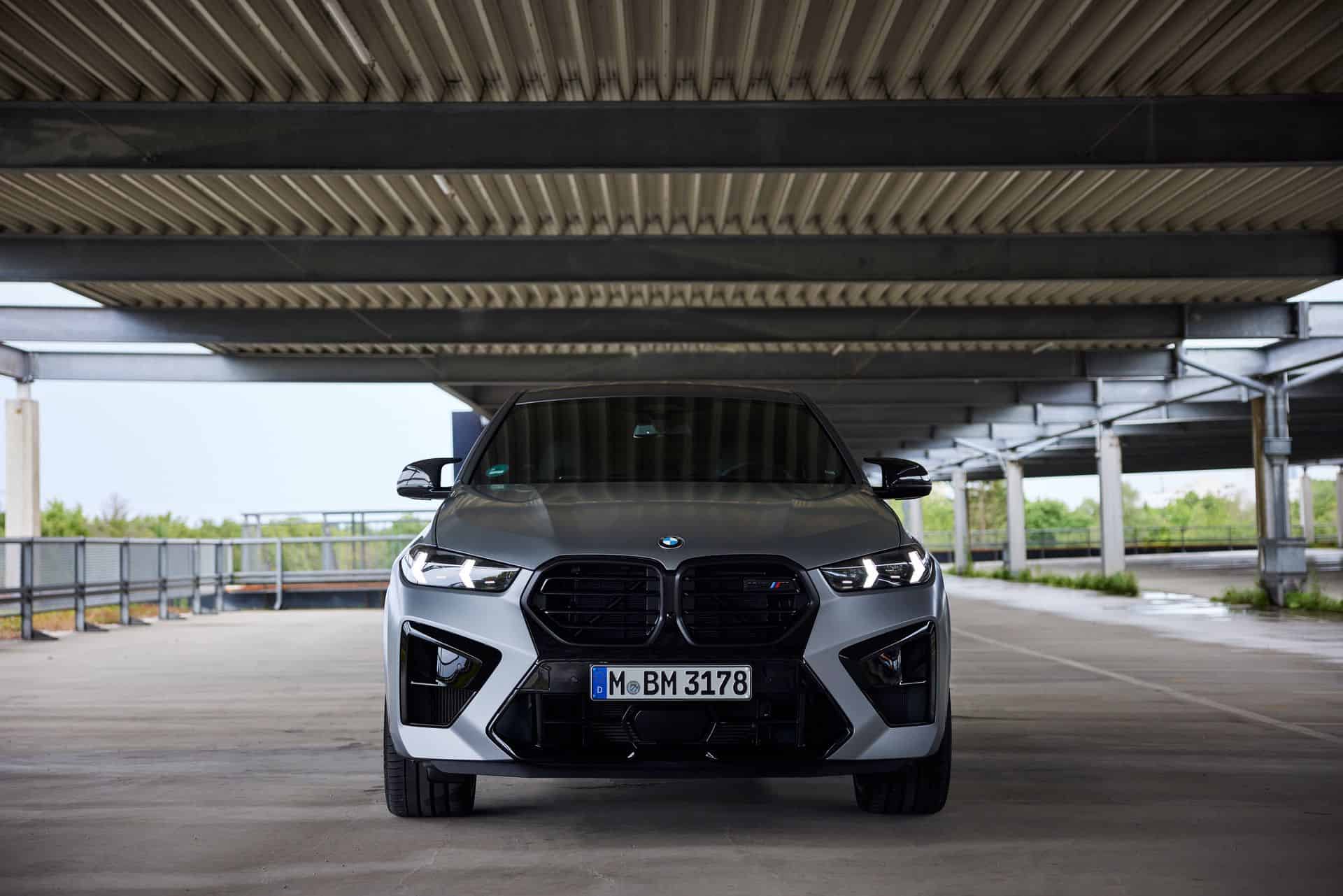 The X6 M continues to be offered with an assortment of Individual paints, including this matte finish. Frozen Pure Grey suits the G06 quite nicely and with this being the LCI model, it gets the updated kidney grille design with horizontal slats shared with the X5, XM as well as the new M2. The revised version has also received slightly slimmer headlights incorporating daytime running lights shaped like arrows pointing outward.
