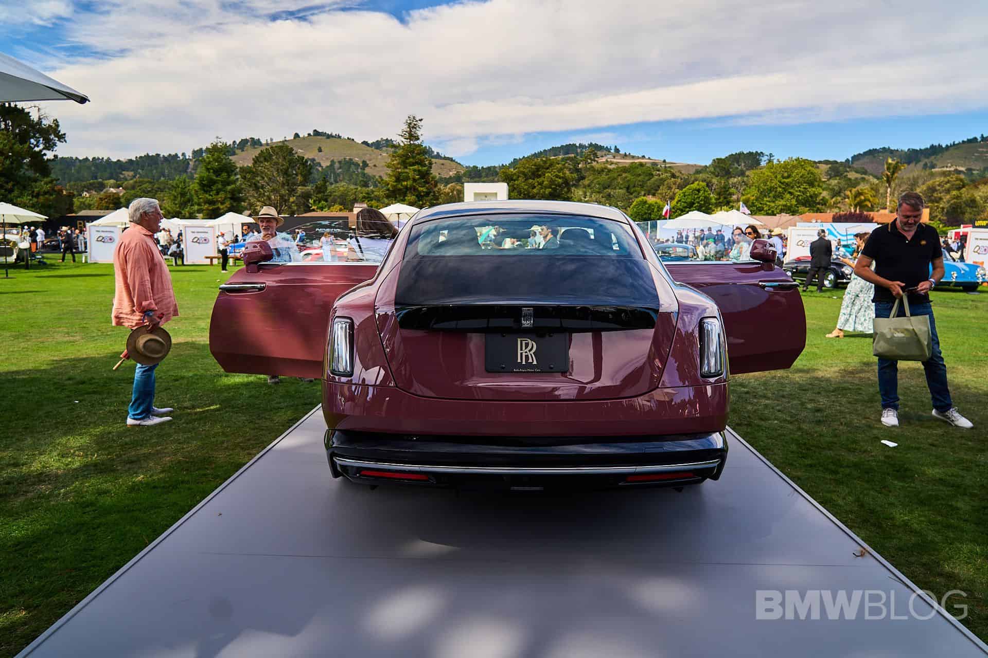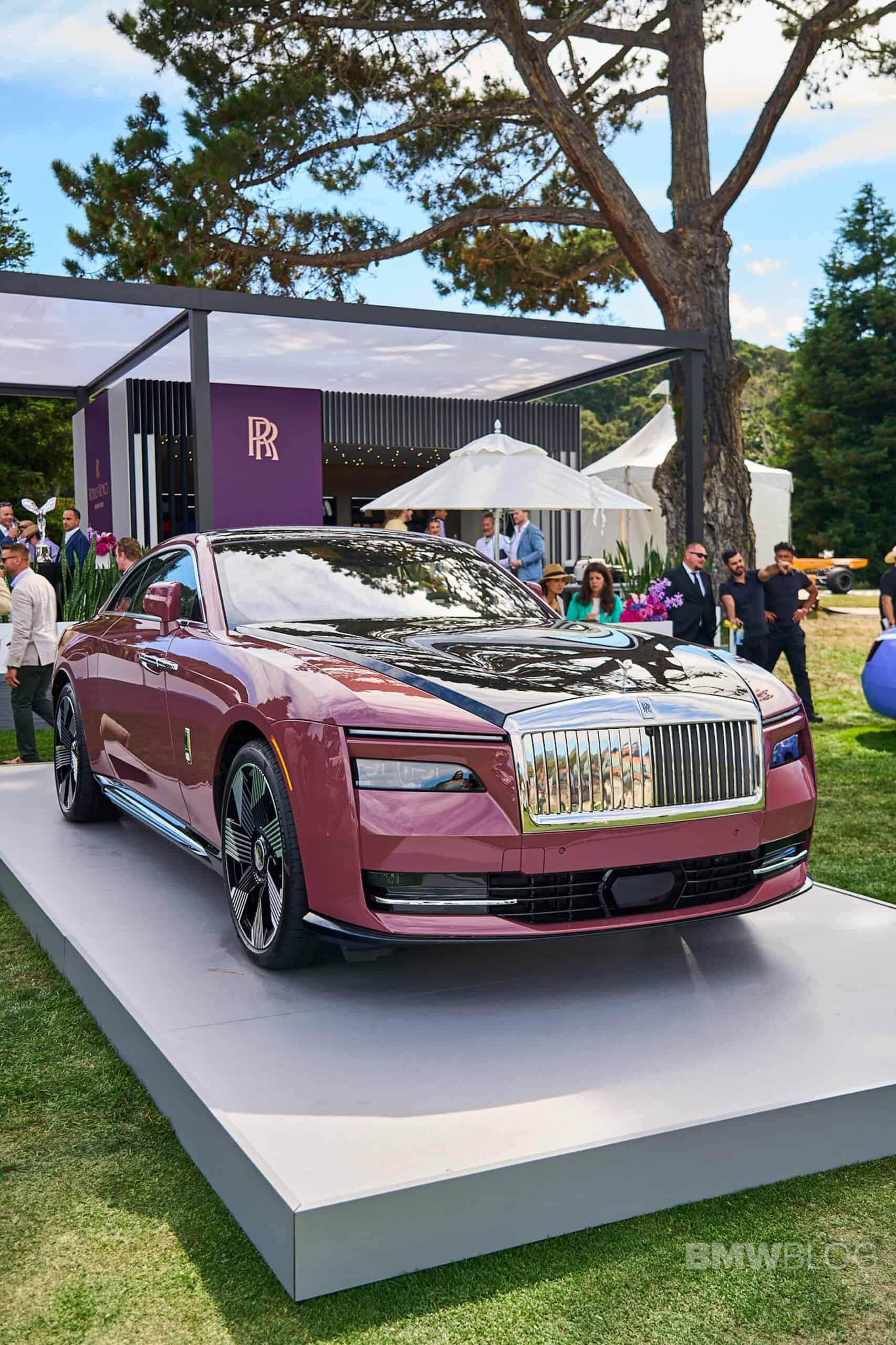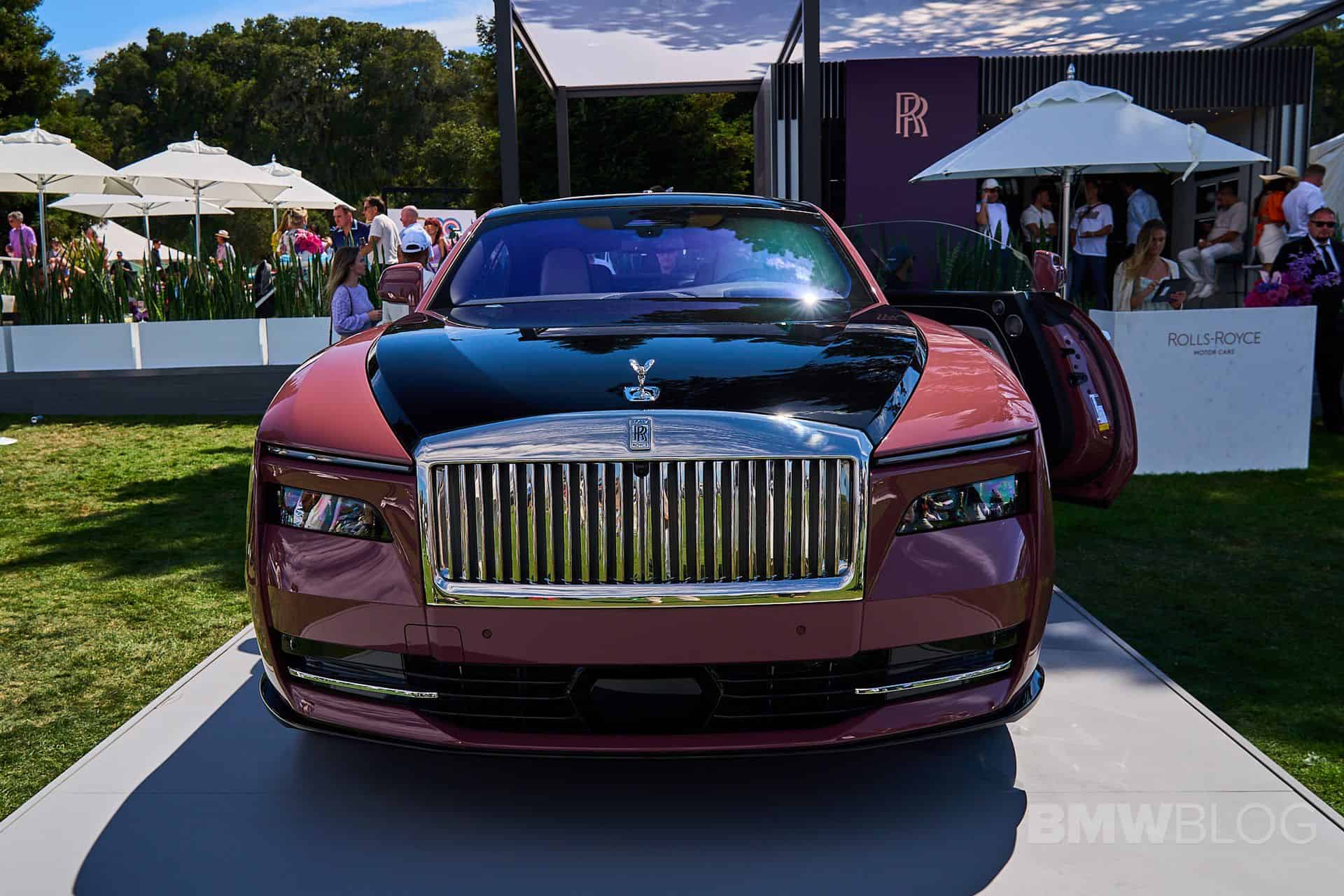 Developed to be a Rolls-Royce first and an electric car second, Spectre has made its North American debut this week at The Quail, A Motorsport Gathering. Dressed to impress in an eye-catching Morganite paint with black accents, Goodwood’s first foray into the EV segment looks massive because it is. At 5453 millimeters (214.6 inches) long and 2080 millimeters (81.8 inches) wide, it’s even bigger than the new BMW 7 Series.