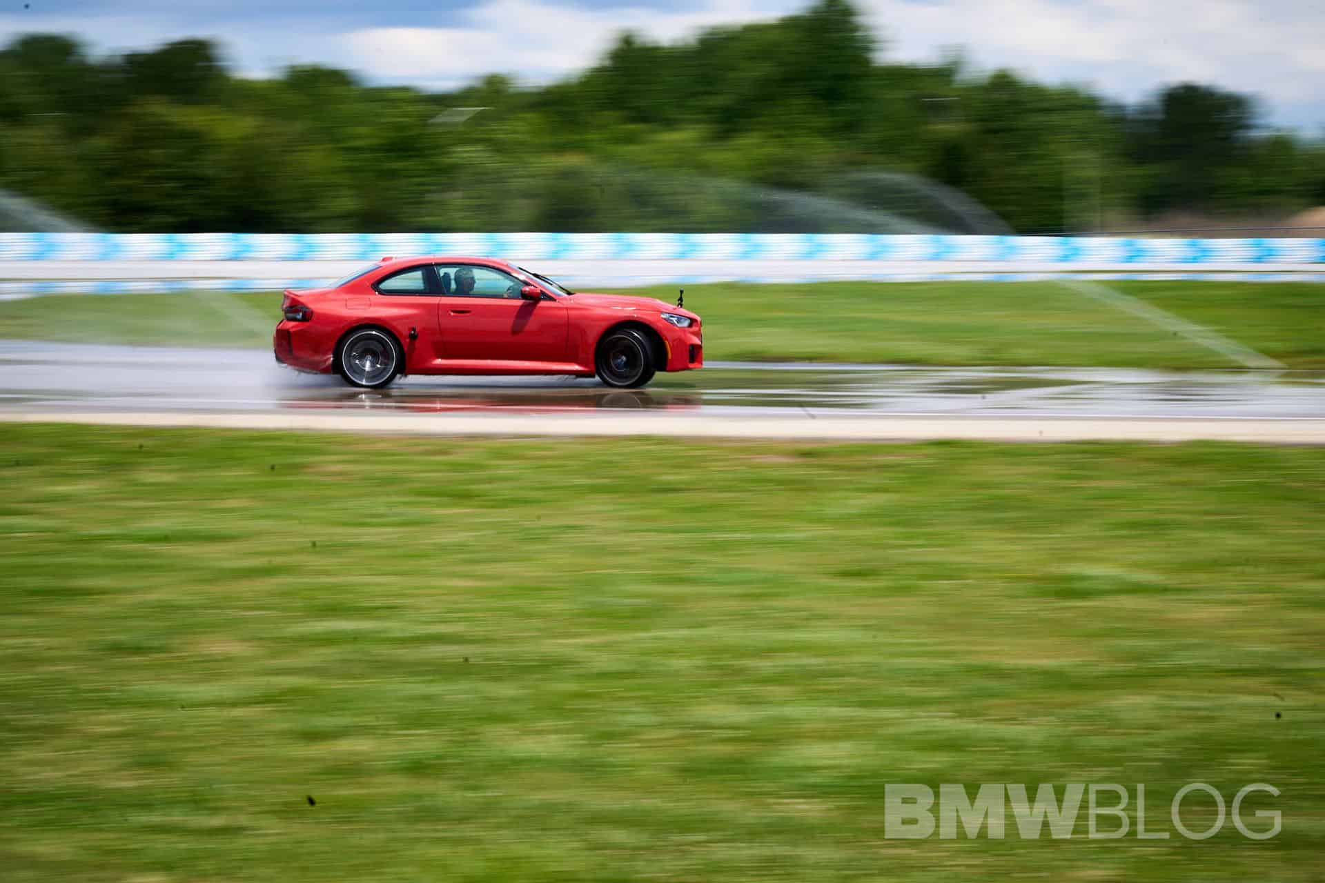 Navigating the intricacies of a wet skidpad demands precision and finesse, and Renner makes it look too easy. As water sprays and tires meet the slick surface, Renner’s controlled maneuvers highlight the M2’s responsive handling and its ability to maintain composure even under slippery conditions. Of course, the driver’s skillset plays an important role here. It’s worth noting that this marks Renner’s first encounter with the new M2.