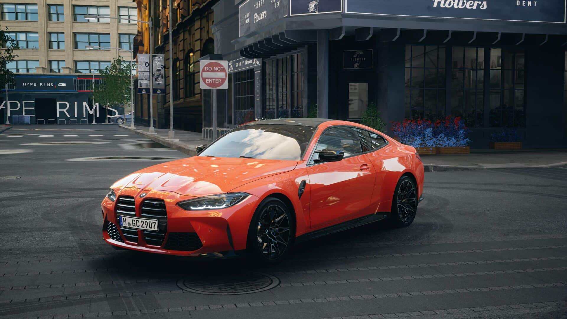 Known as the M Grafik at home in Germany, the painted stripes are a pricey €1,800 option and can be had in either black as seen here, or in red. The most interesting part is at the rear where the predominantly black trunk lid retains the original Fire Orange paint illustrating the prominent “///M4” logo. The hood follows a similar theme by accentuating the name of the model to show there’s no such thing as having too many badges and logos, according to BMW that is.