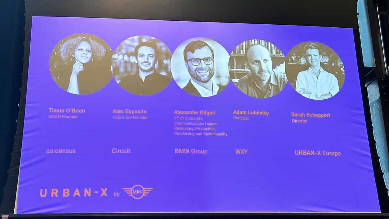 The MINI tech incubator is led by Sarah Schappert, Director of URBAN-X Europe. Schappert moderated a panel with speakers from different industries: Tiasia O’Brien, CEO co:census, Alex Esposito, CEO Circuit, Alex Bilgeri, VP of Corporate Communications HR, Production, Purchasing and Sustainability BMW, Adam Lubinsky and Principal WXY. The main topic: innovation in the transportation segment and mobility of the future.