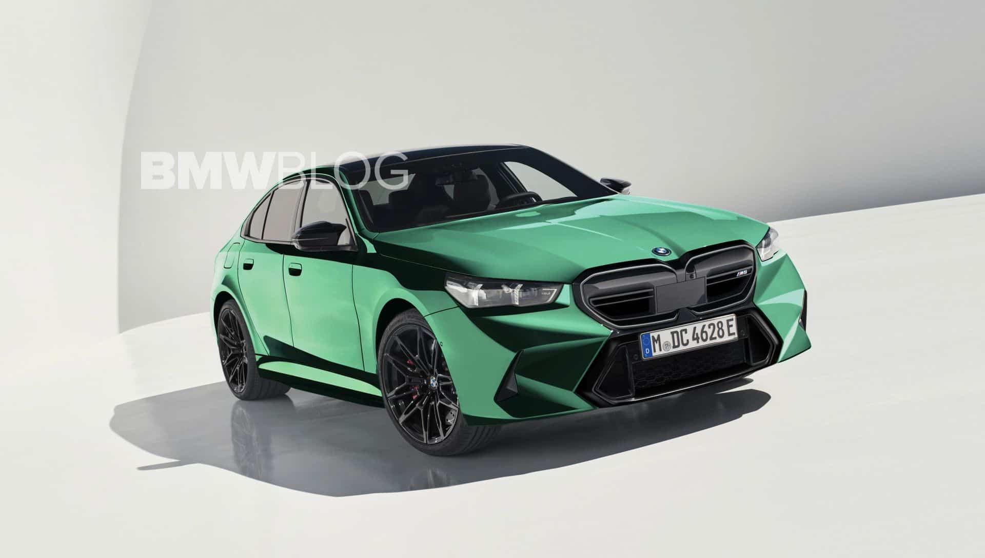 The 2024 BMW M5 is one of the most anticipated models in the M lineup, and we have some exclusive renders to show you how it might look like. The new M5 (G90) will be based on the upcoming electric 5 Series, which means it will inherit some of its design cues, such as the kidney grille with horizontal slats. The front bumper will also be more aggressive, with large air intakes and a splitter. The grille and the bumper will have a glossy black finish, which adds a nice contrast with the green paint of the body.