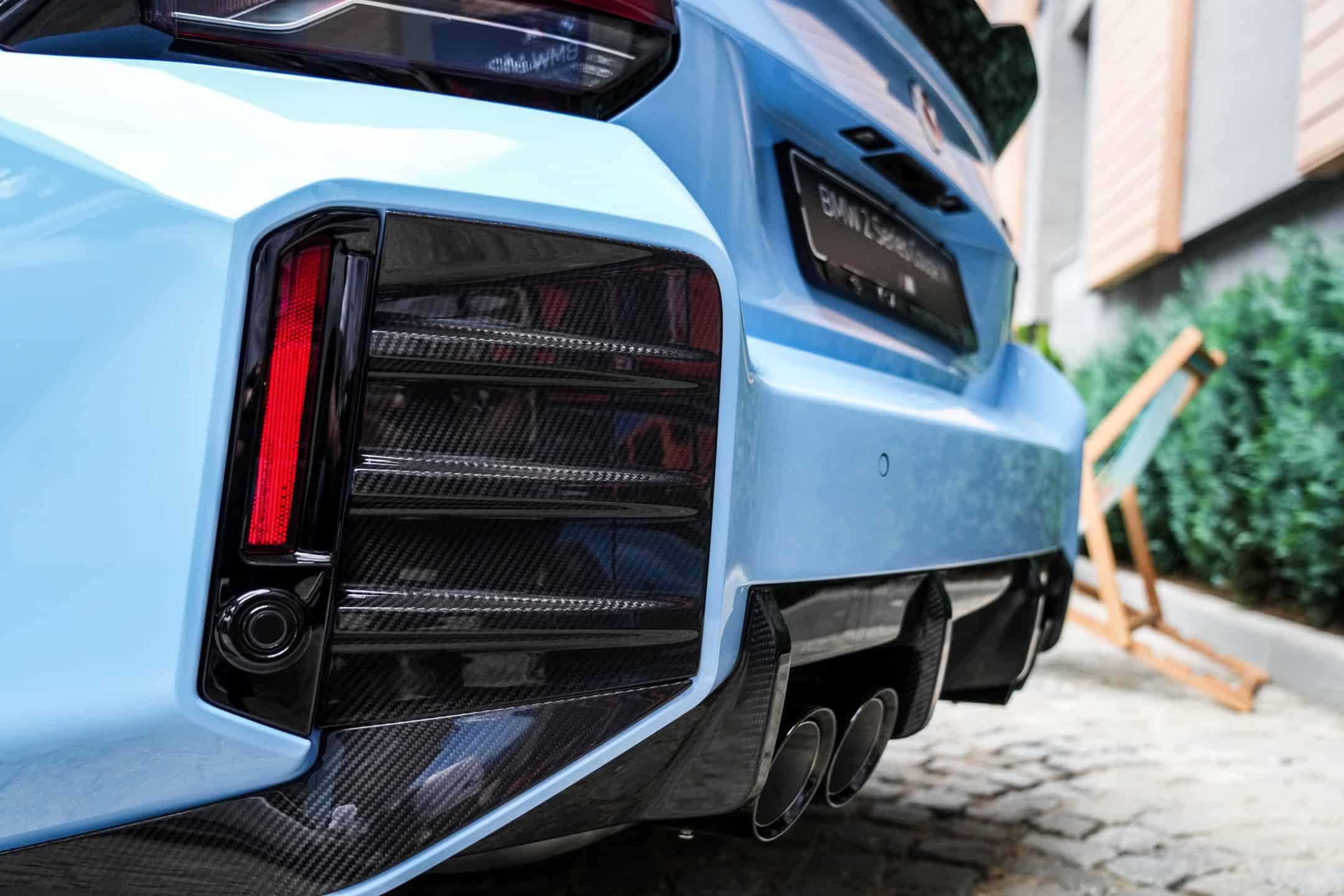 A media event held in Bulgaria was a great opportunity for BMW to show a second-generation M2 loaded with M Performance Parts. This pricey G87 build is painted in the exclusive Zandvoort Blue color and also happens to have the anniversary roundel introduced in 2022 when the M division celebrated its 50th anniversary. The 19-inch front and 20-inch rear wheels are the stock set (930M style) with a double-spoke design and Jet Black finish.
