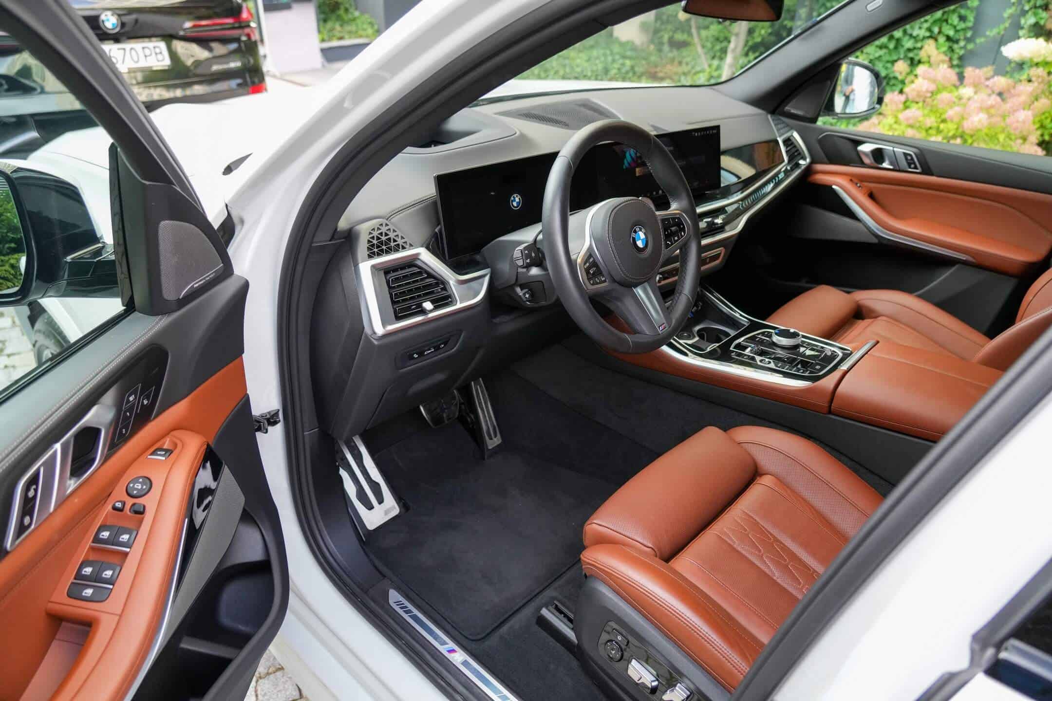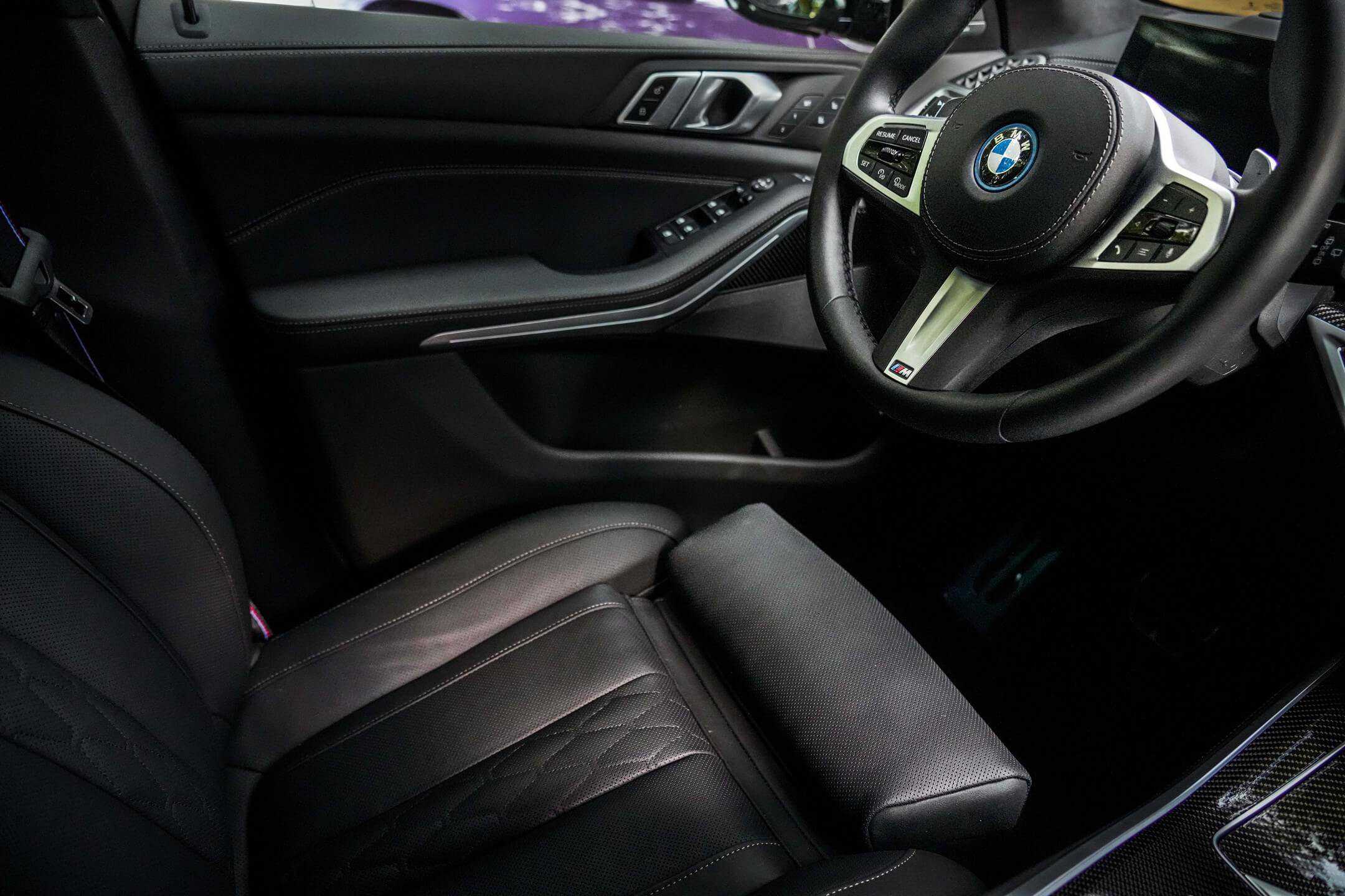 While the exterior hasn’t been changed in a significant way, the cabin has been thoroughly updated to accommodate the iDrive 8. There’s less switchgear on the center console while the gear selector is a lot smaller. In addition, the passenger side of the dashboard now incorporates an “X” graphic part of the ambient lighting. On the M60i and M models, there’s an “M” instead.