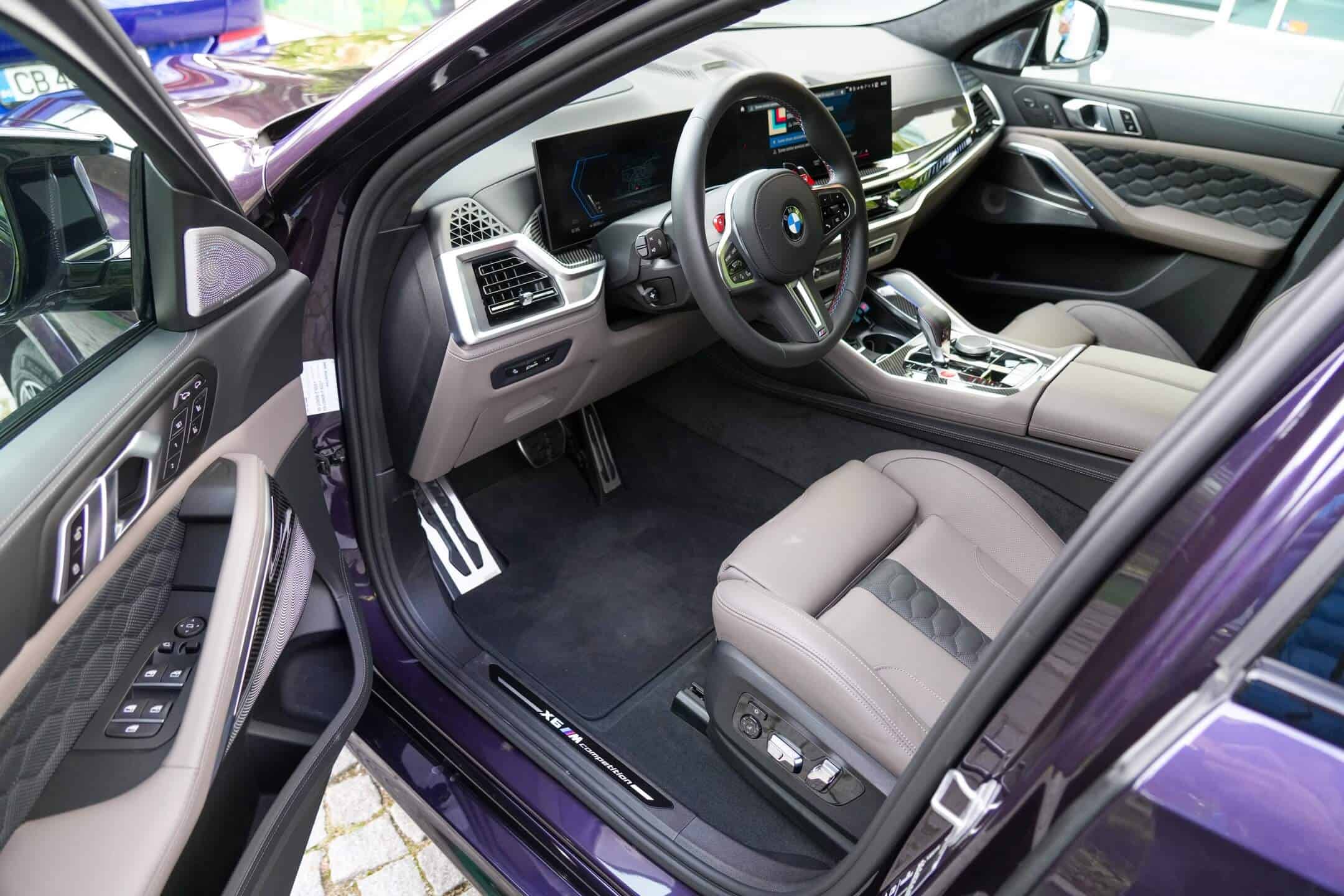 BMW decided to go with the 21-inch front and 22-inch rear wheels in the 809M style with a two-tone finish and blue brake calipers. Inside, the Bavarians went with an Adelaide Grey full Merino leather upholstery and the carbon fiber trim for the dashboard and center console. With the 2024 model year, the X6 M Competition gains an illuminated M on the passenger side of the dash, shared with the M60i. The lesser versions have an “X” instead.