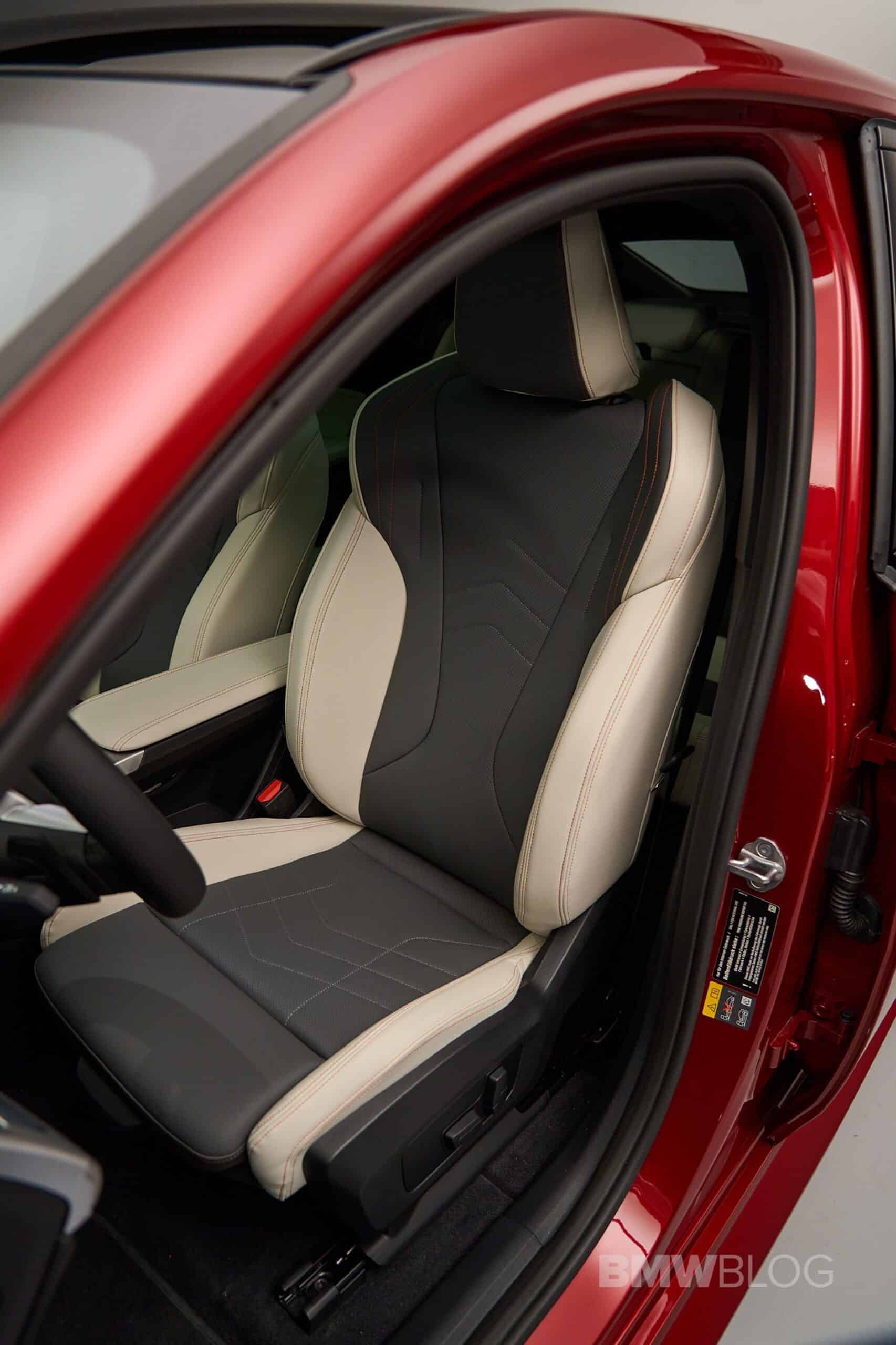 Interior space has also seen improvements, offering more knee room, elbow room, and notably, headroom compared to the outgoing F39 X2. However, it’s important to note that opting for the electric variant with its substantial battery involves a compromise in practicality, as cargo capacity decreases to 525 liters with the rear seats in place, expanding to 1,400 liters with the 40:20:40-split rear bench folded down. In contrast, the regular X2 offers 560 and 1,470 liters of cargo space, respectively. The default seat material in the iX2 is vegan, with the option to choose leather.