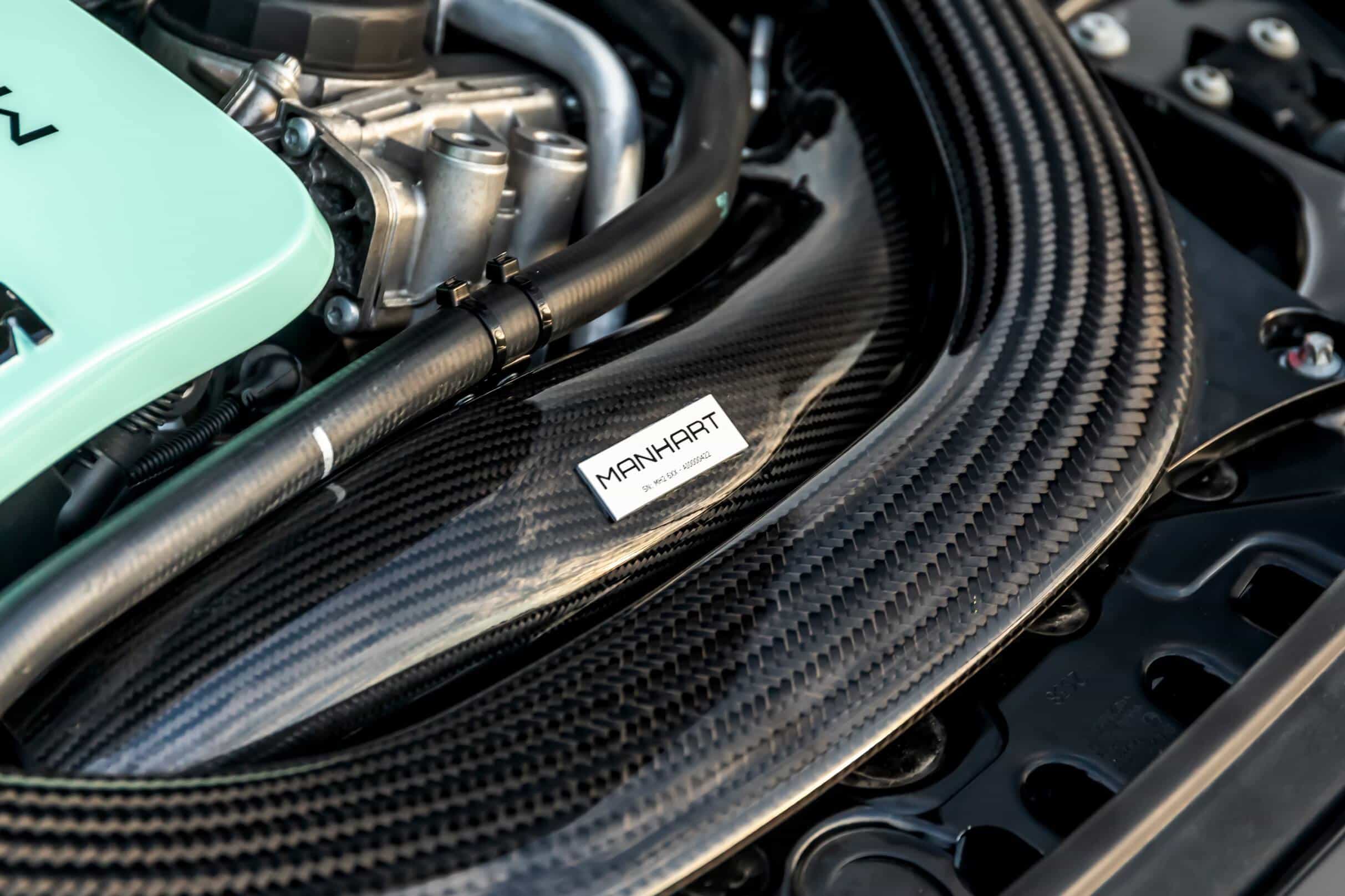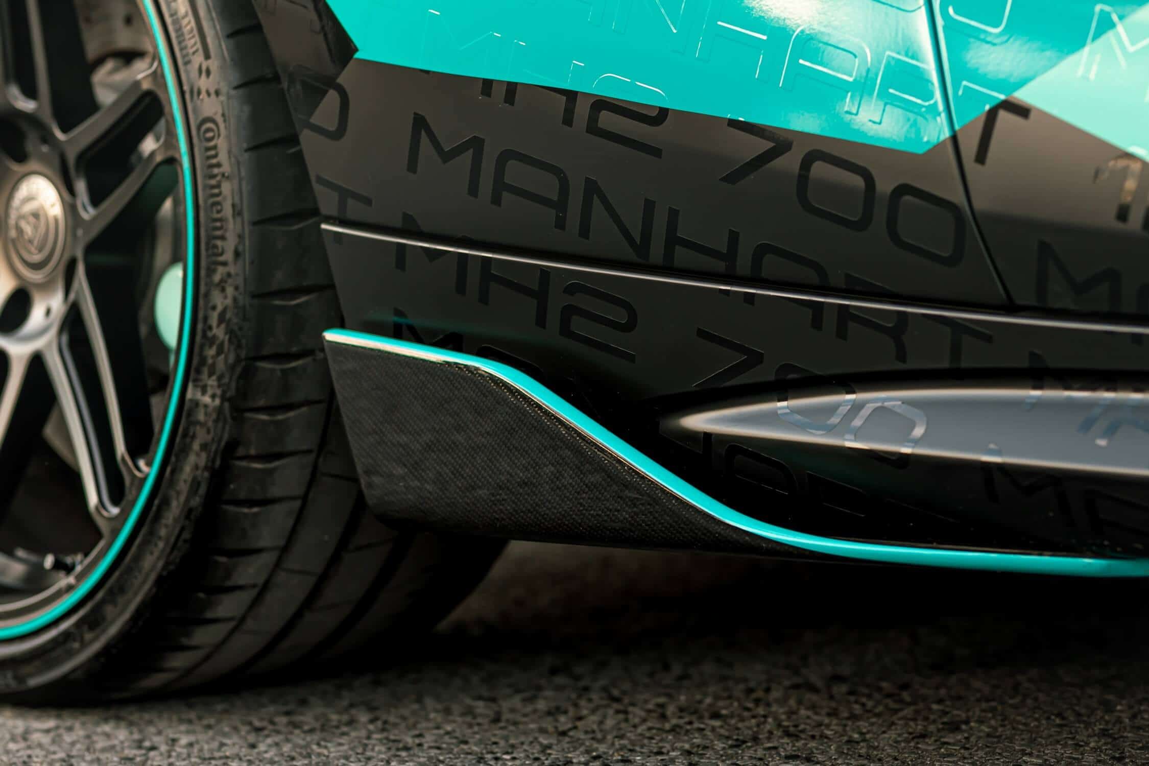 This sinister-looking sports coupe has mint green contrasting accents and Manhart MH2 700 written all over the car as well as on the end plates of the look-at-me rear wing. It rides on the tuner’s own 20-inch Concave One wheels with 265/25 ZR20 front and 295/25 ZR20 rear tires and there’s also a KW coilover suspension. For more visual drama, there’s a prominent hood bulge and plenty of carbon fiber accents.