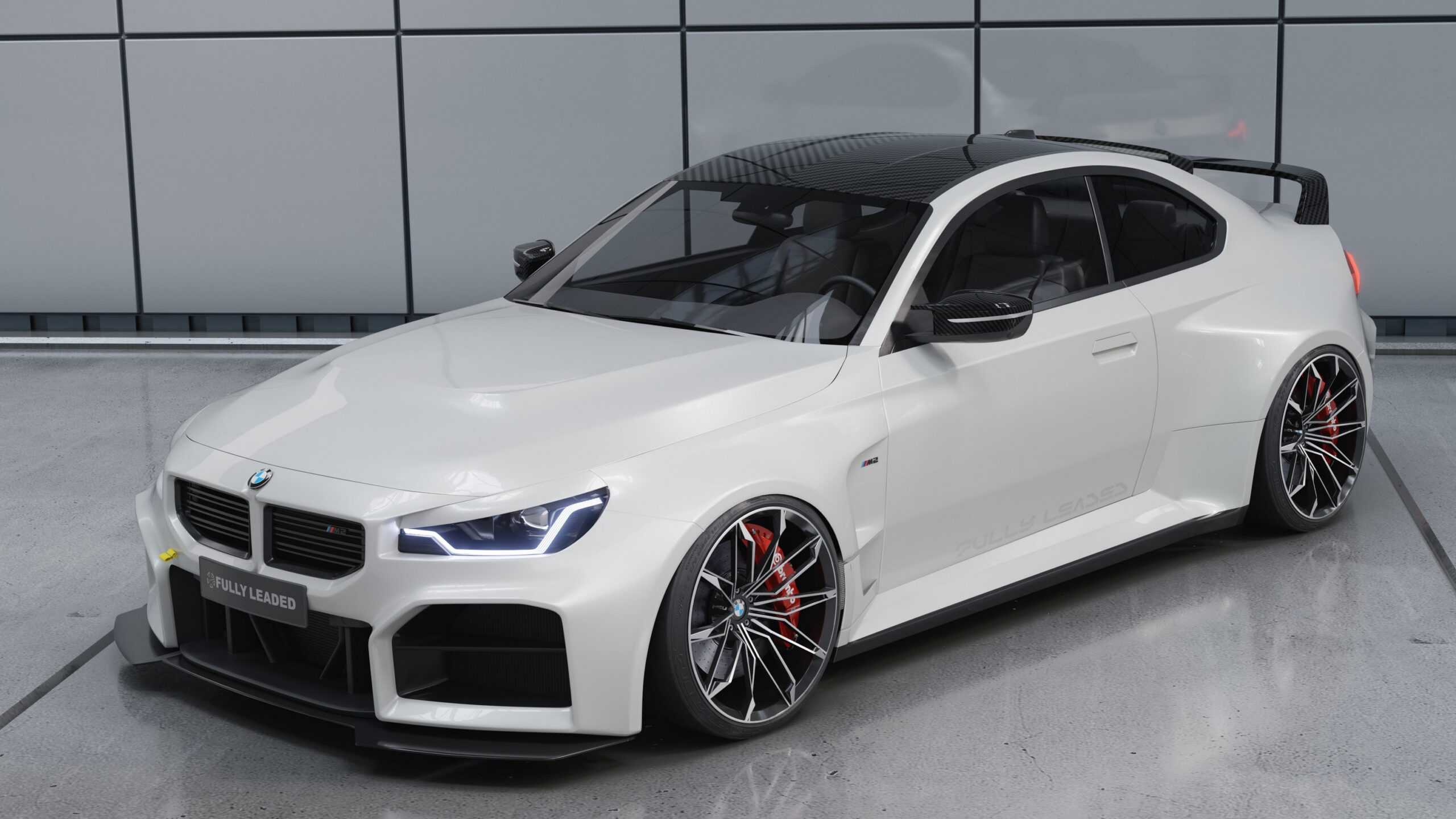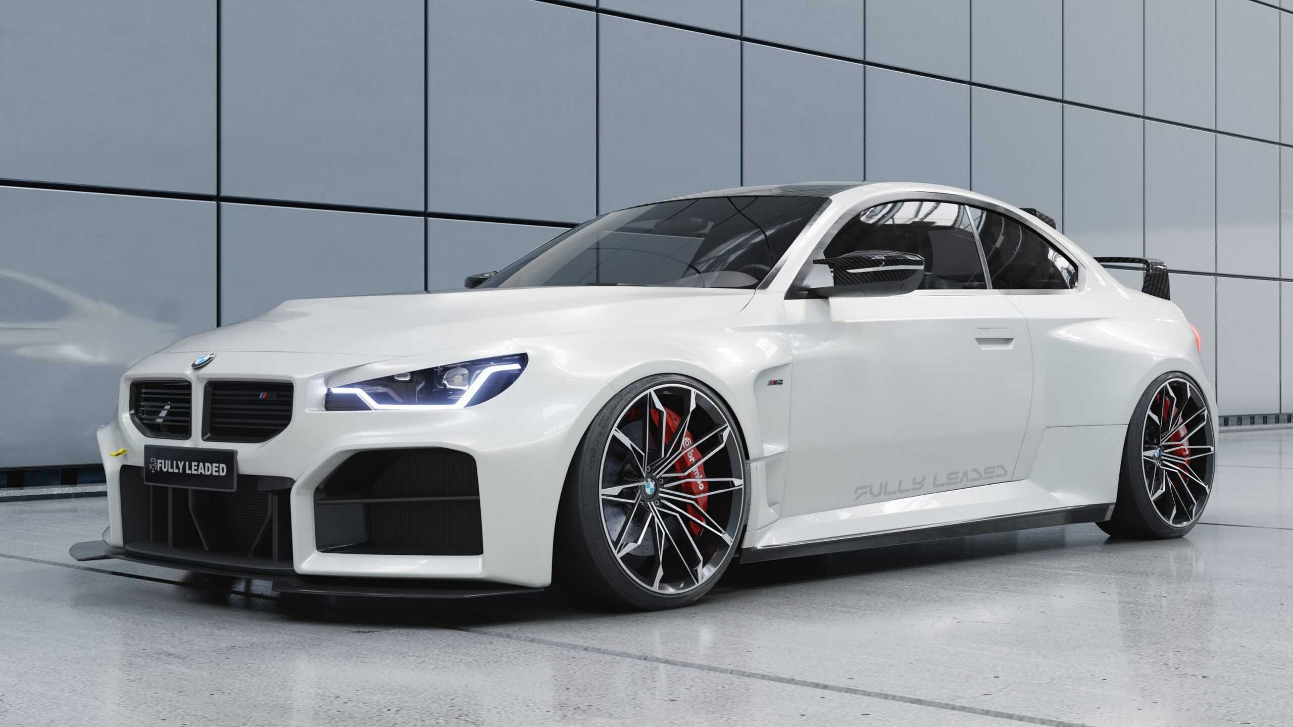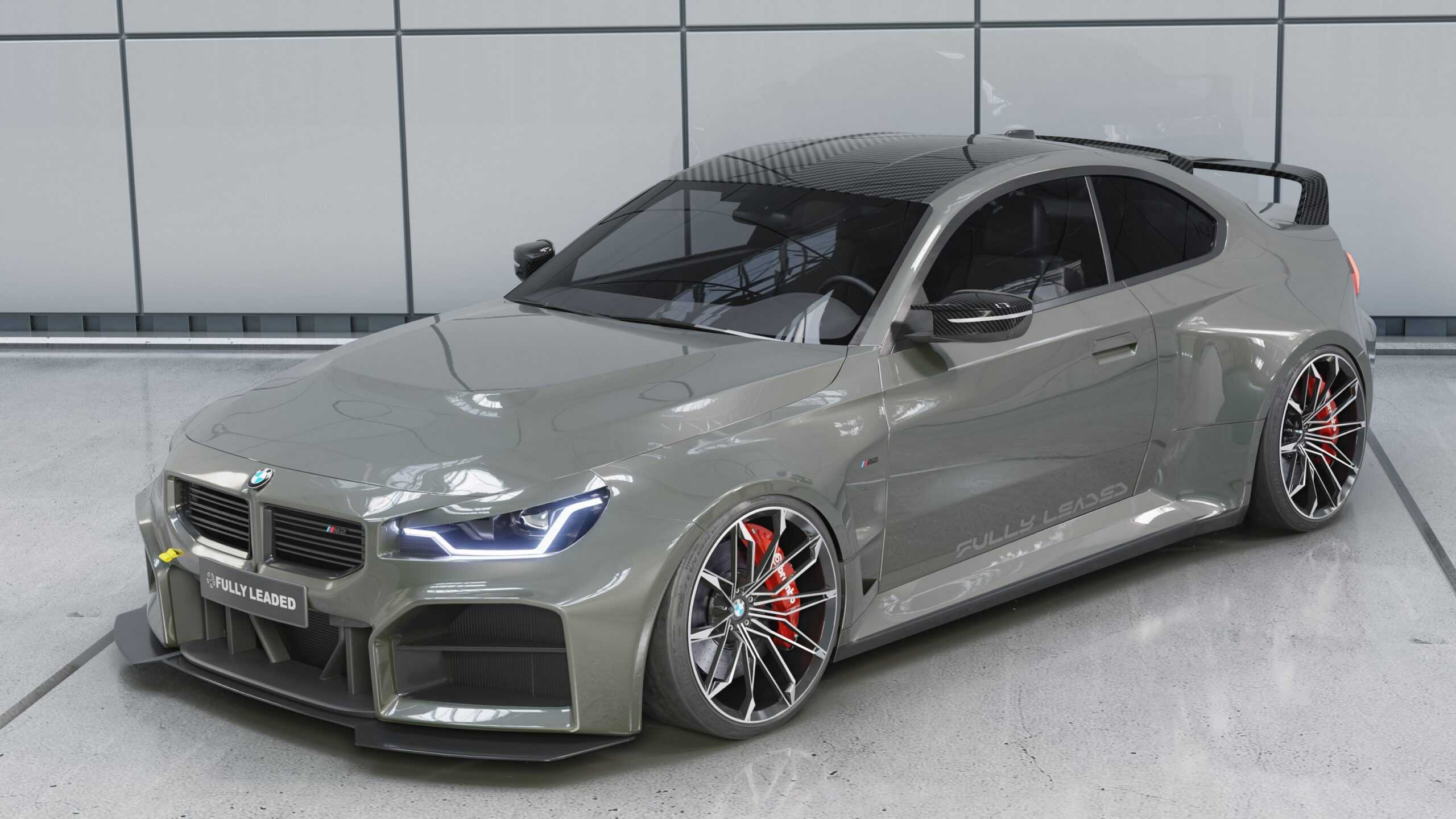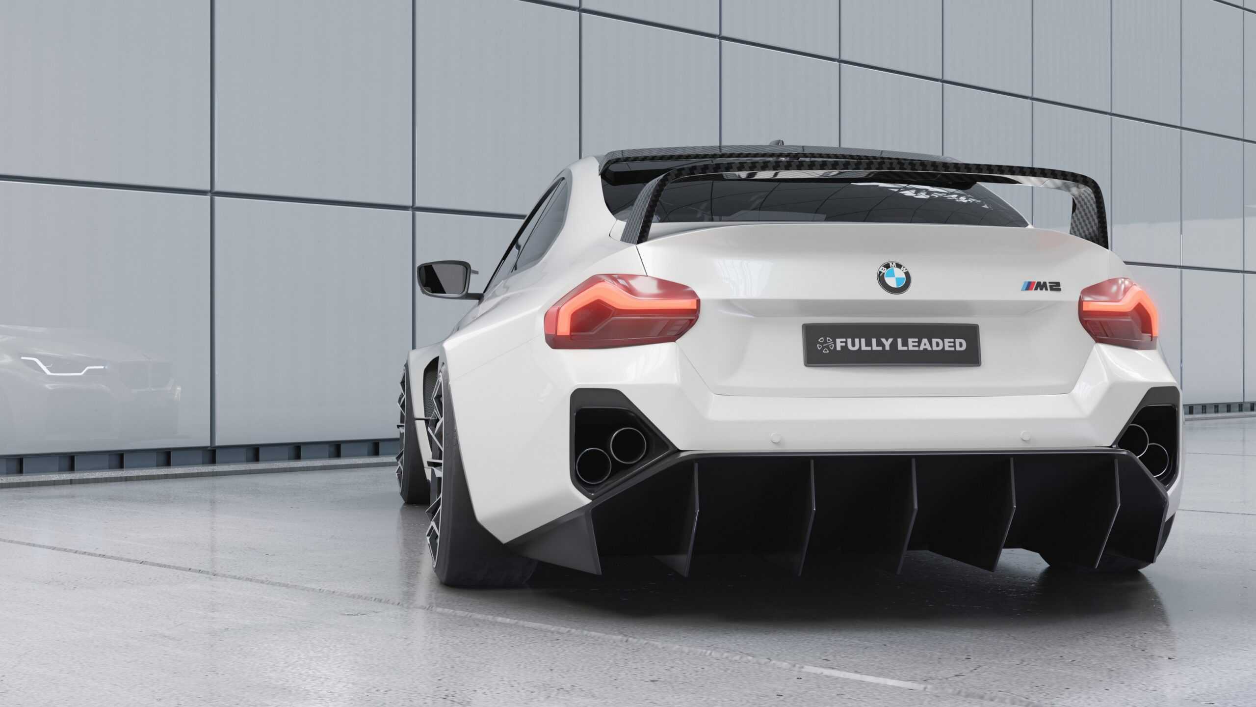 Independent artist fully_ leaded has imagined the rear-wheel-drive coupe with a much meaner stance by giving the not-so-baby-anymore M car a widebody kit featuring a huge diffuser and a prominent front splitter. This hypothetical M2 has also been gifted vented front fenders to cool down those enlarged Brembo brakes. Like the optional M Performance Parts tailored to the G87, there’s a wing mounted on the trunk lid, plus a roof-edge spoiler – both from carbon fiber.