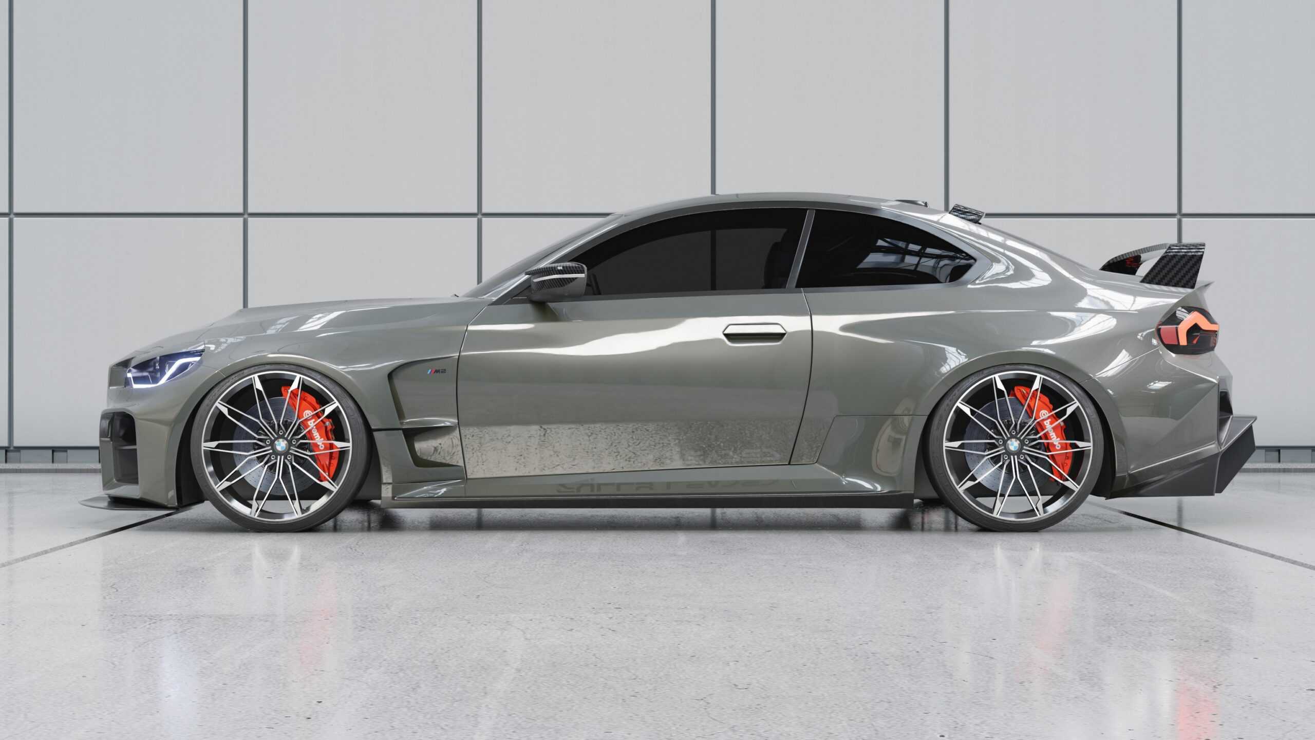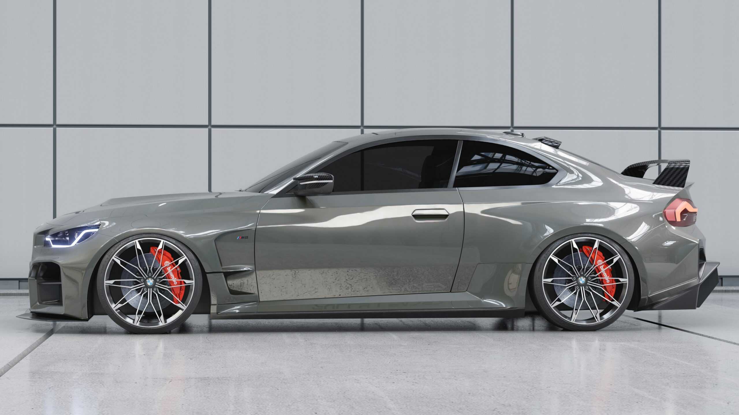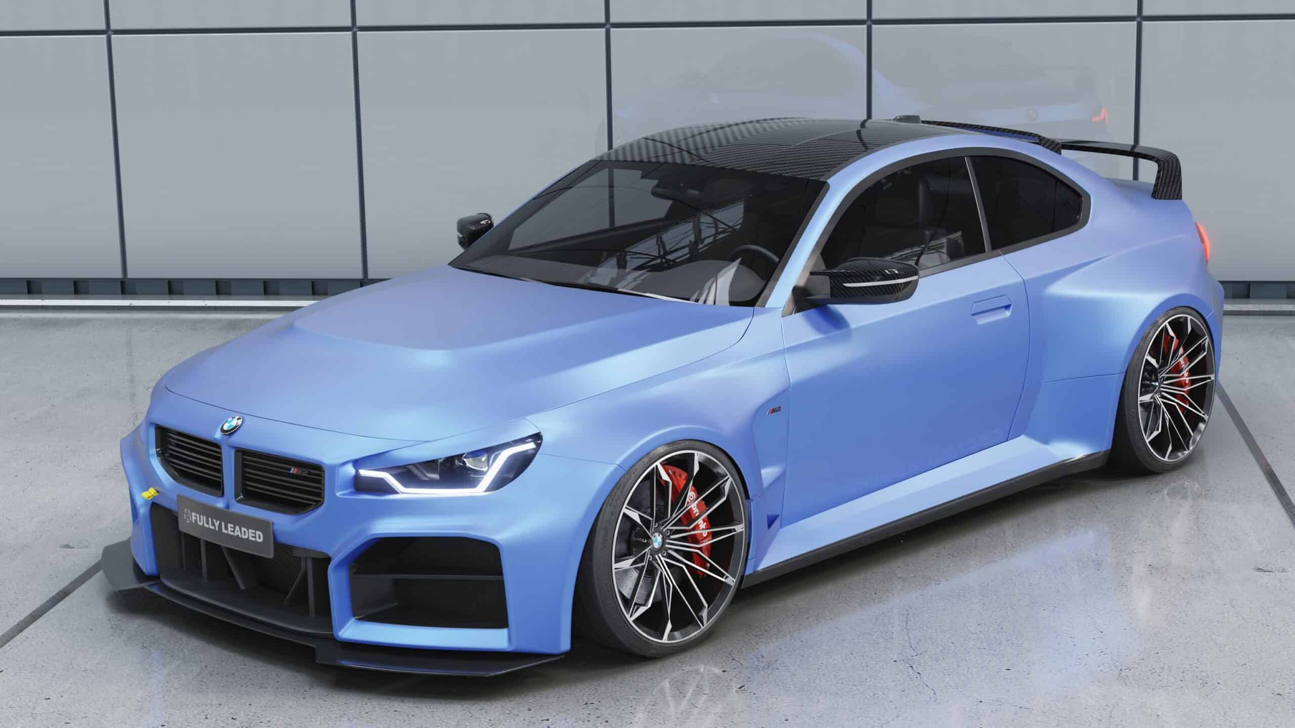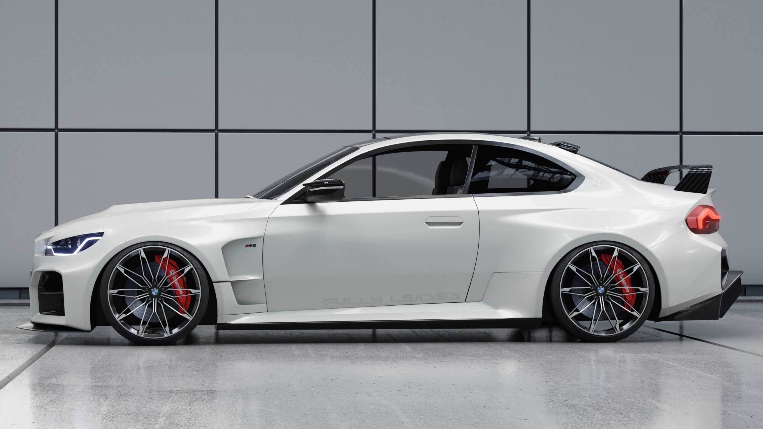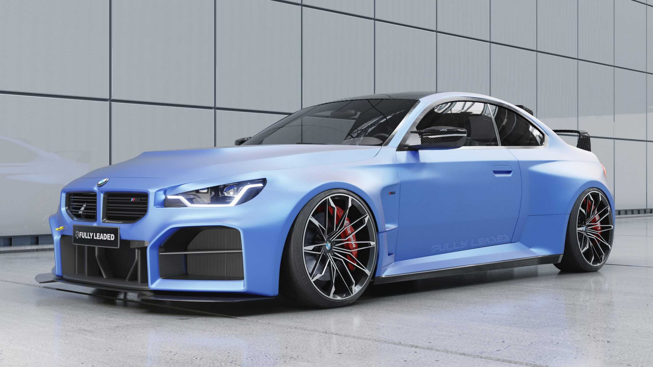 Independent artist fully_ leaded has imagined the rear-wheel-drive coupe with a much meaner stance by giving the not-so-baby-anymore M car a widebody kit featuring a huge diffuser and a prominent front splitter. This hypothetical M2 has also been gifted vented front fenders to cool down those enlarged Brembo brakes. Like the optional M Performance Parts tailored to the G87, there’s a wing mounted on the trunk lid, plus a roof-edge spoiler – both from carbon fiber.