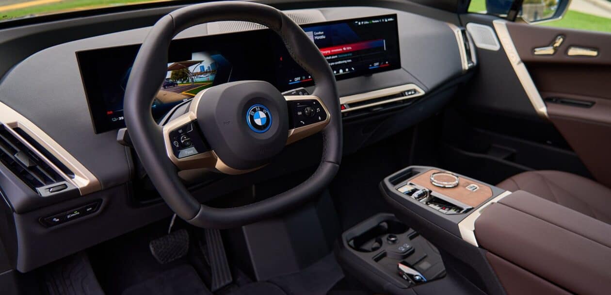 When it comes to the interior, sustainability is our focus. That’s why we chose Mocha SensaTec, essentially synthetic leather. While BMW does provide genuine leather options for the iX, I believed that faux leather would be a more practical choice for accommodating little kids during road trips.