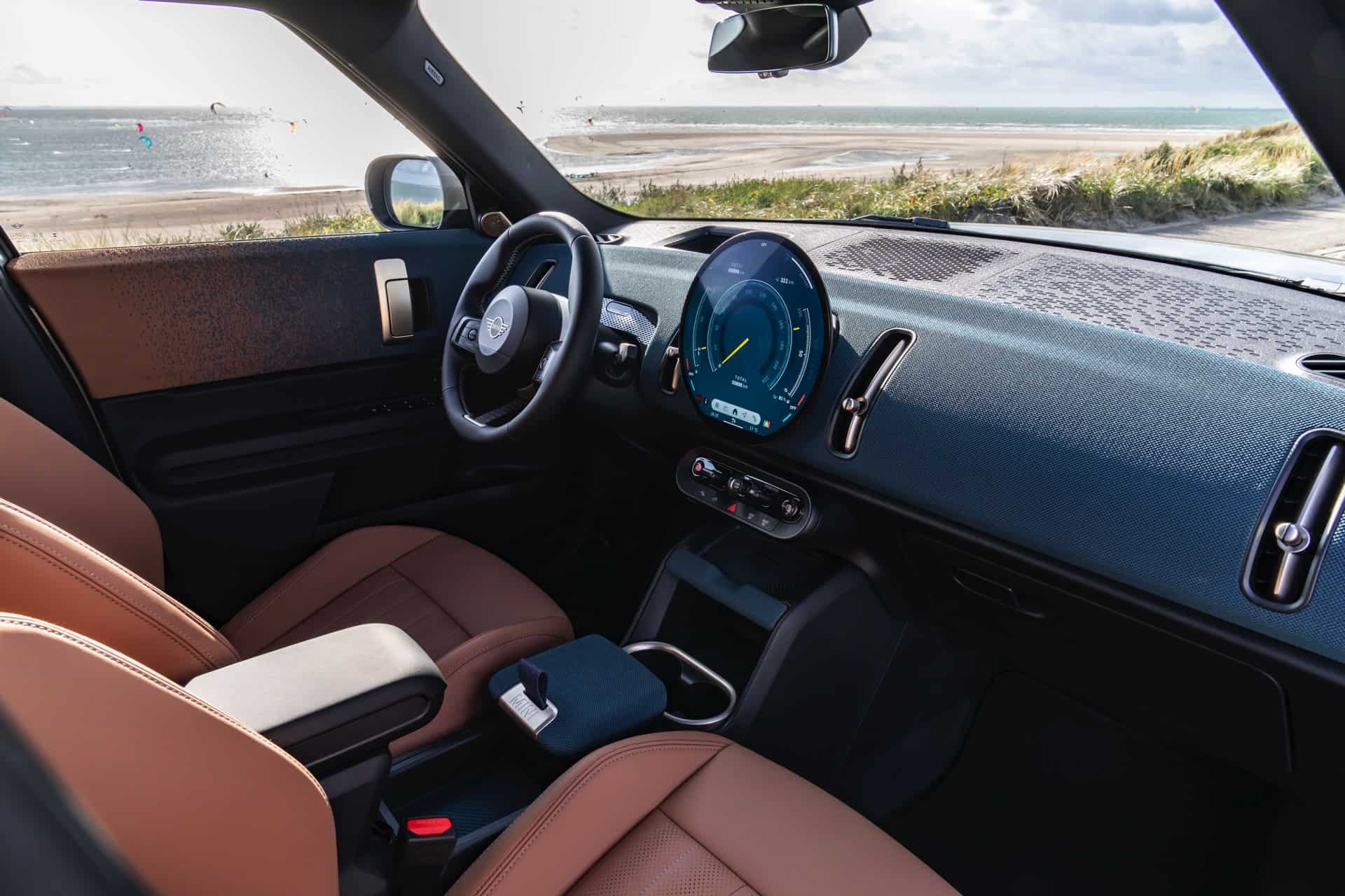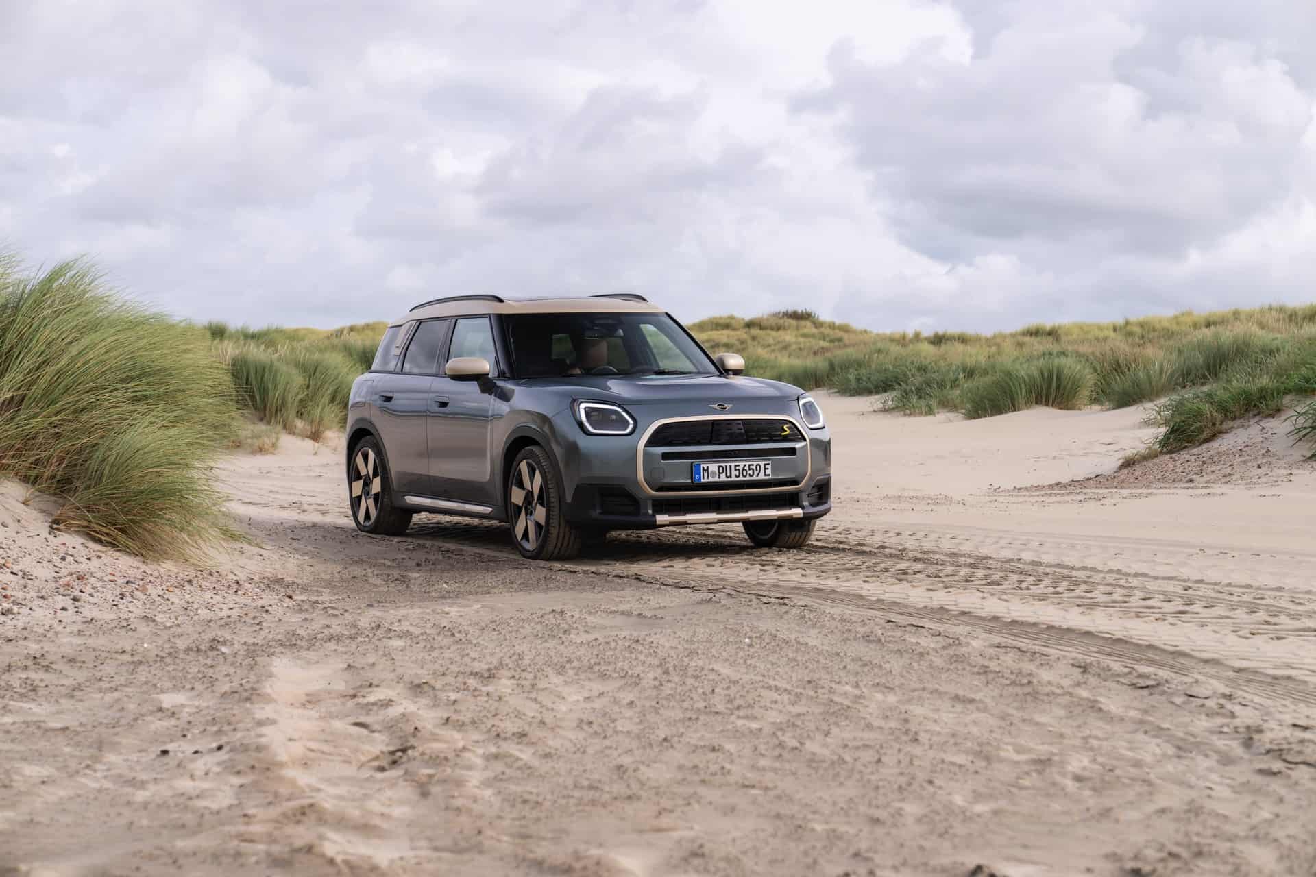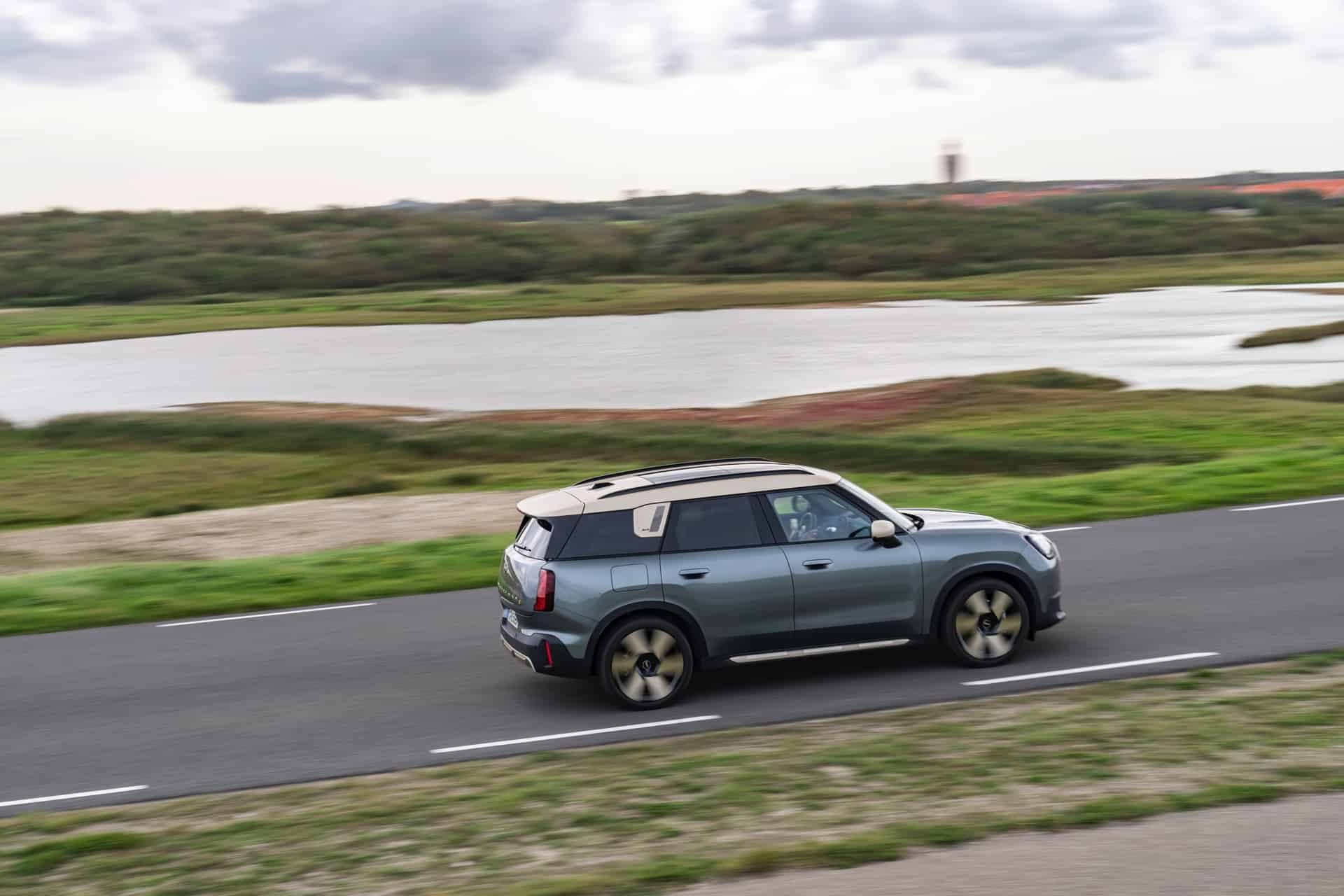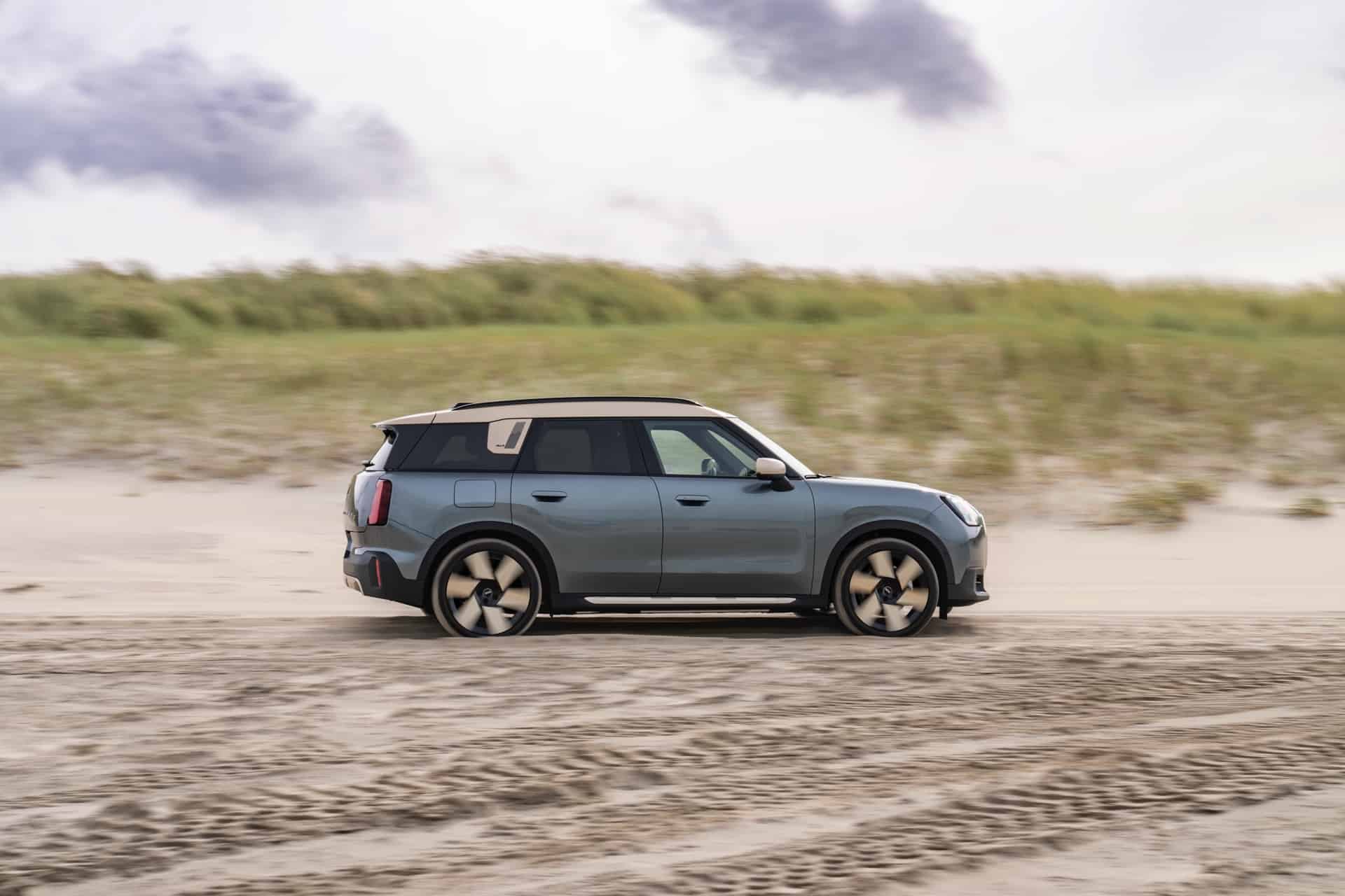 Ahead of the market launch in 2024, MINI continues to promote the new Countryman SE (U25) electric crossover. These new images show the first-ever electric Countryman in different settings, from urban driving to sand off-roading and back-roads fun. This 2024 MINI Countryman is featured in its debut shade, Smokey Green. Elements such as the roof, exterior mirrors, the grill’s edges, and select other accents have been meticulously finished in Vibrant Silver. The 20-inch wheels further enhance the overall elegance of the vehicle.