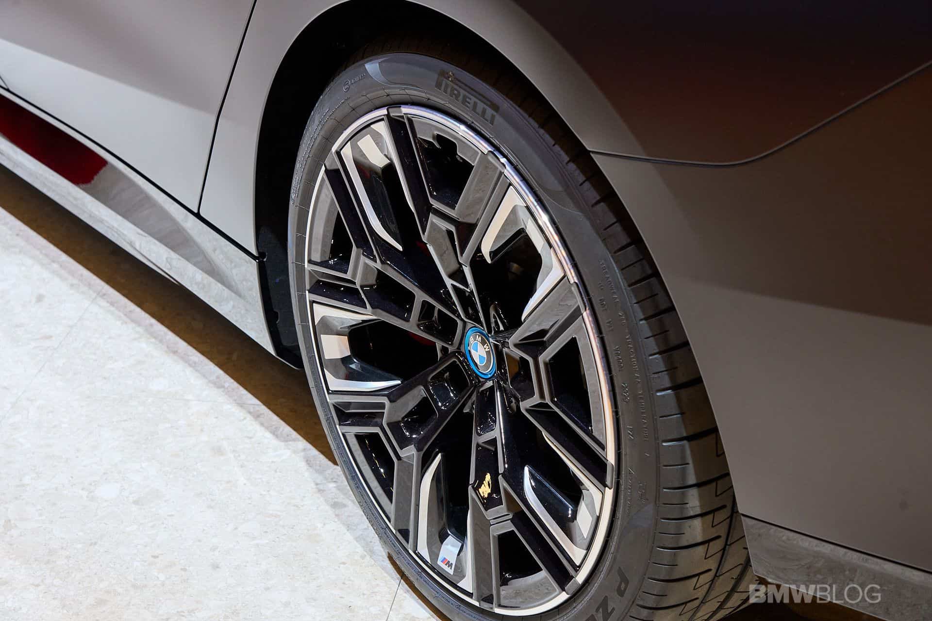 The two-tone wheels measuring 20 inches are not the biggest available for the electric sports sedan as BMW also offers a larger 21-inch set but that one will negatively impact the range. In the United States, an i5 M60 with the wheels pictured here is rated at 248 miles whereas with the bigger ones, you’re losing eight miles. It’s not much but it’s something to take into consideration. There’s also a massive price gap since the 20-inch wheels are an $800 option while the 21-inch Individual wheels command a $1,800 premium.
